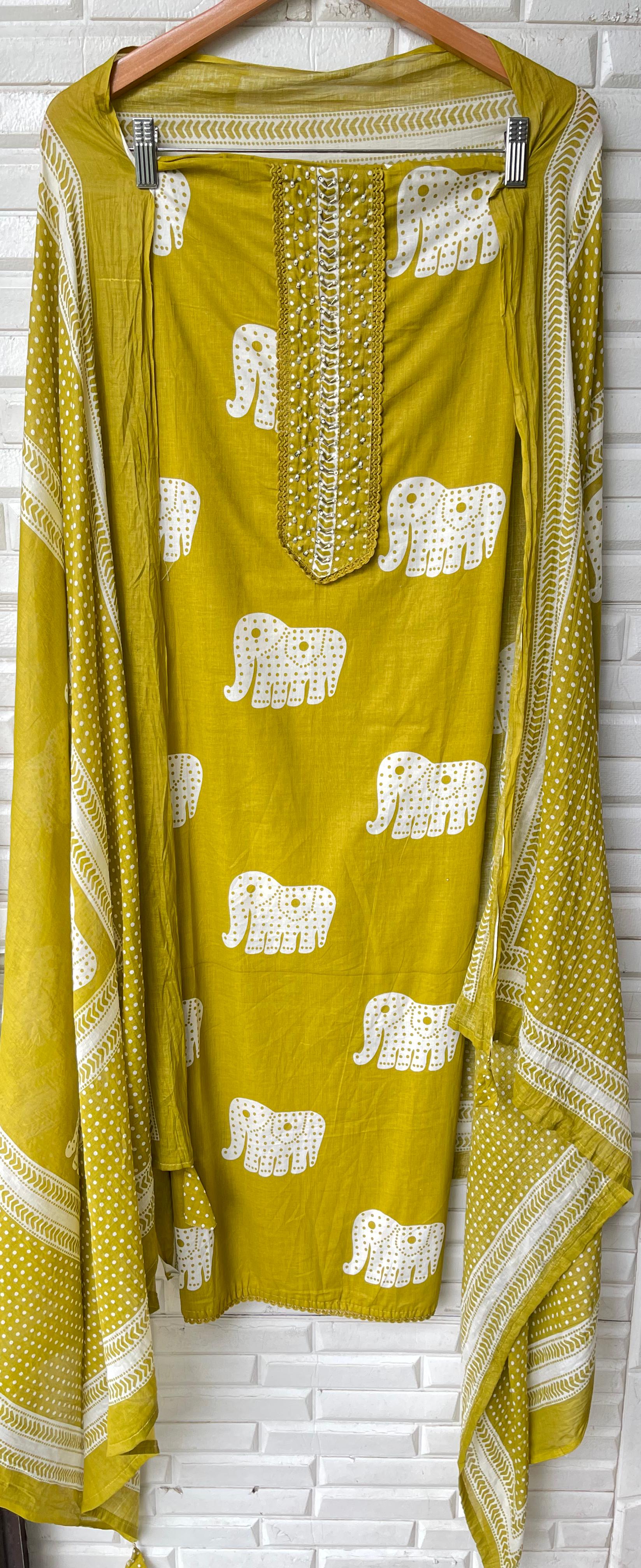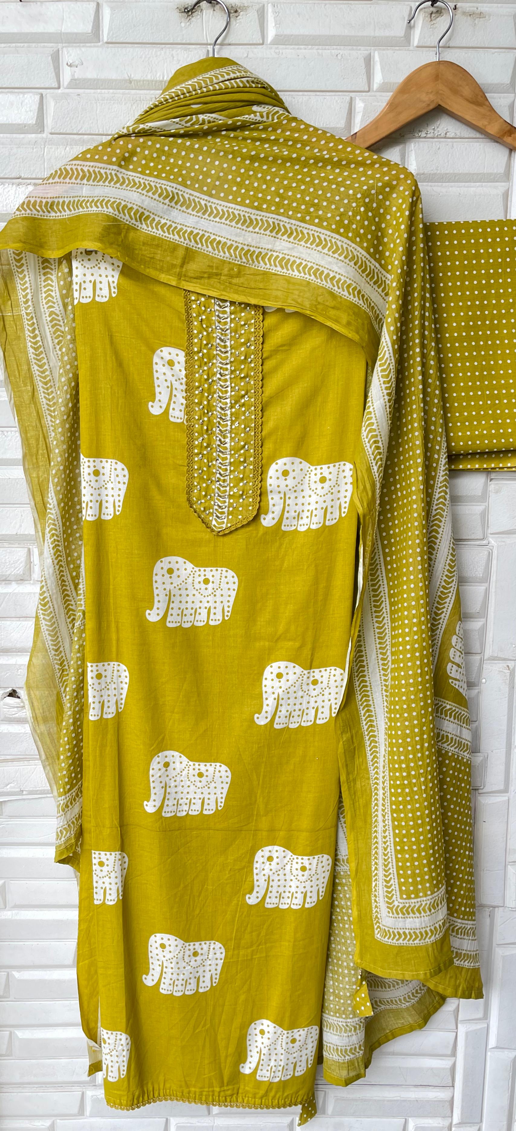 😊cotton printed shirt unstitched fabric with pearl cutdana sequins embroidery