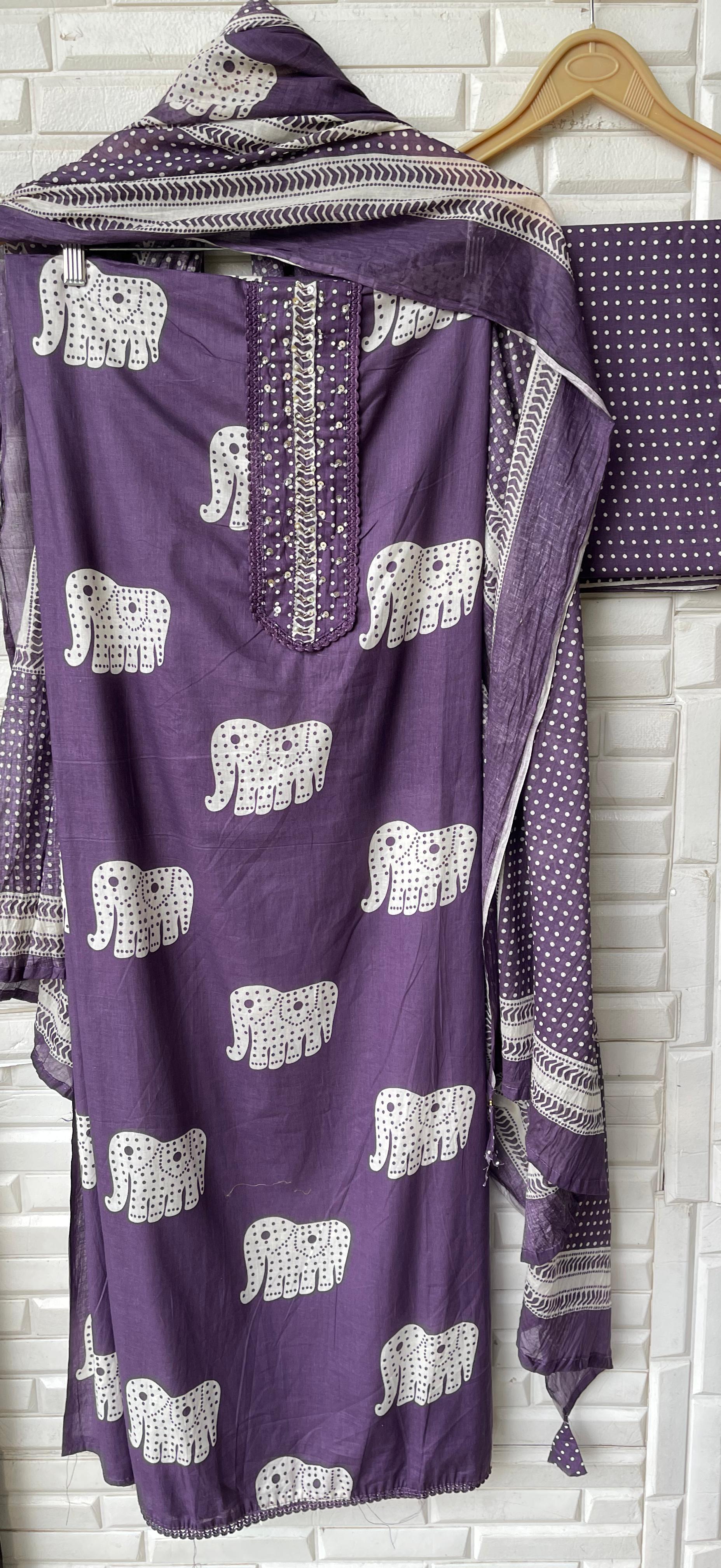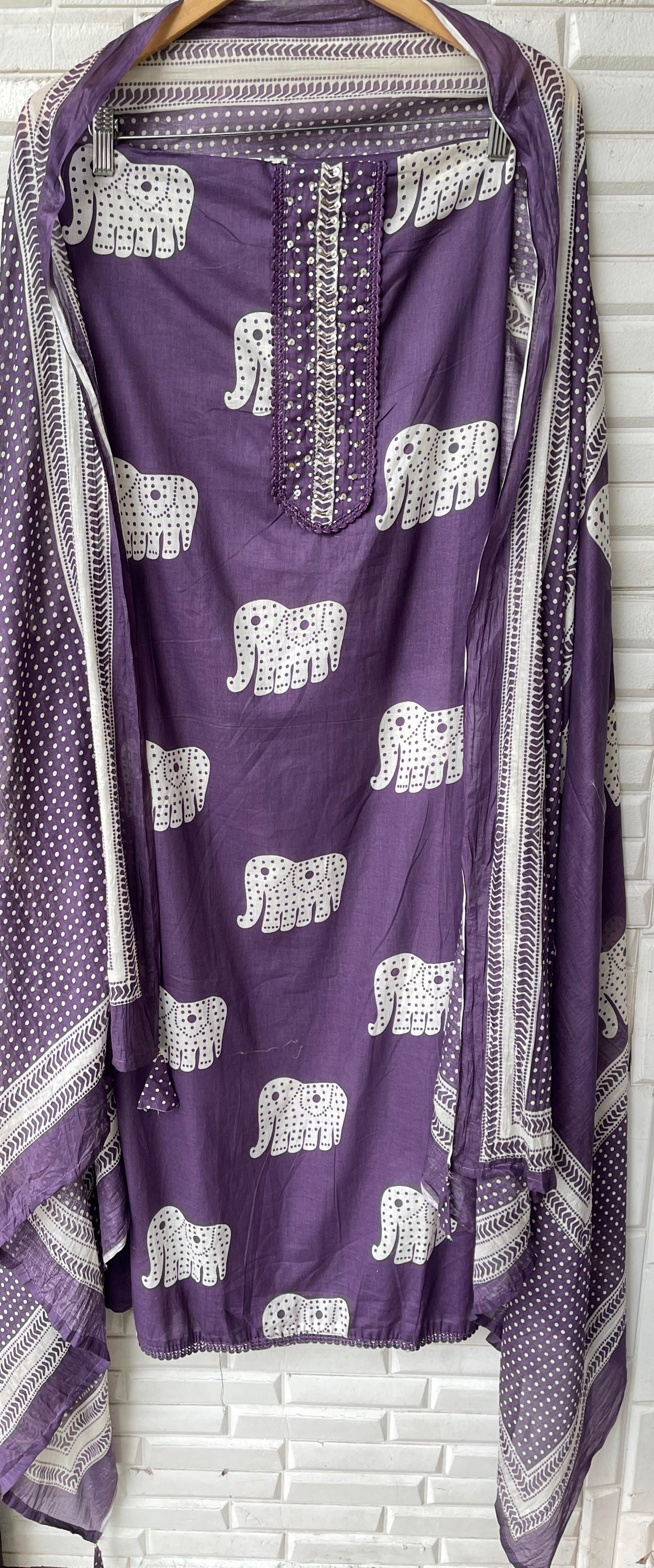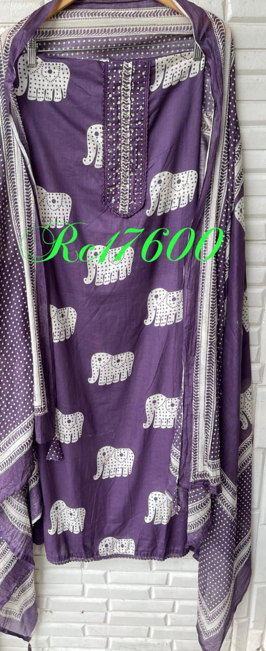 😊cotton printed shirt unstitched fabric with pearl cutdana sequins embroidery