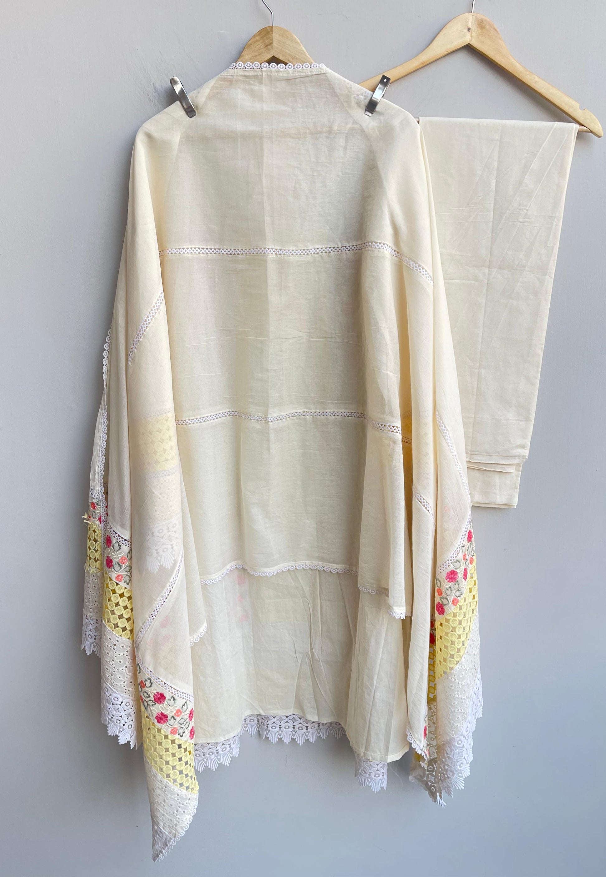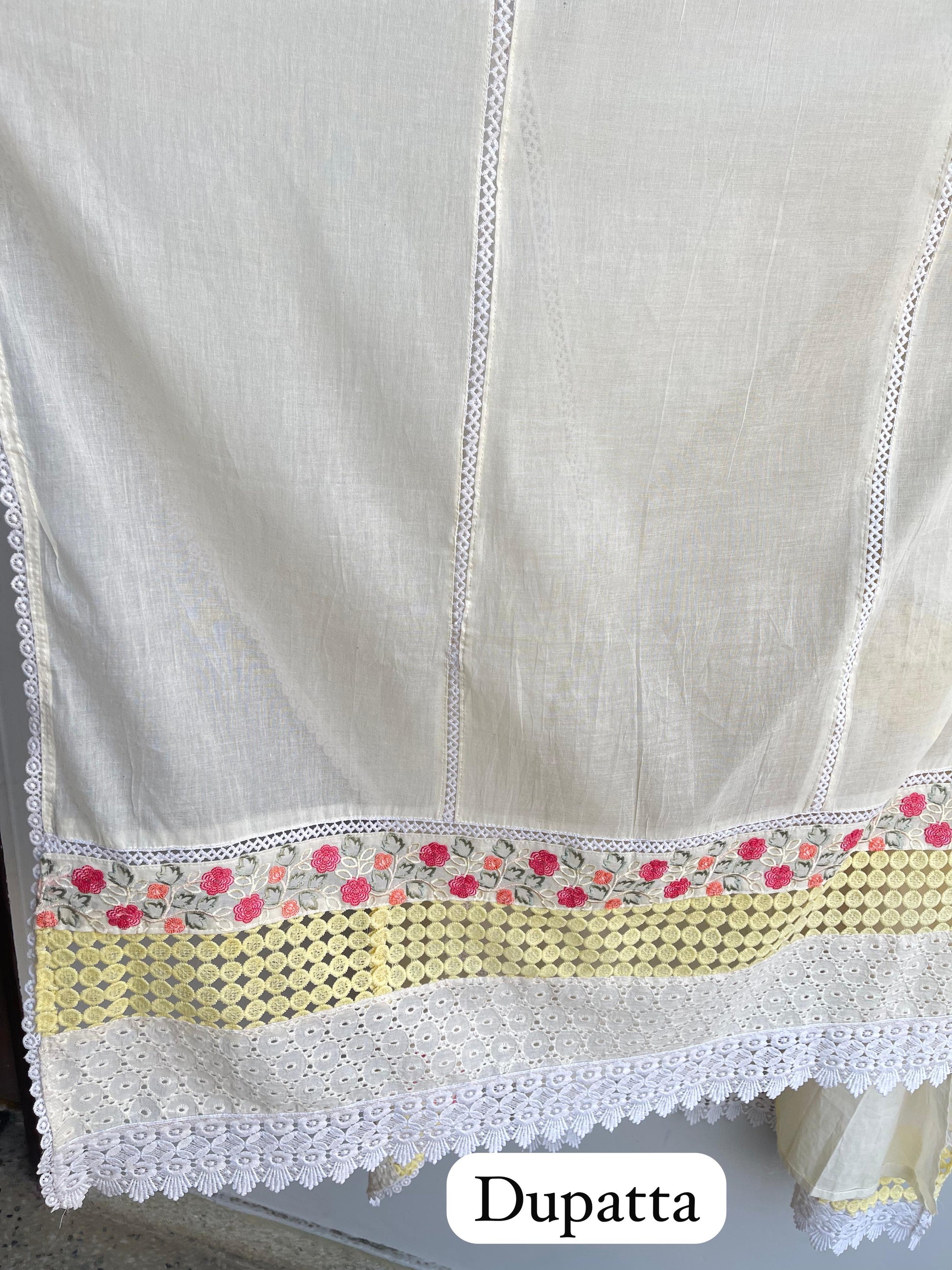 😊 cotton fabric fabric dupatta with chikan crotia fabric panelling crotia insertions and resham embroidery.