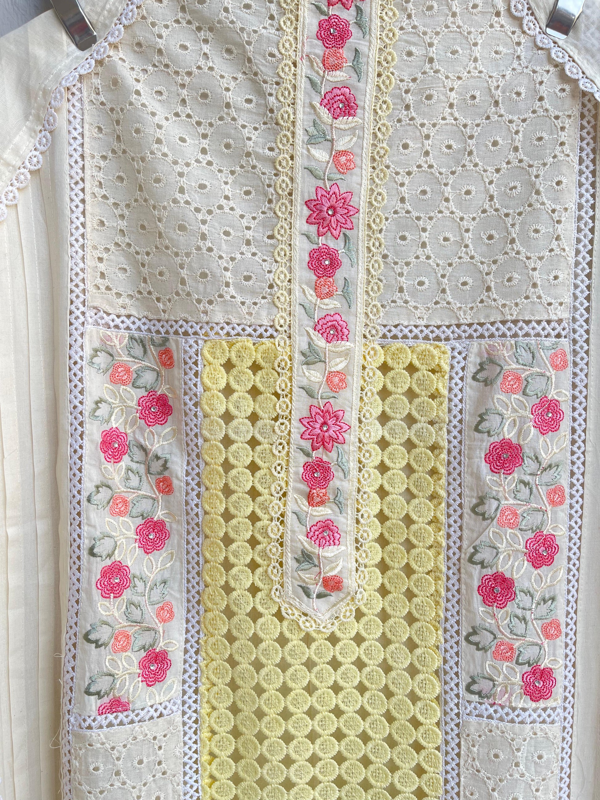 😊 cotton fabric unstitched shirt with chikan and crotia fabric panelling resham embroidery and swarowski highlighting