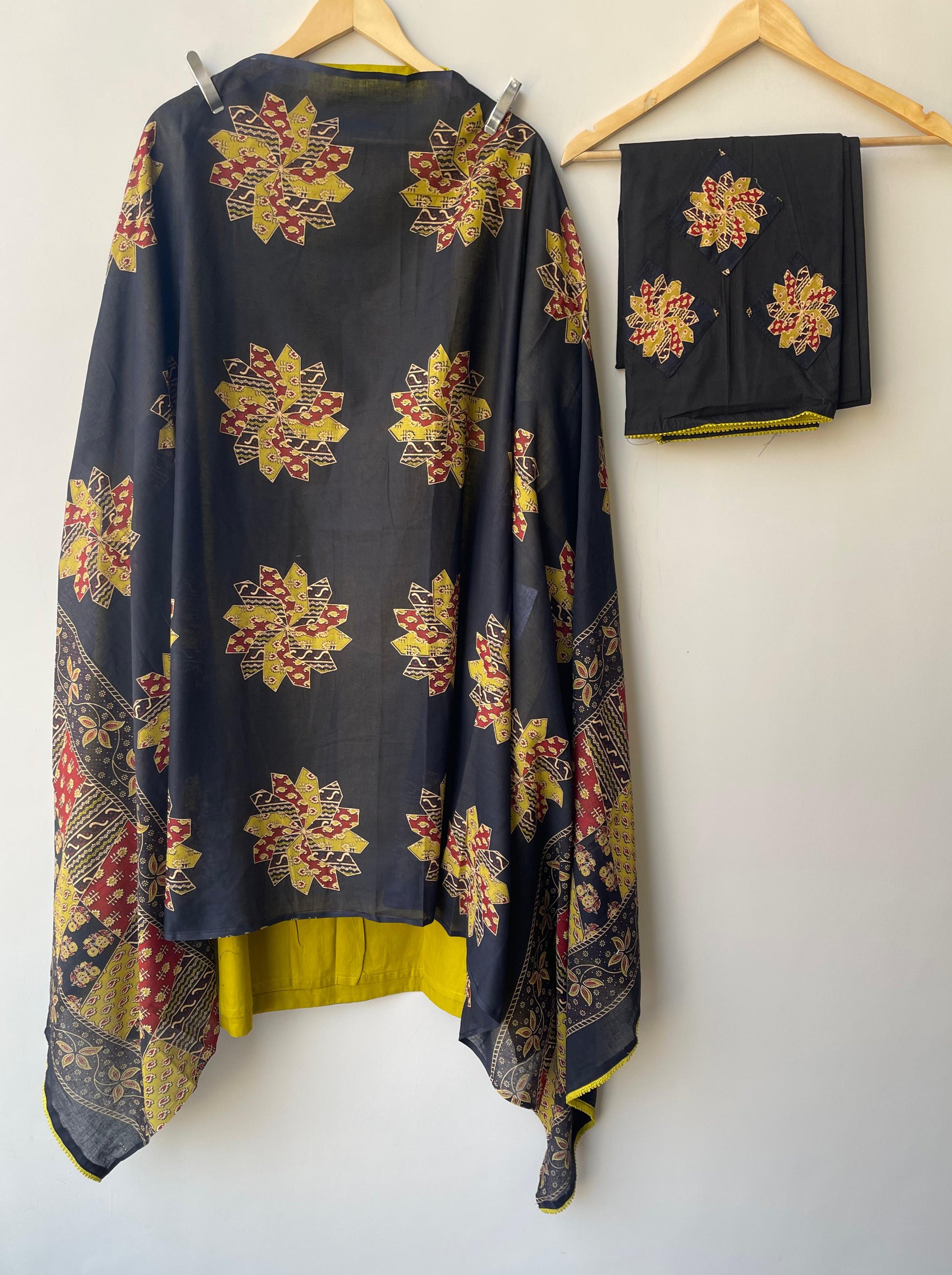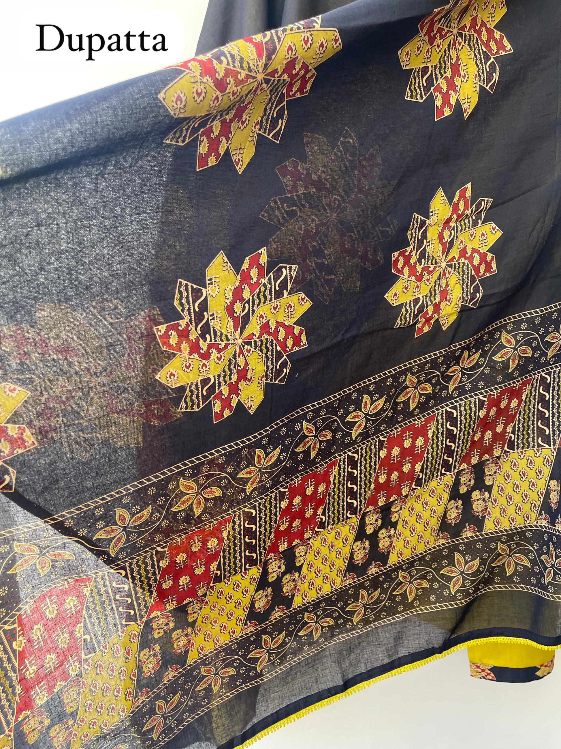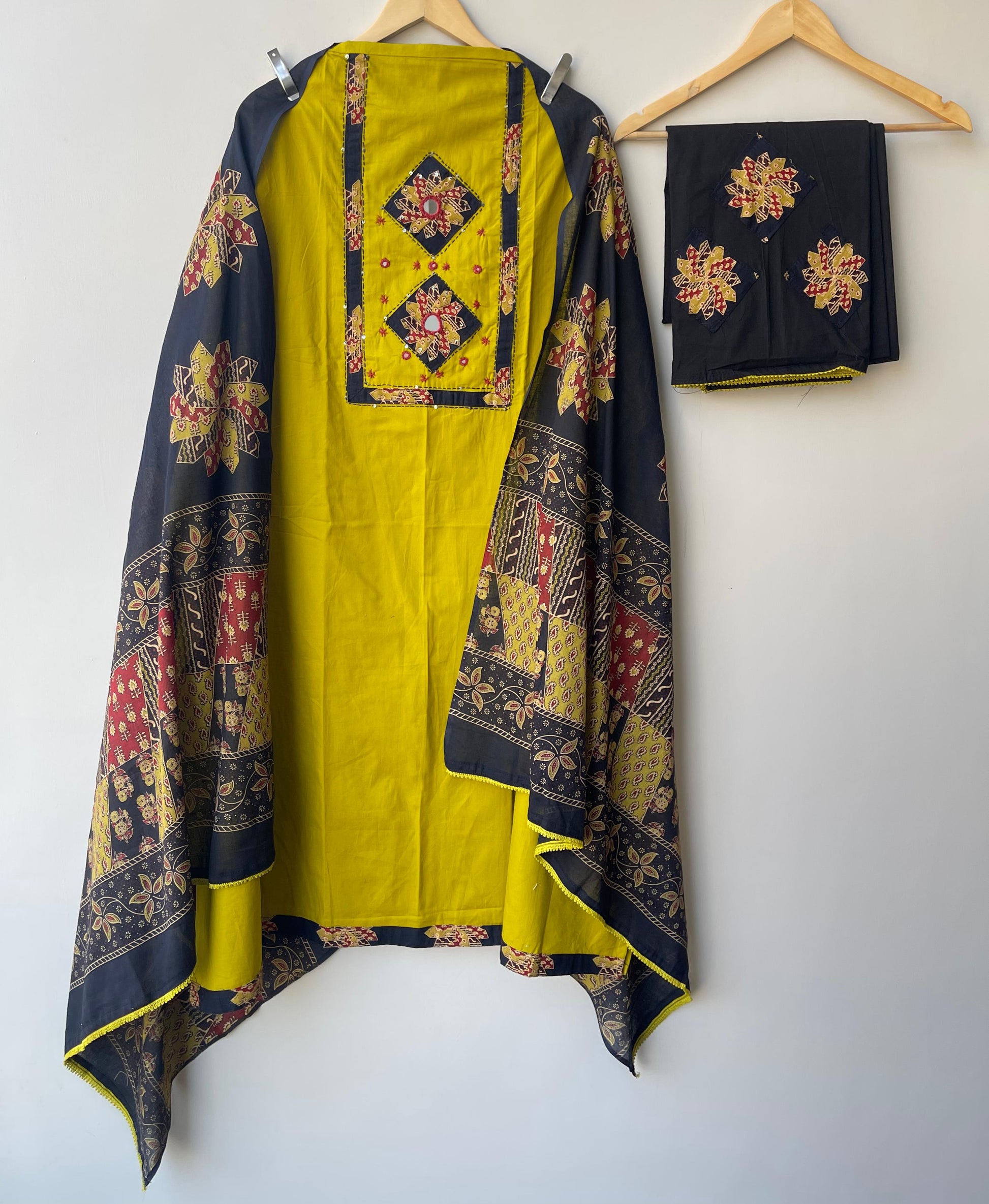 😊 cotton unstitched fabric lowers with printed patchwork