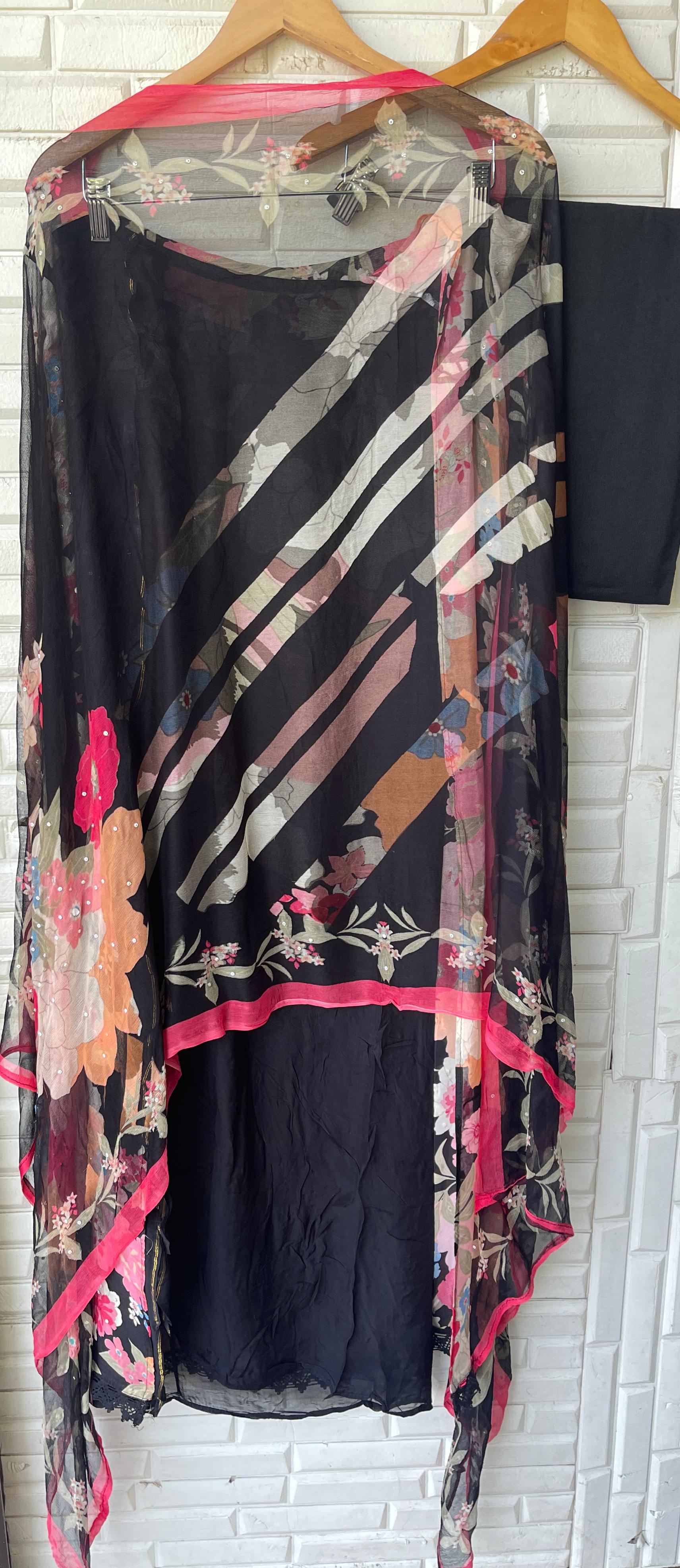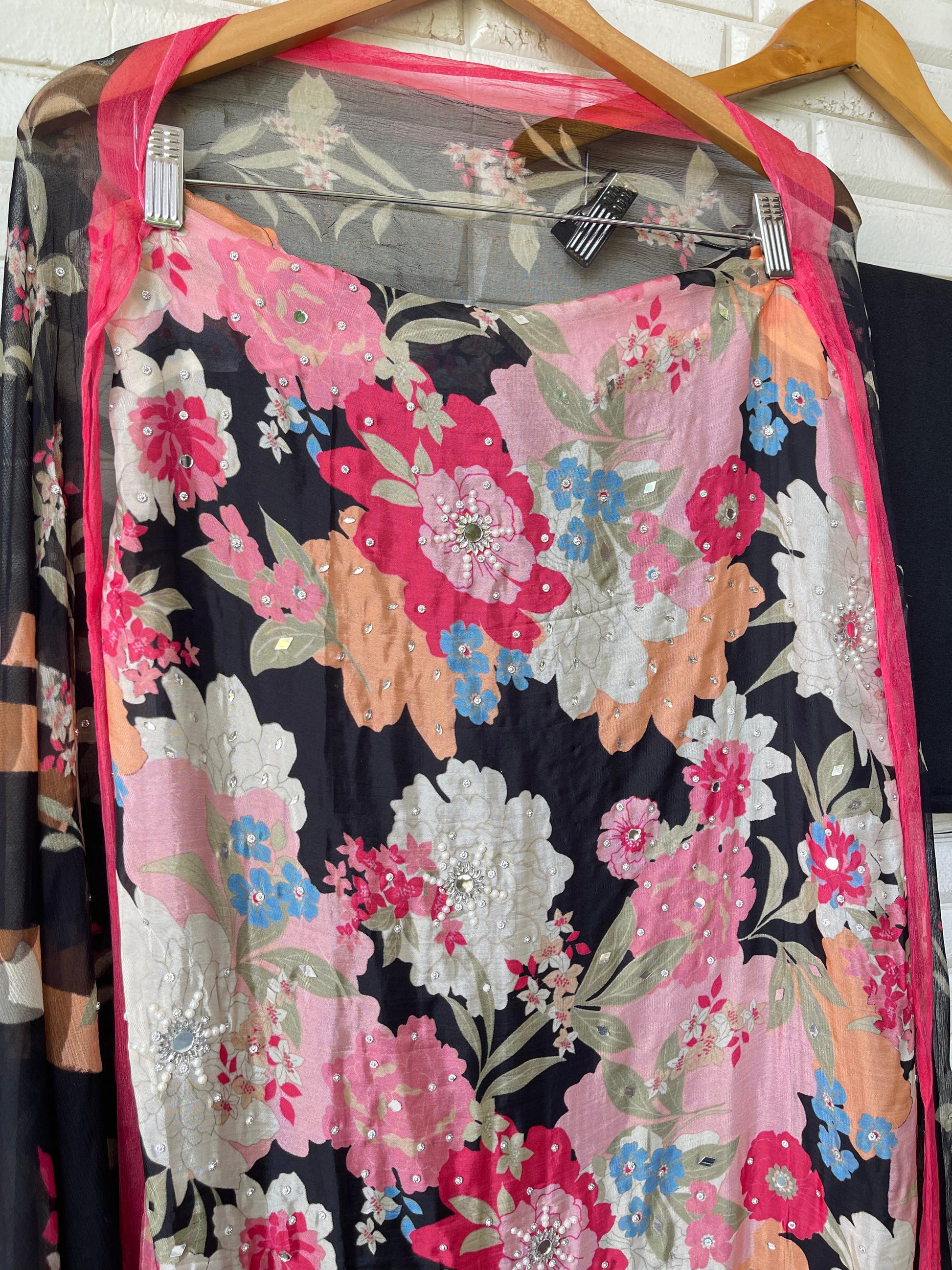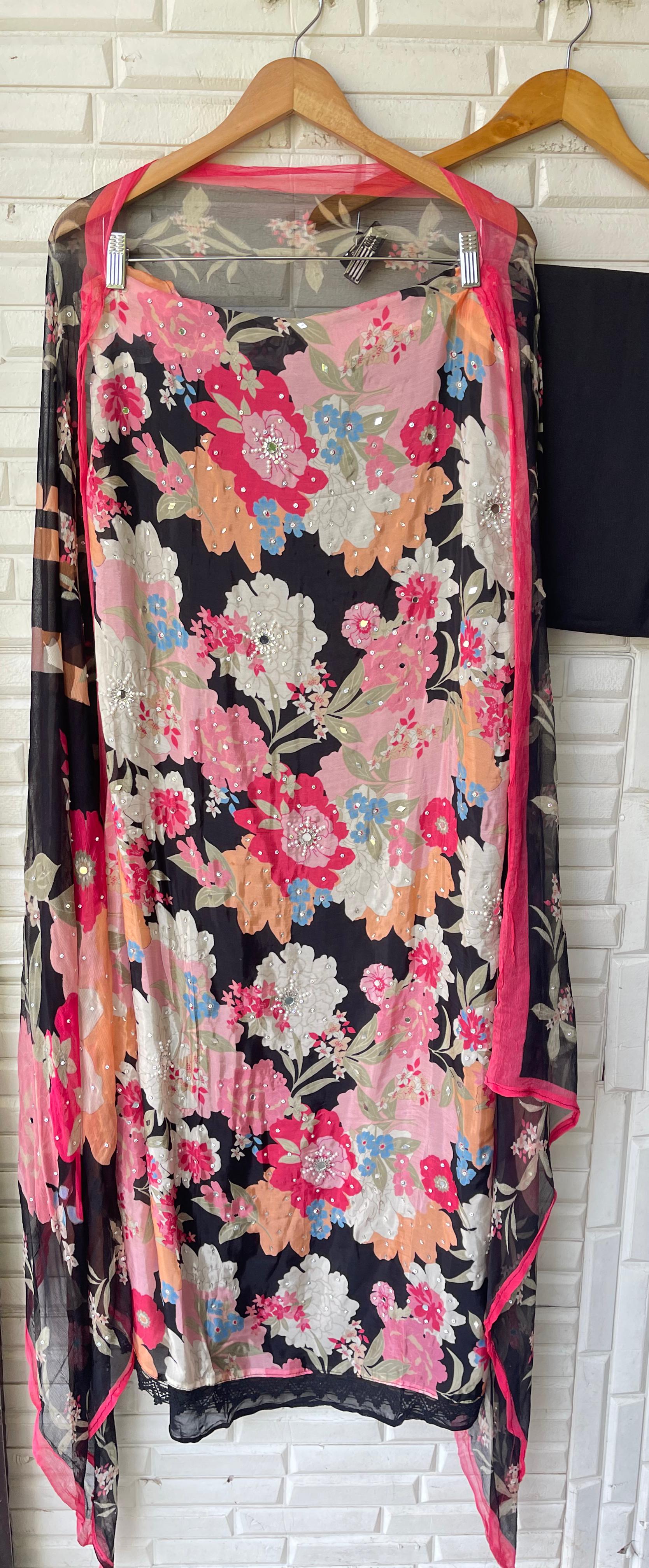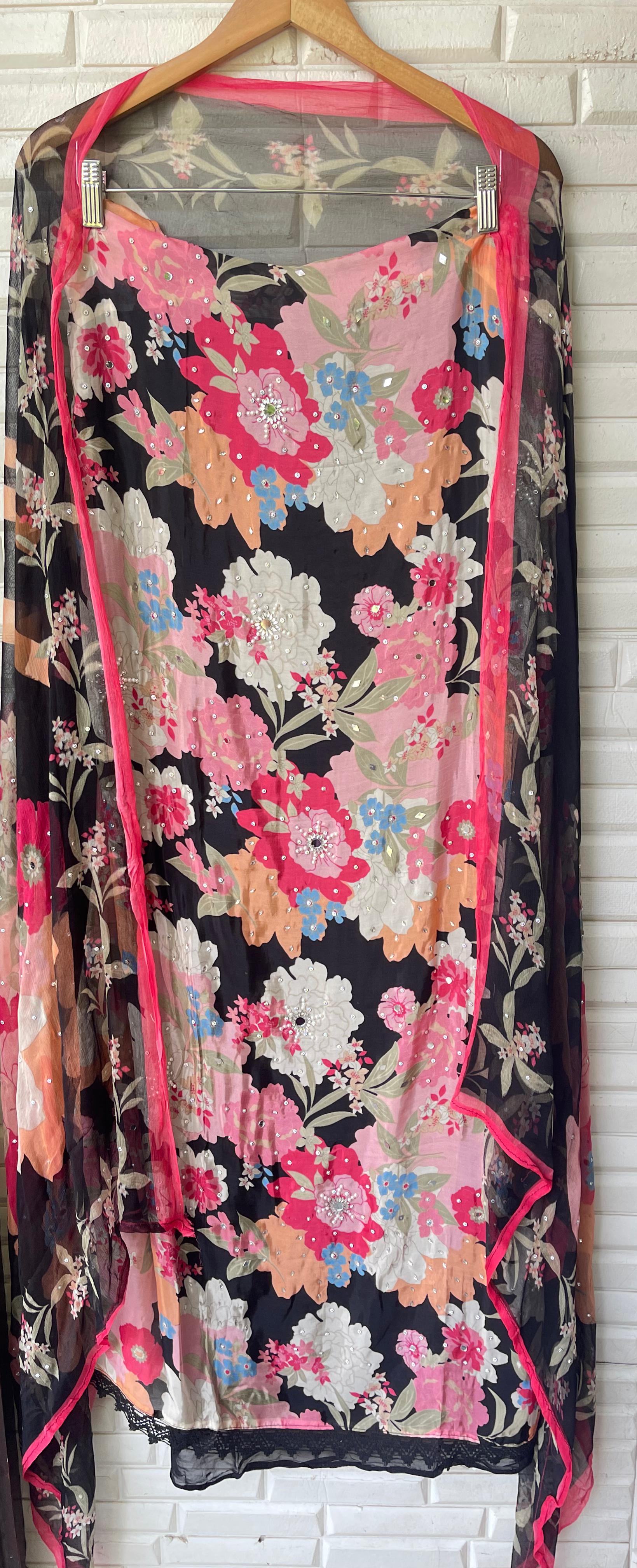 😊crape Satan printed unstitched shirt with pearl mirror patri zarkan highlight