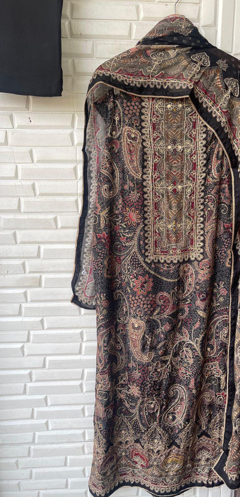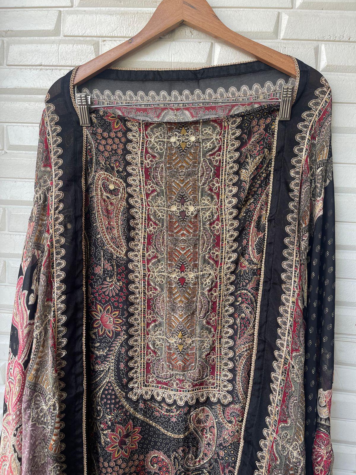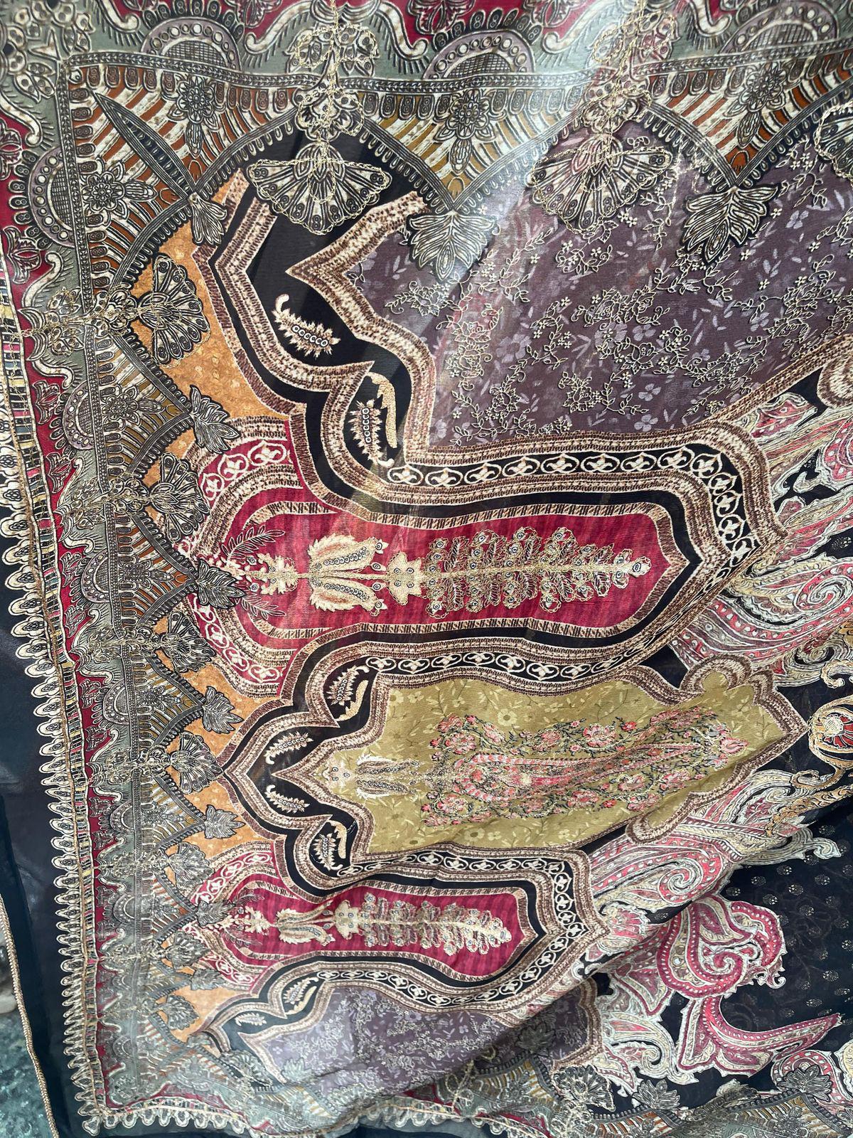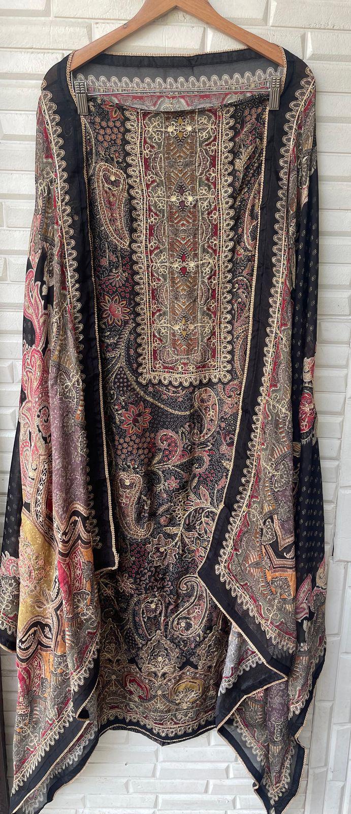😊 crape satin printed fabric unstitched shirt with stunning zari embroidery