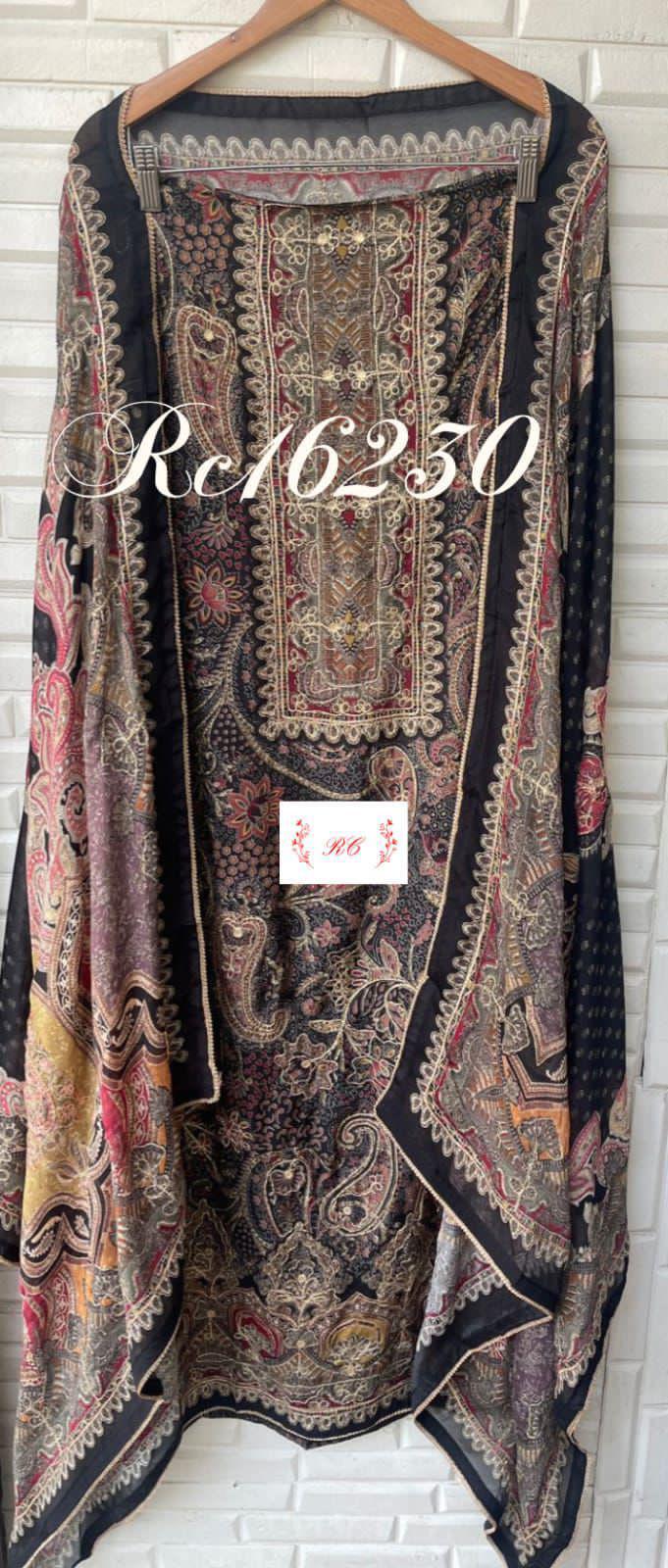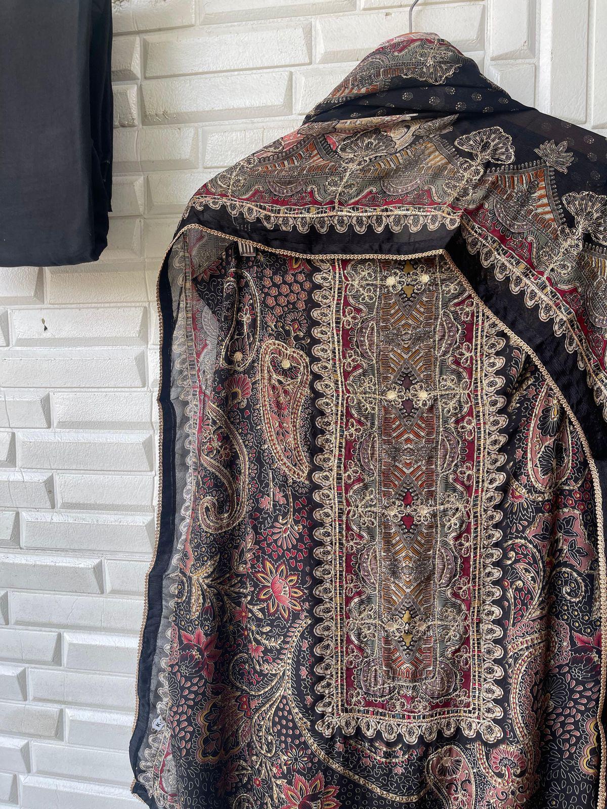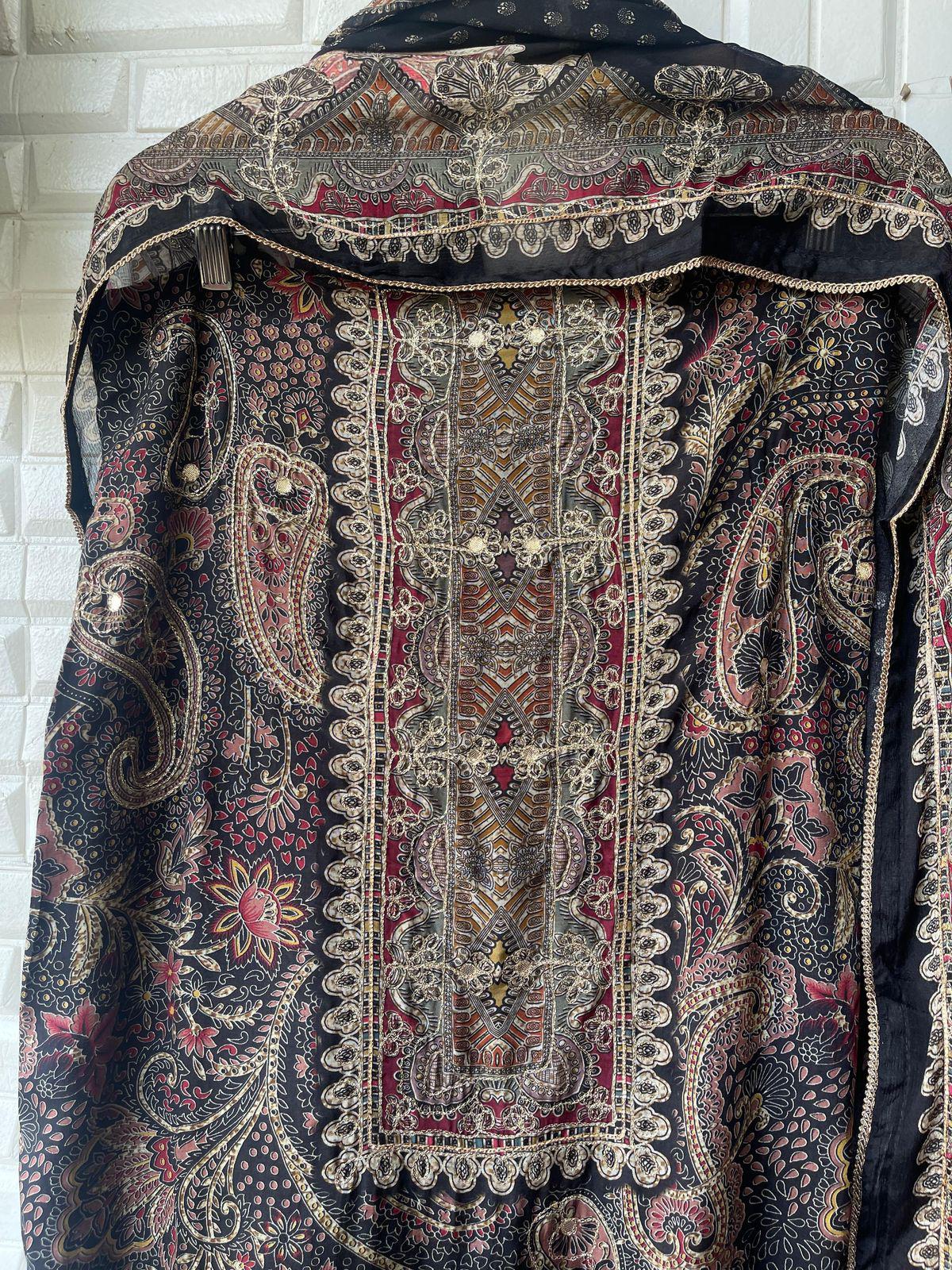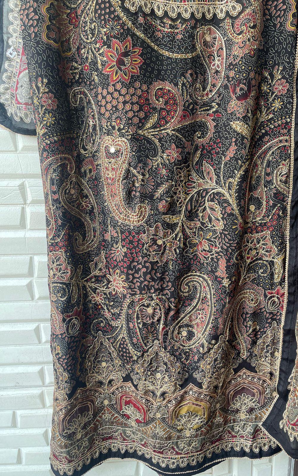 😊 crape satin printed fabric unstitched shirt with stunning zari embroidery