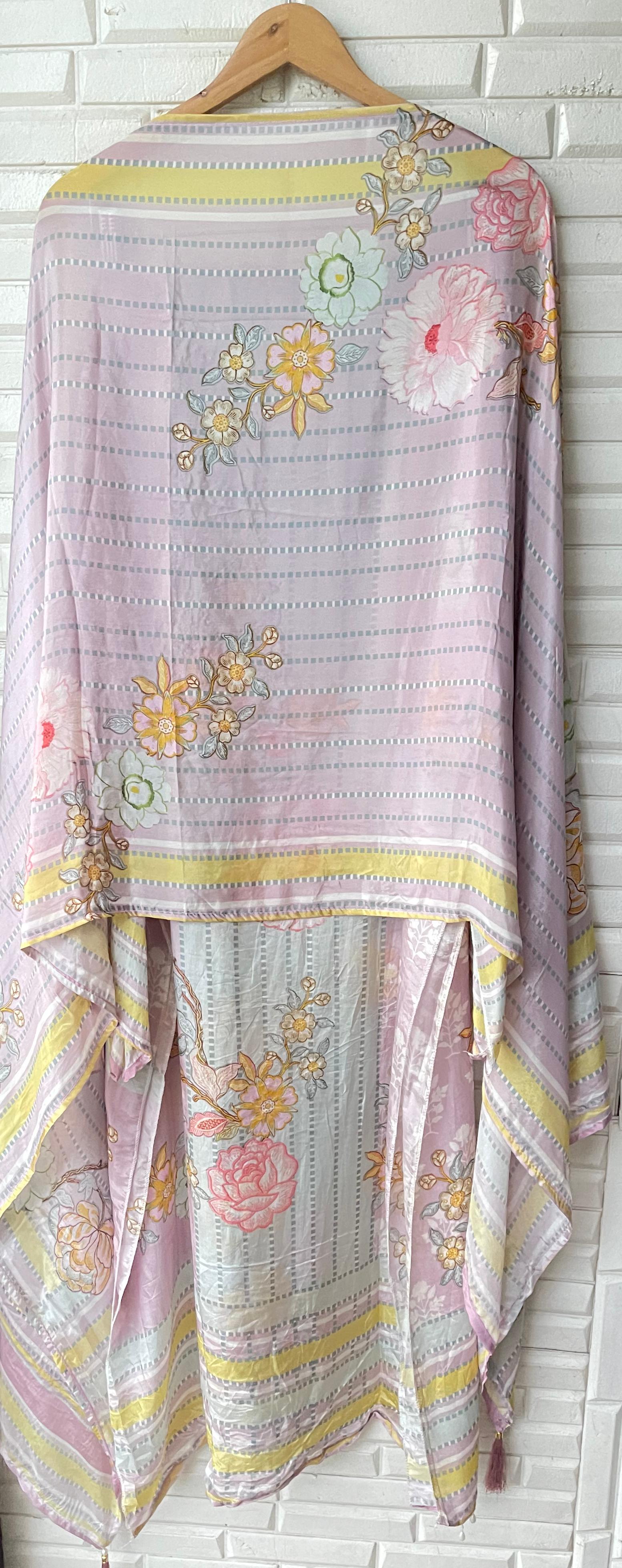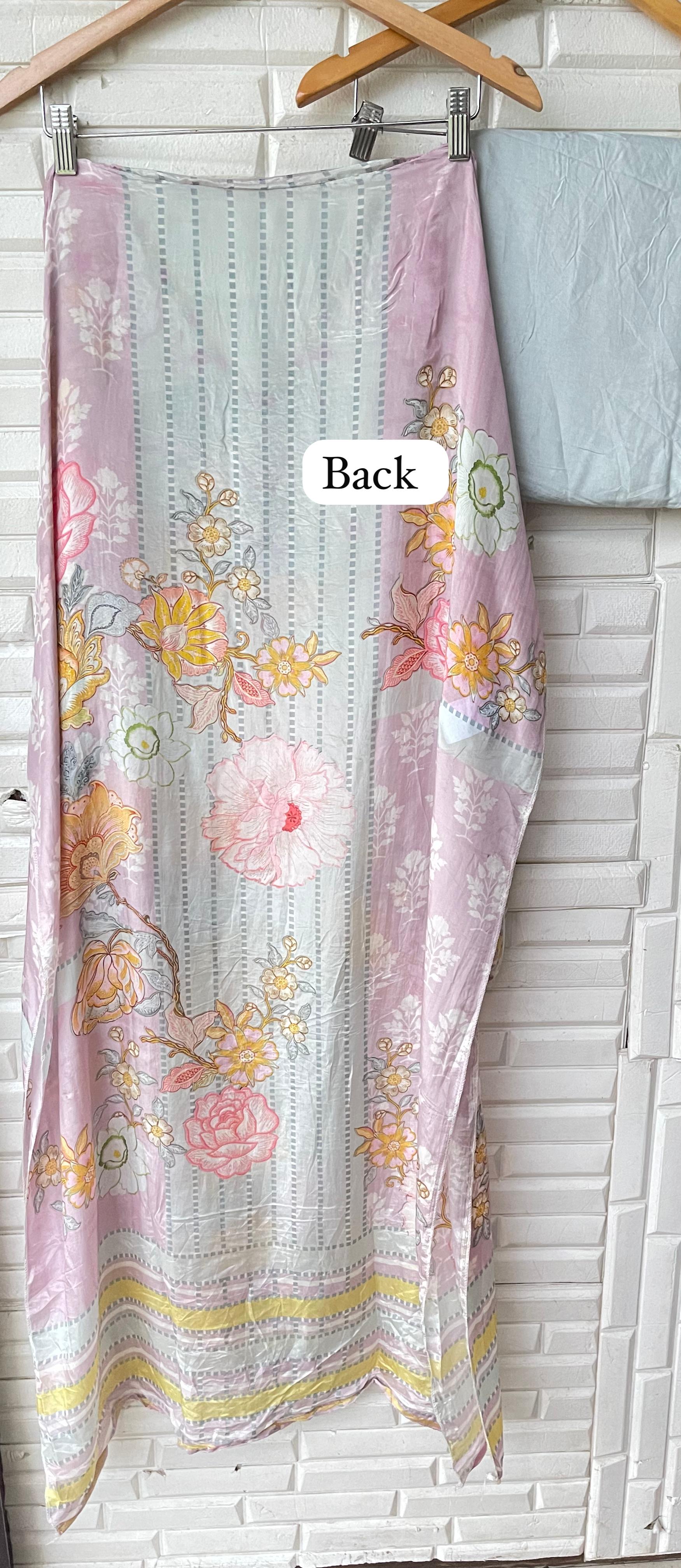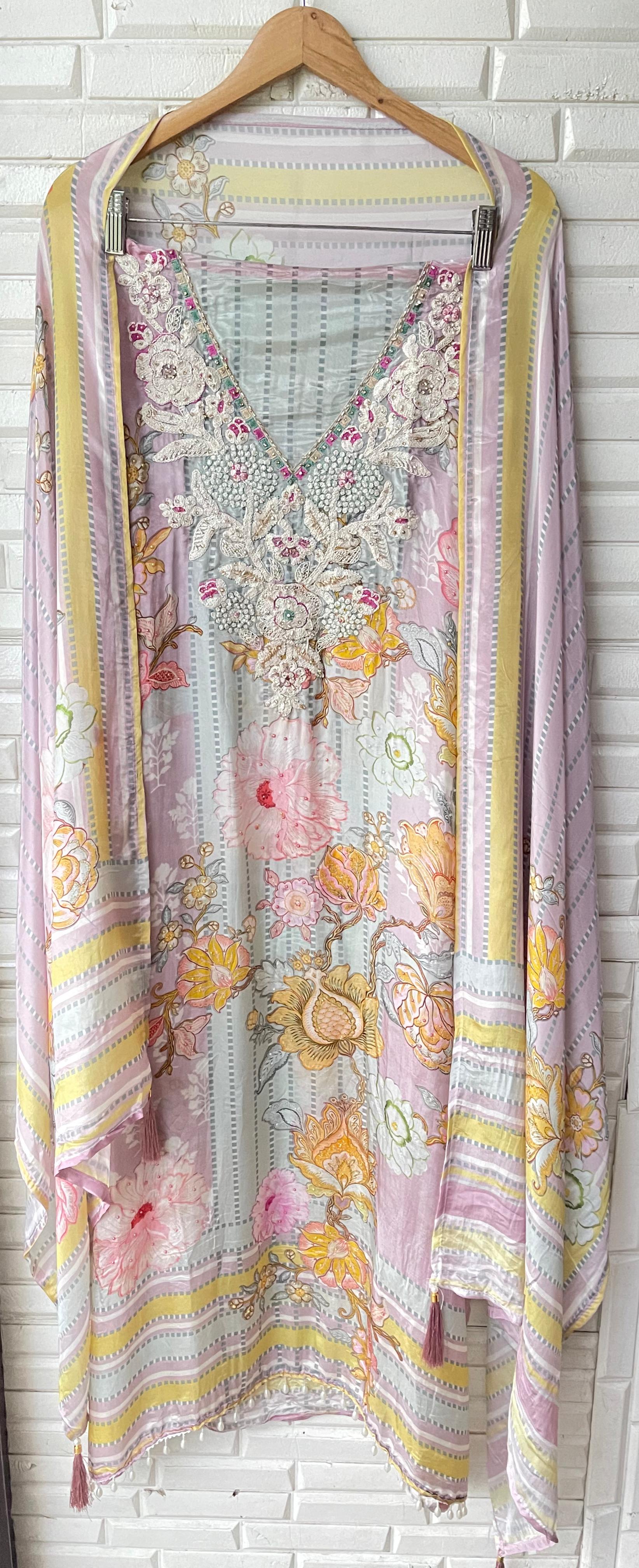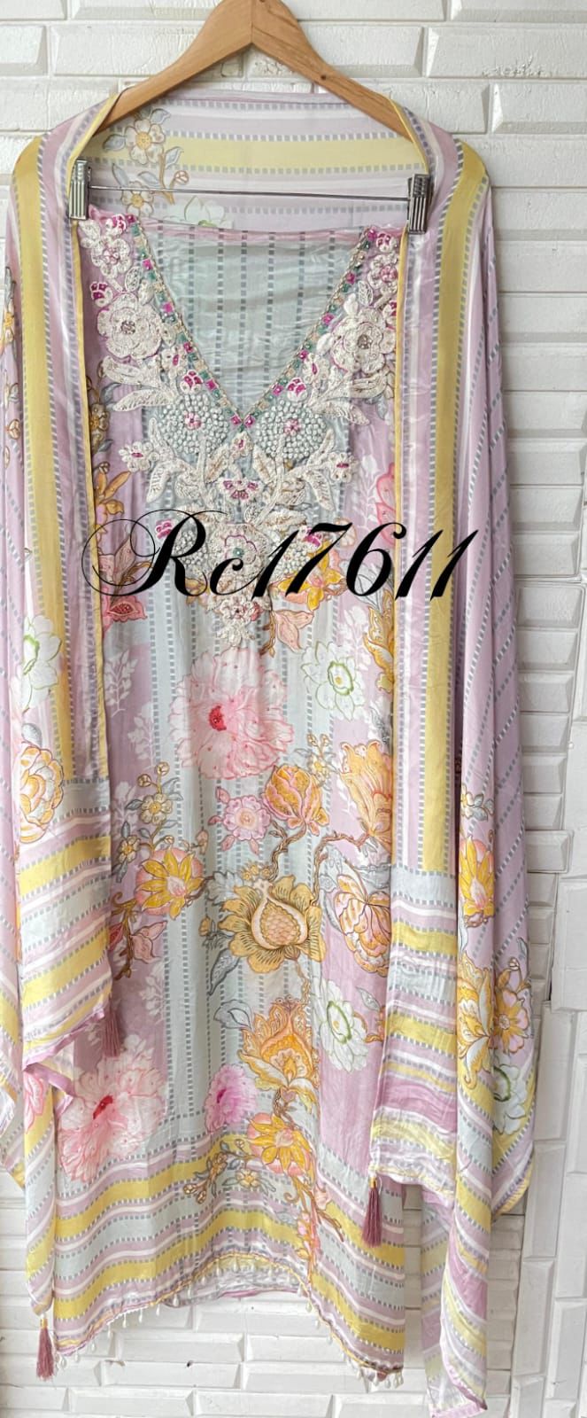 π crape satan printed fabric unstitched shirt with swarowski resham pearl Dabka embroidery