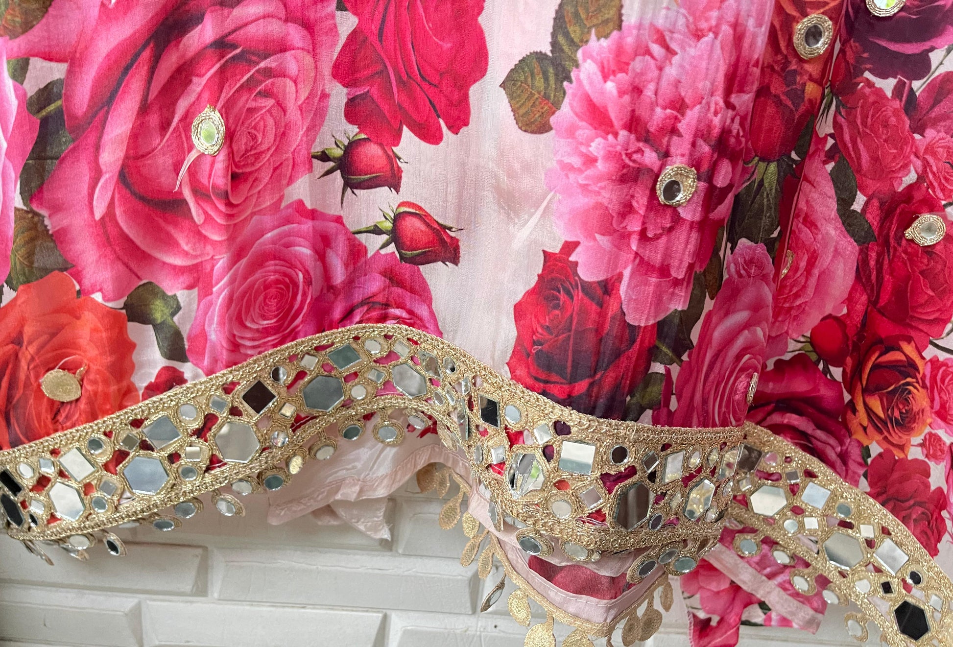 π crape silk printed fabric dupatta zari real mirror work border lace