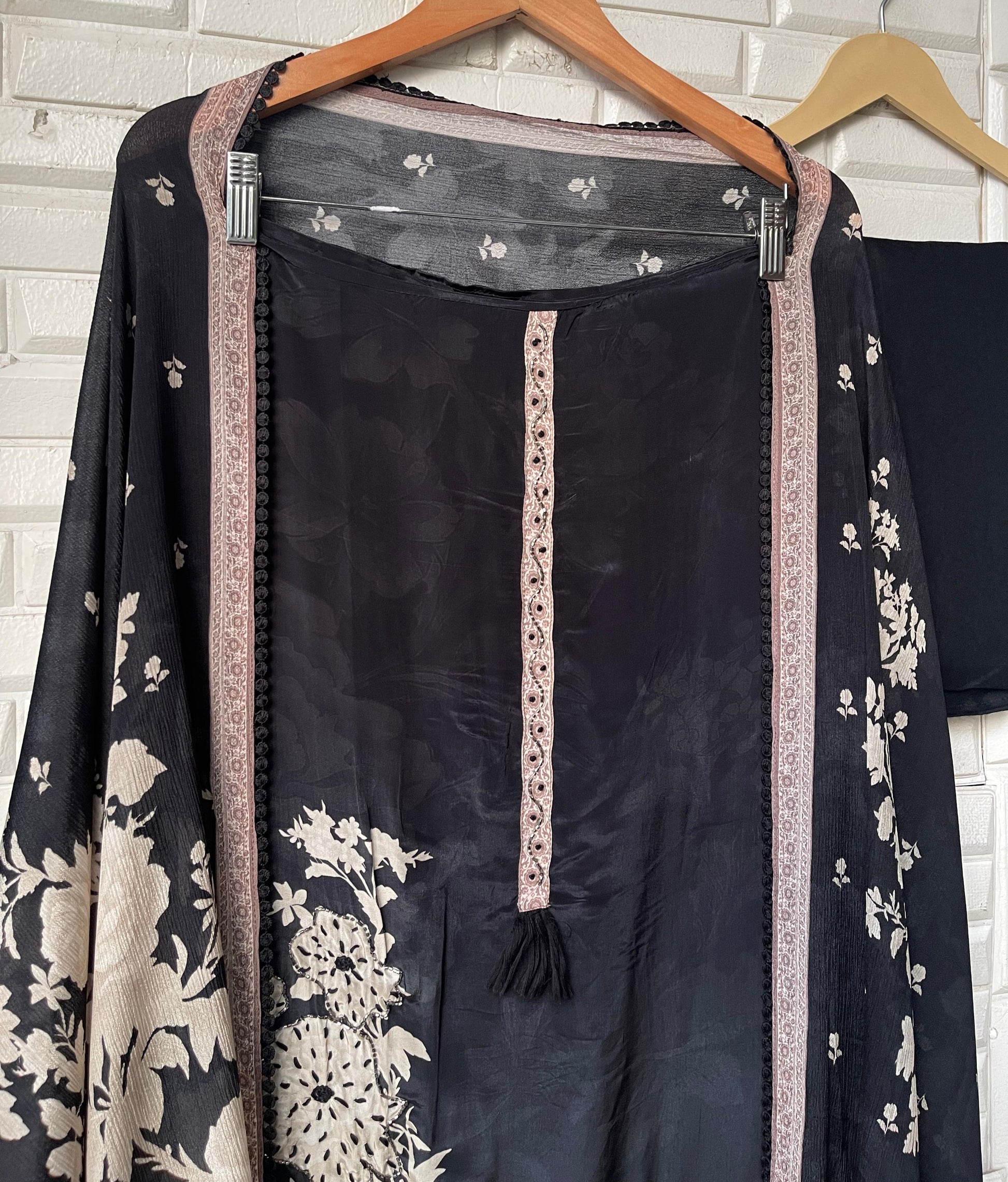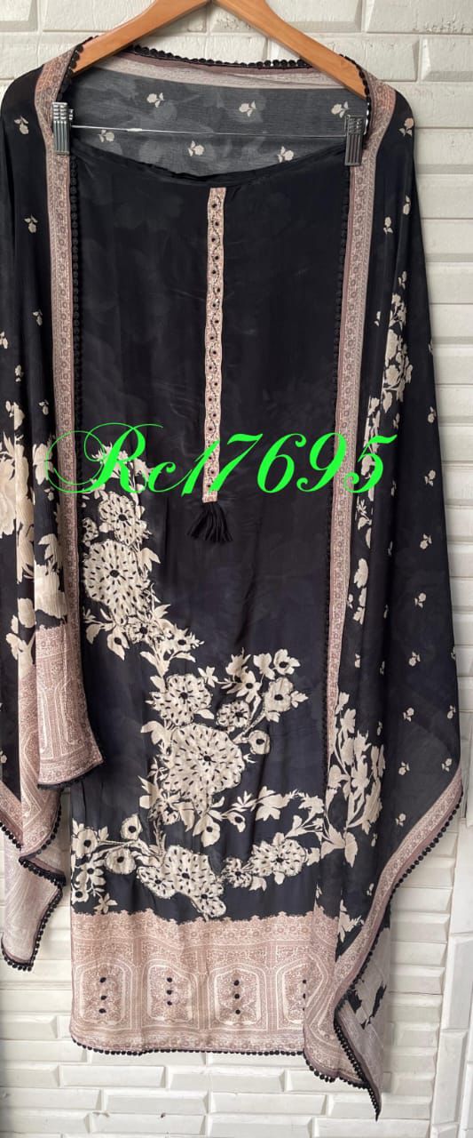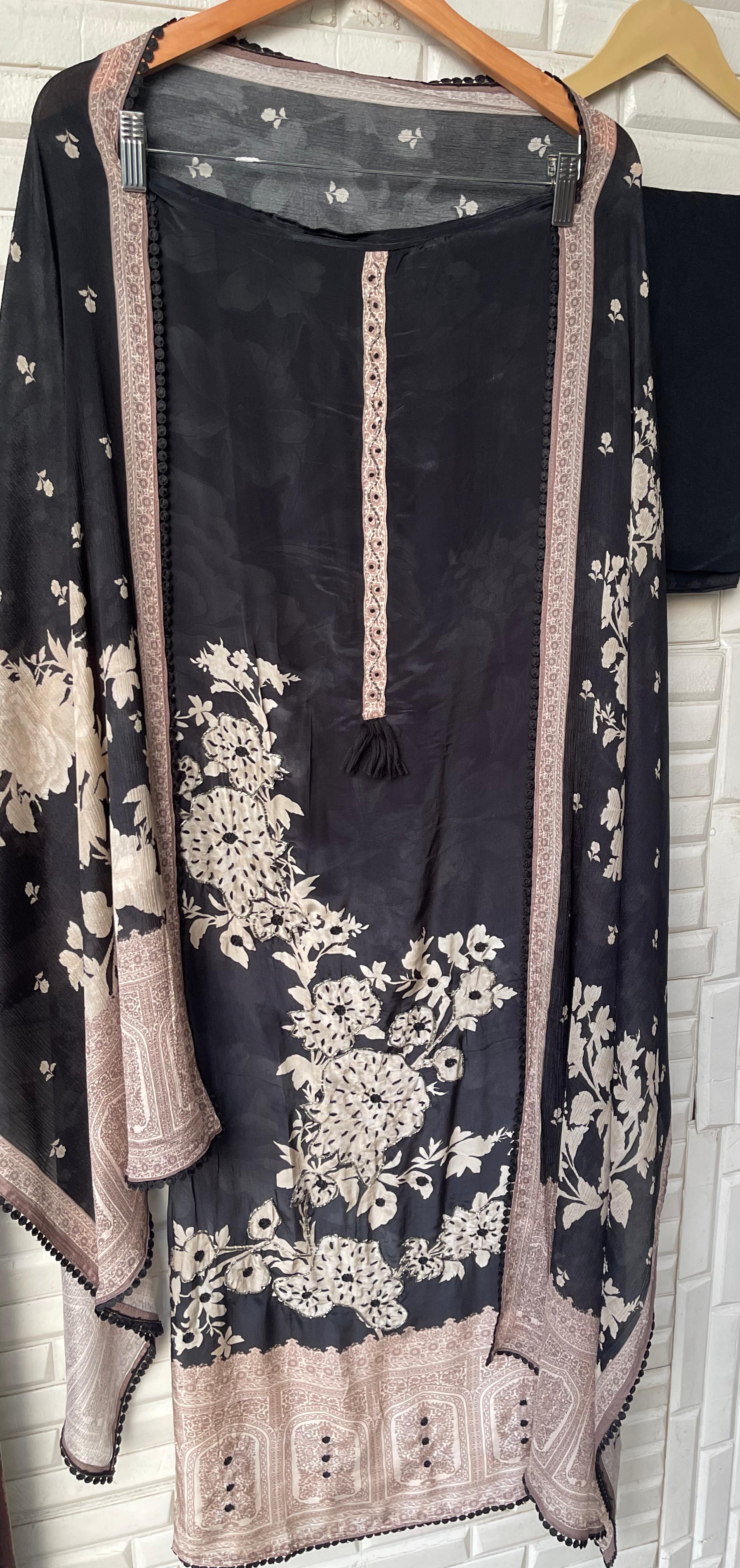 π pure crape printed fabric unstitched shirt with and kutdanna resham knots embroidery