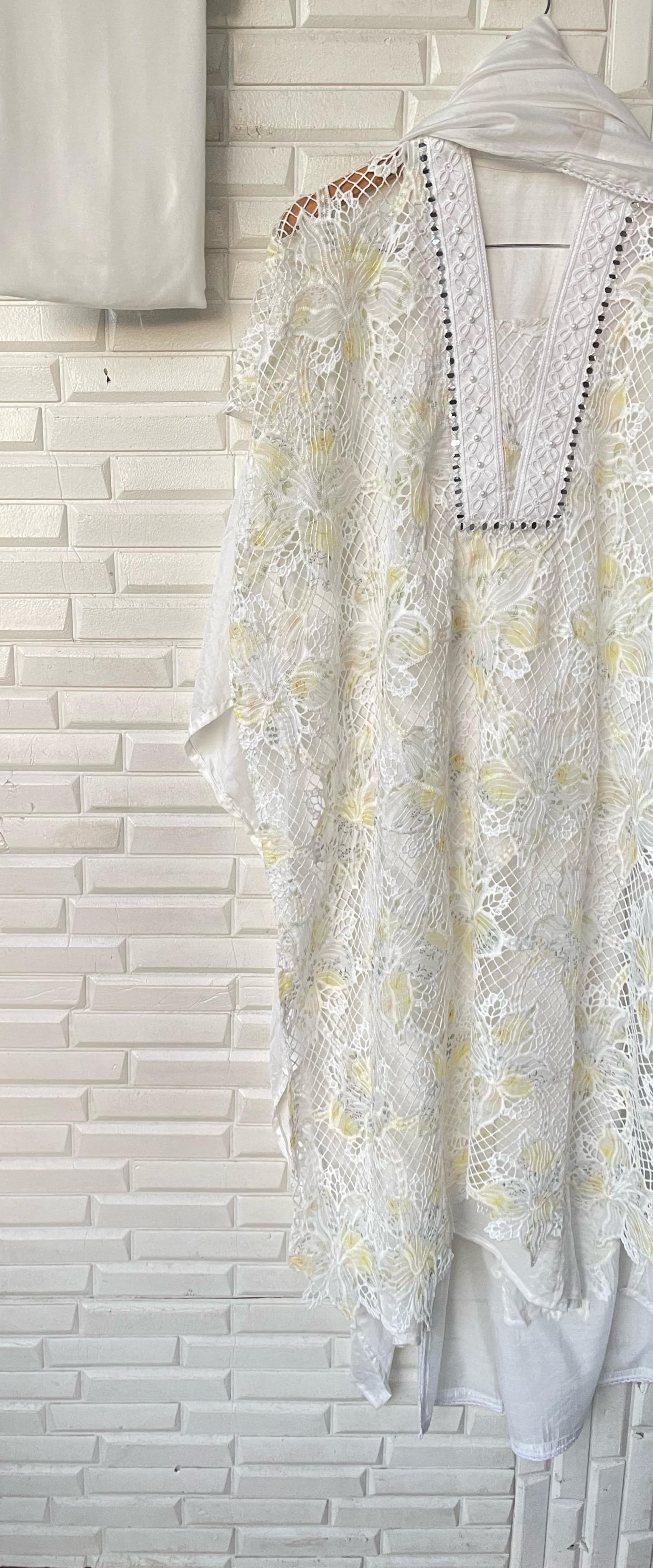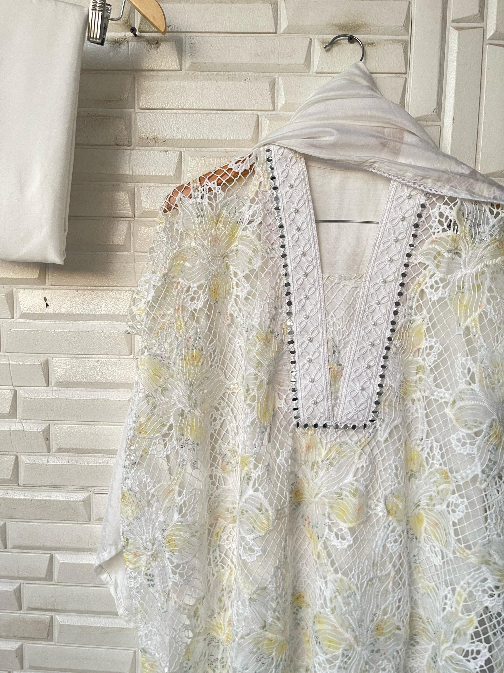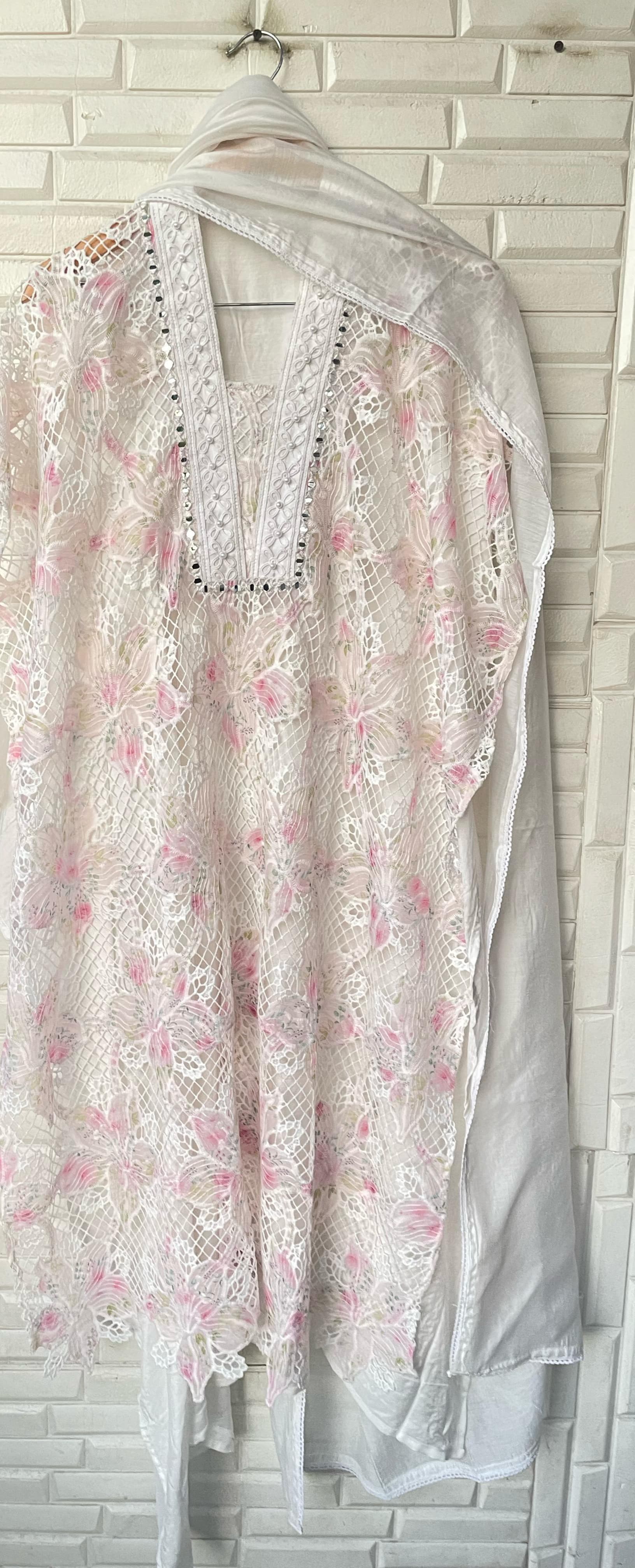 đ Crotia printed fabric unstitched shirt with muslin back plus mirror work pearl  resham embroidery