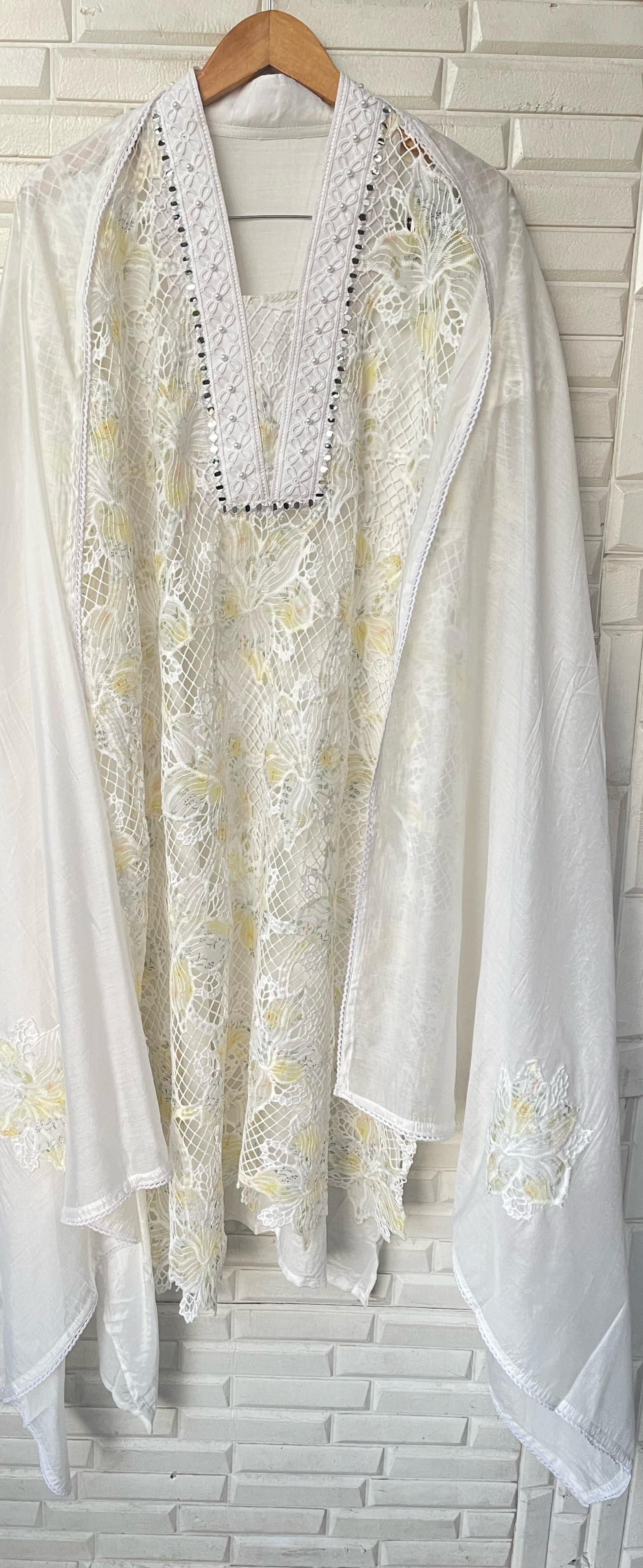 đ Chanderi cotton fabric dupatta with crotia patchwork and border laceÂ