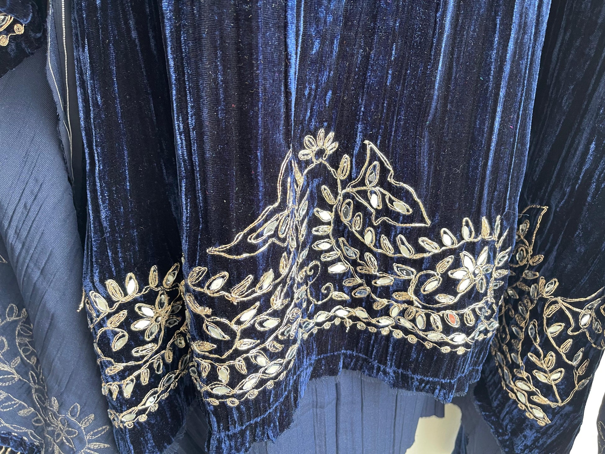😊 crushed micra velvet fabric unstitched shirt with mirror work zari embroidery and swarowski highlights