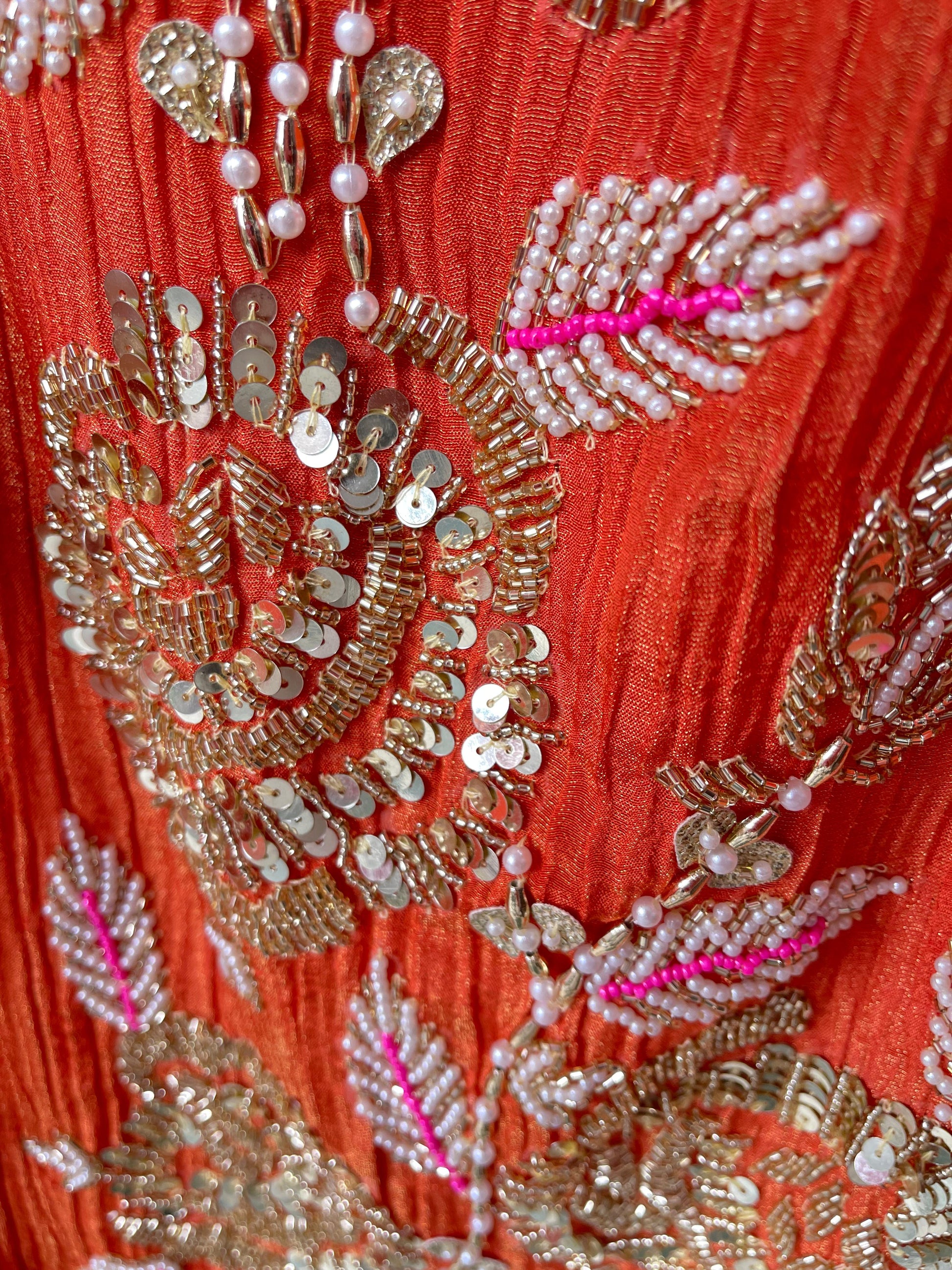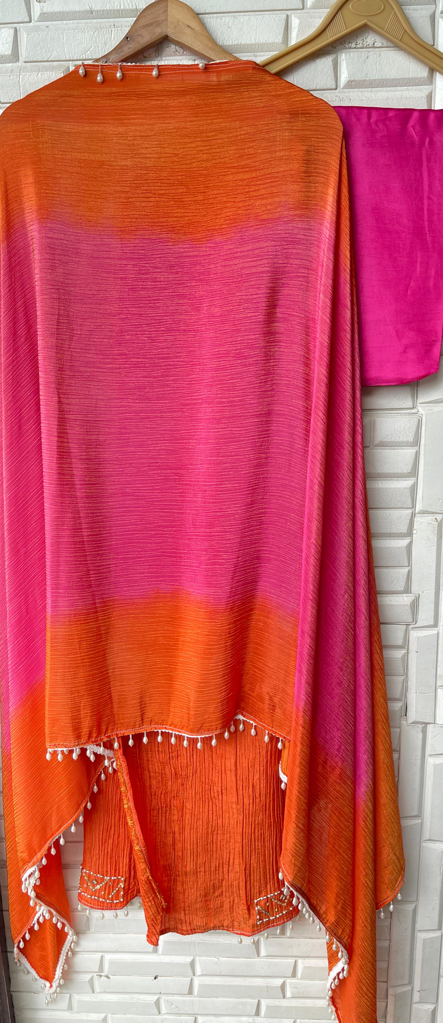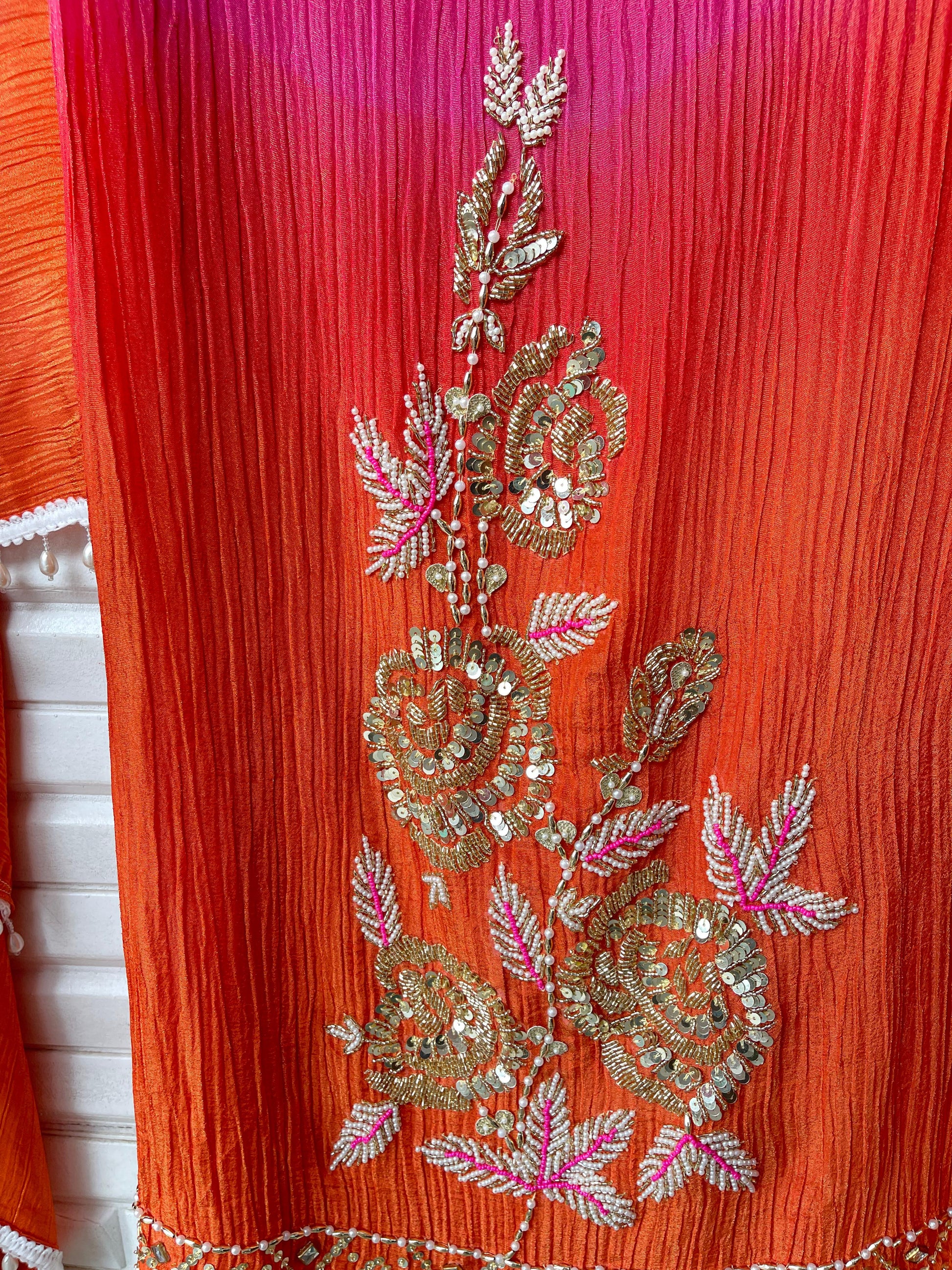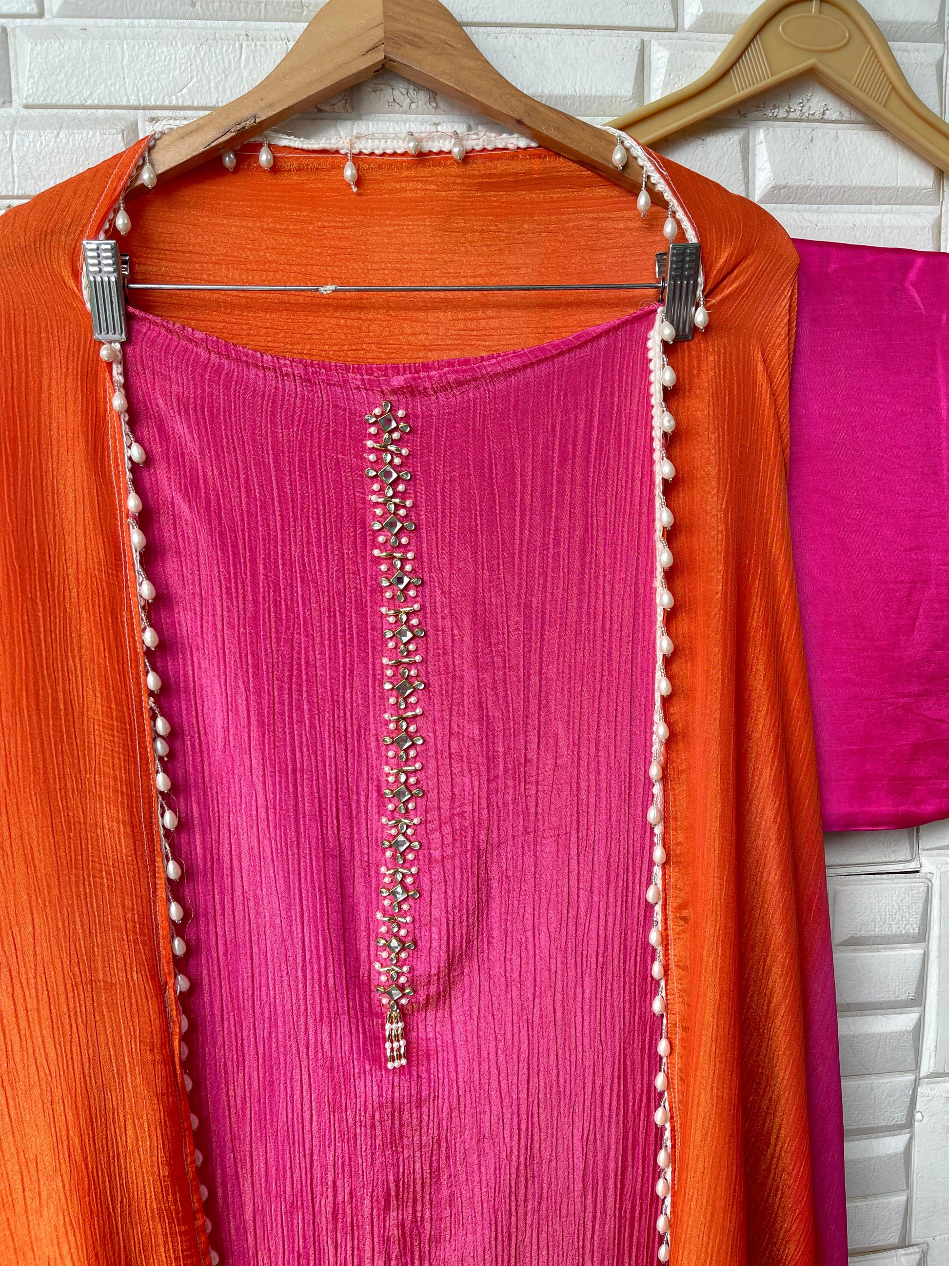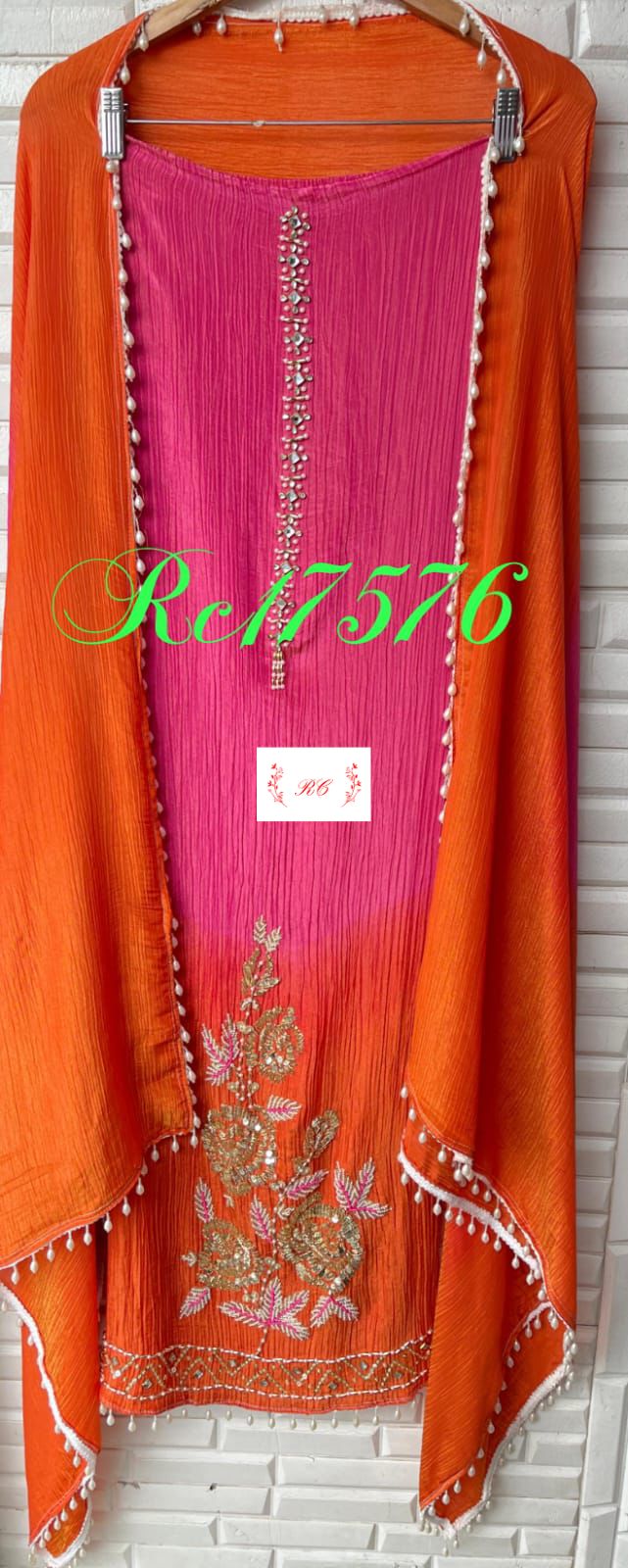 😊 crushed shimmer tissue fabric unstitched shirt with kundan pearl sequence zari kutdanna embroidery