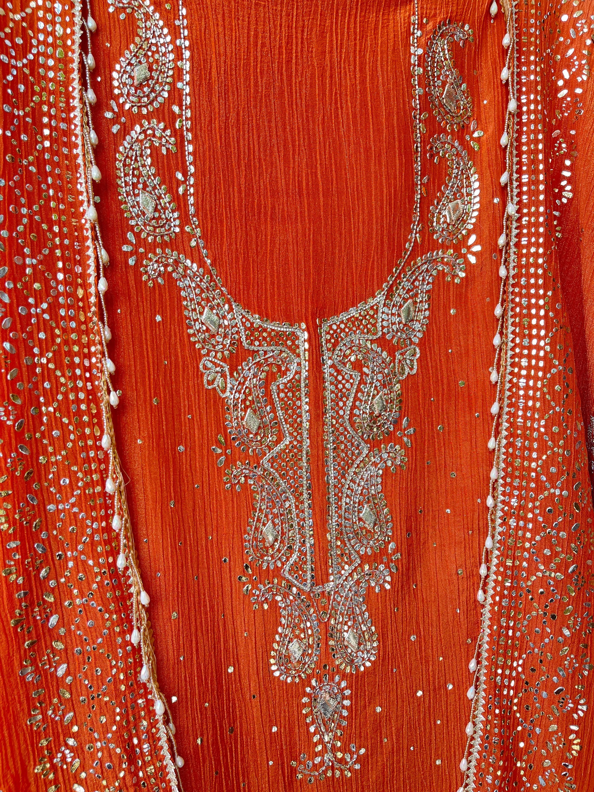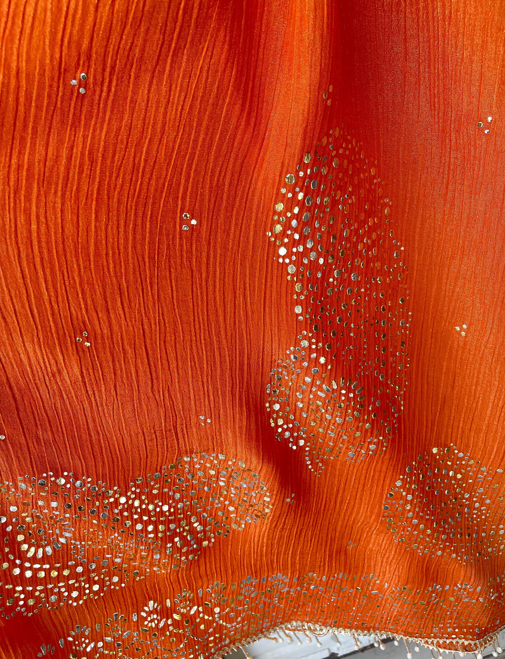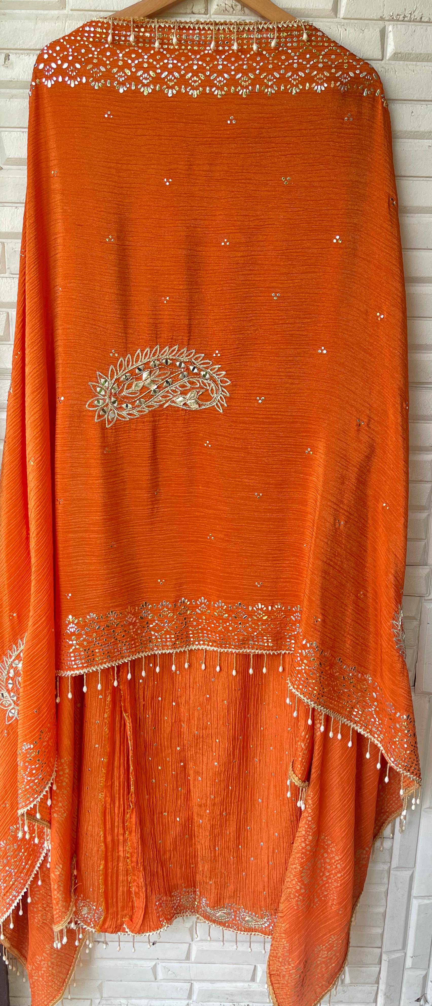 π pure crushed shimmer tissue fabric dupatta with gotta patti mirror zari kutdanna and mukaish embroidery