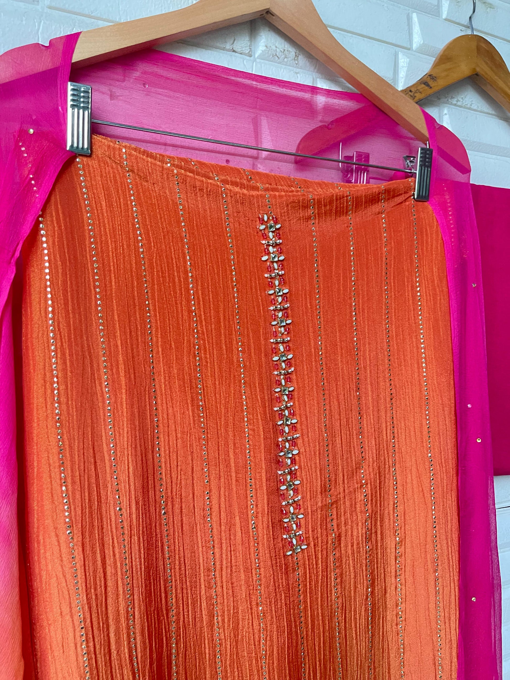 π pure chiffon shaded fabric dupatta with swarowski highlighting and crotia pearl hanging border lace