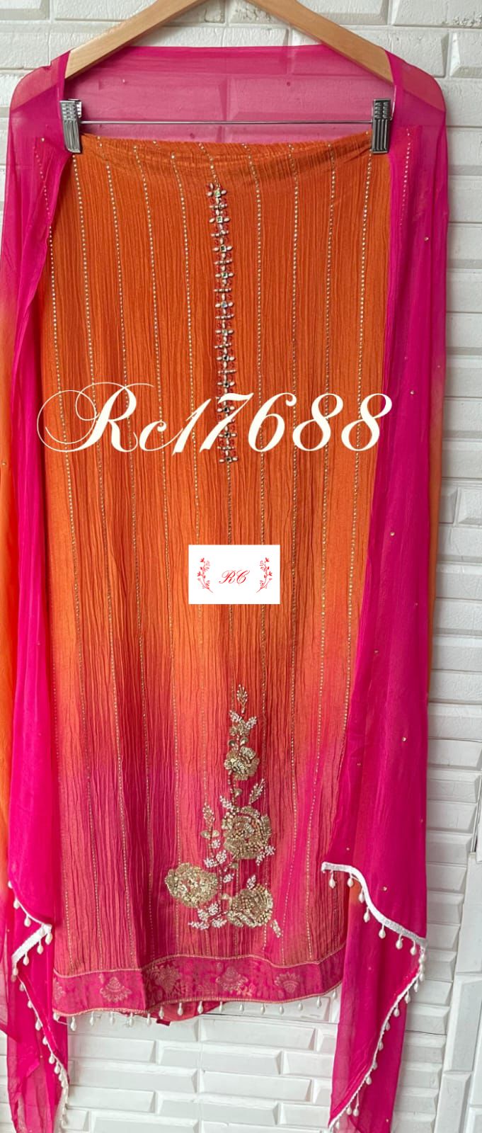 Crushed shimmer tissue unstitched ladies suit Rc17688