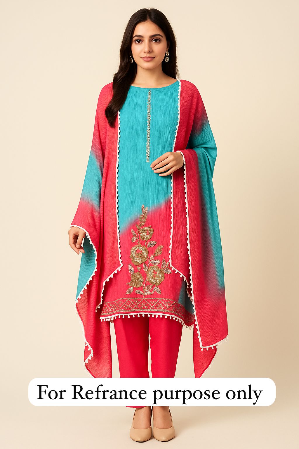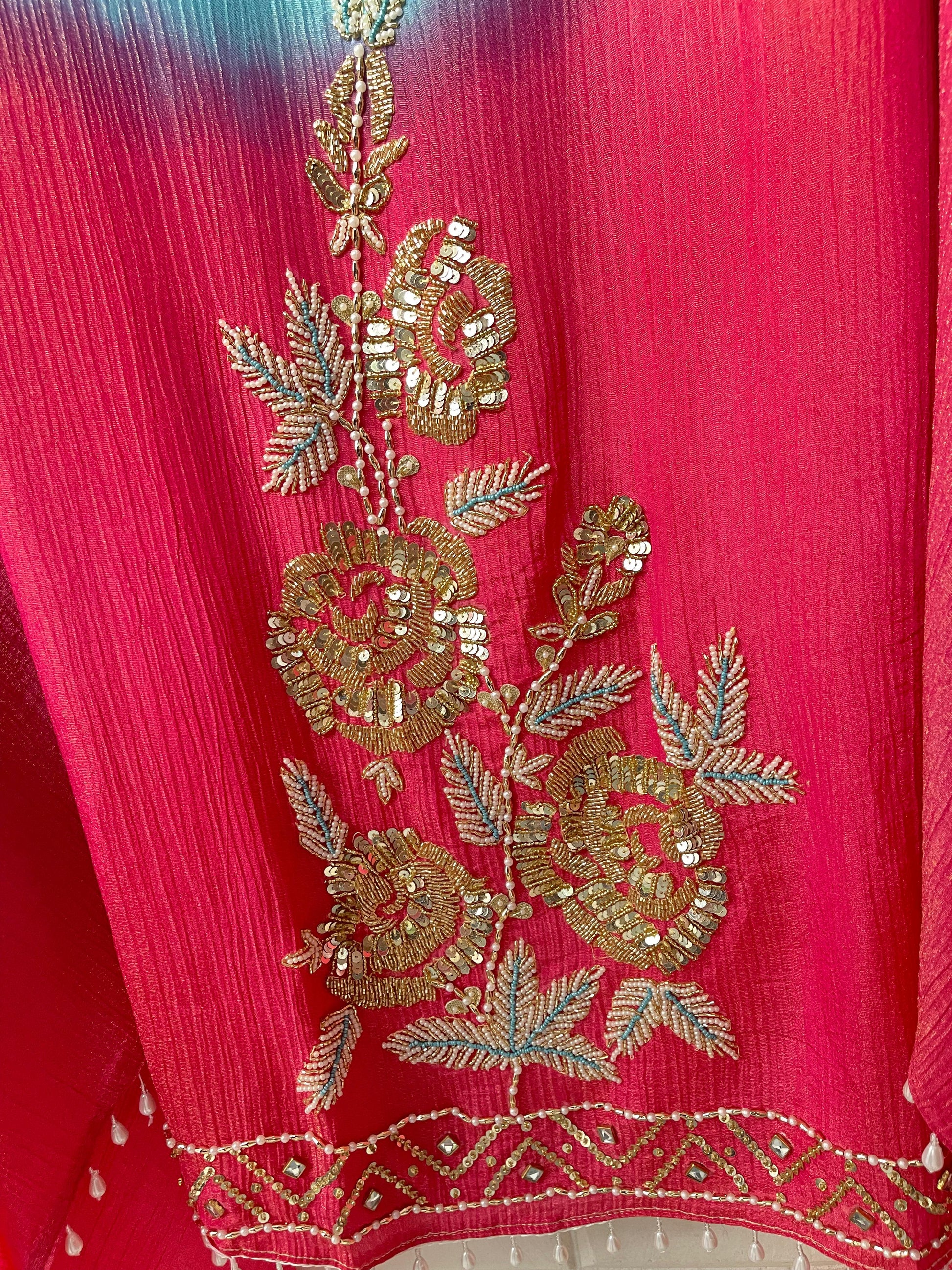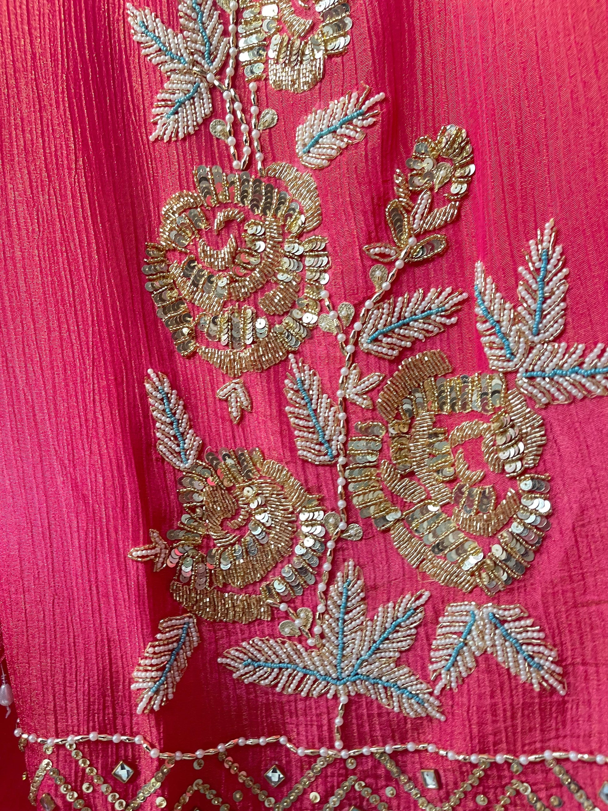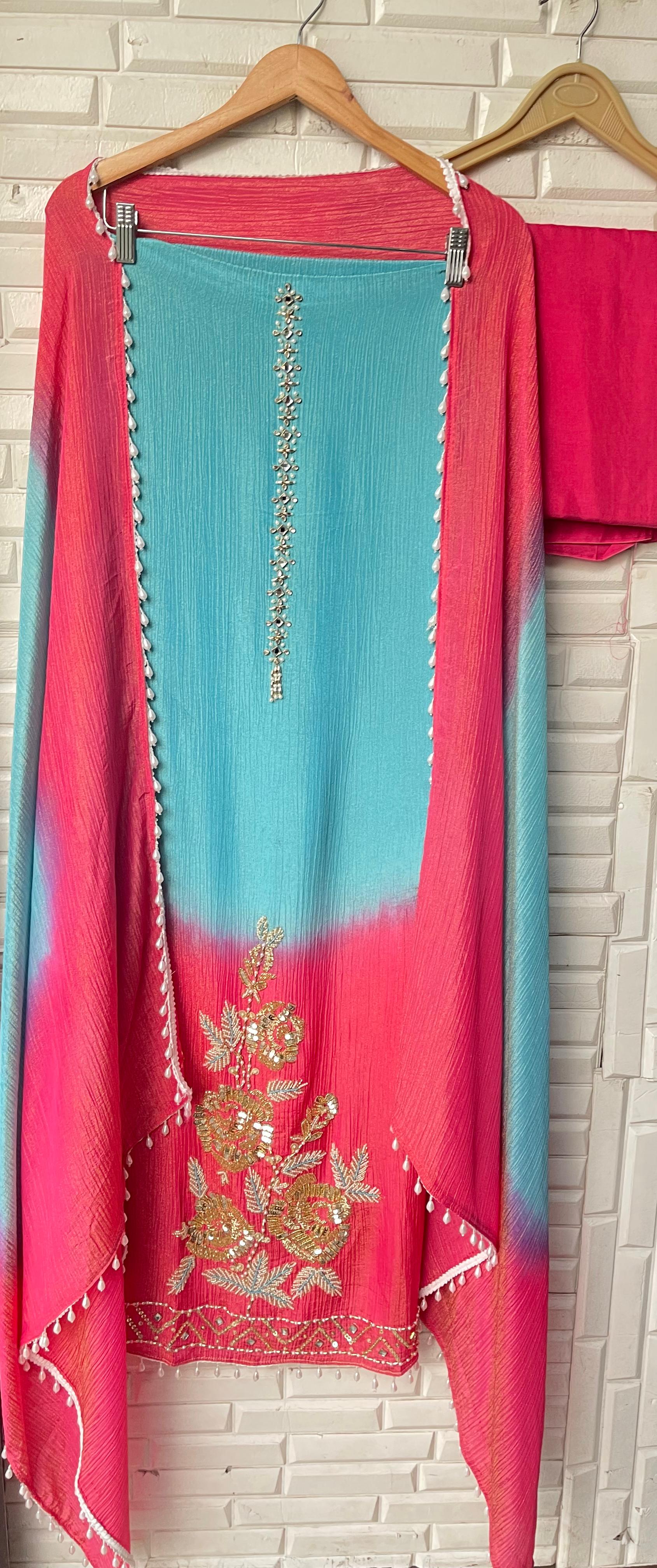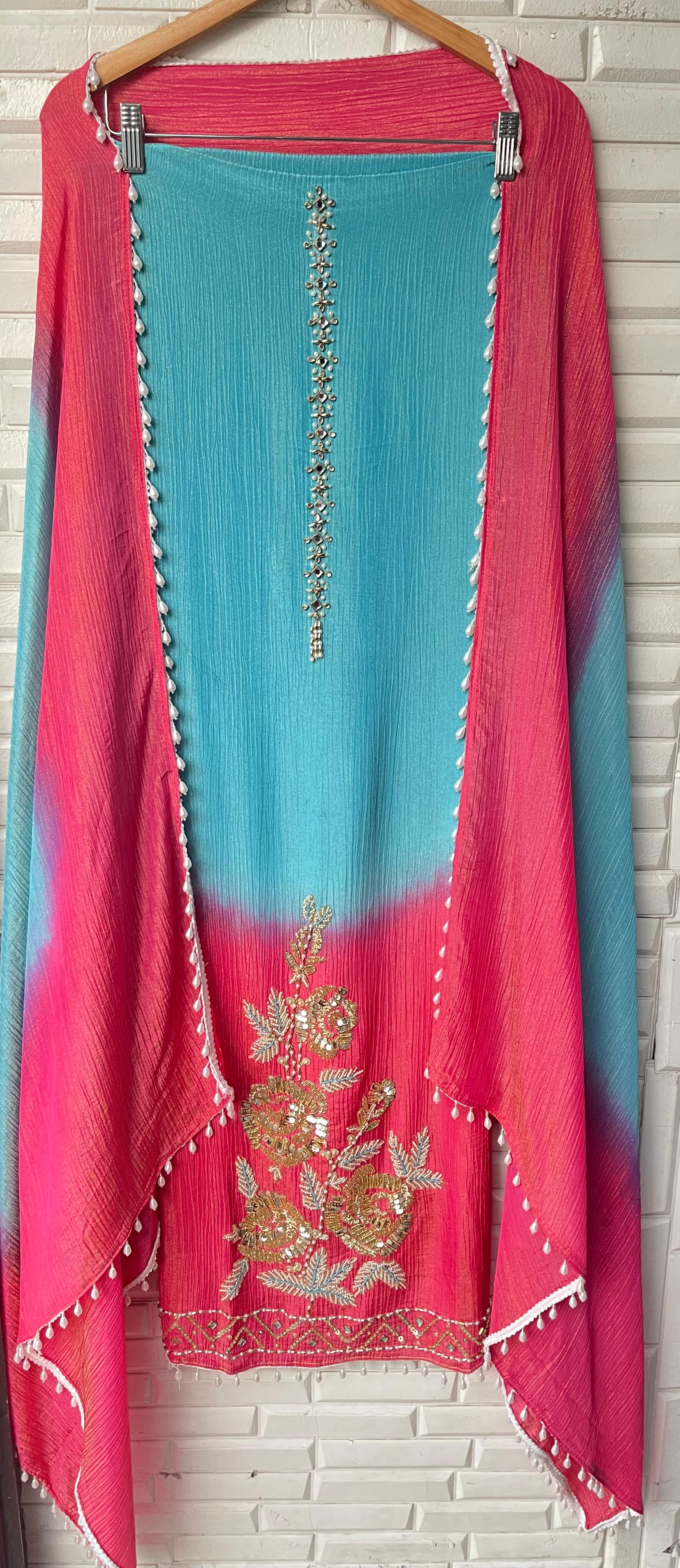 😊 crushed shimmer tissue double shaded fabric unstitched shirt with kundan kutdanna sequence pearl zari swarowski embroidery