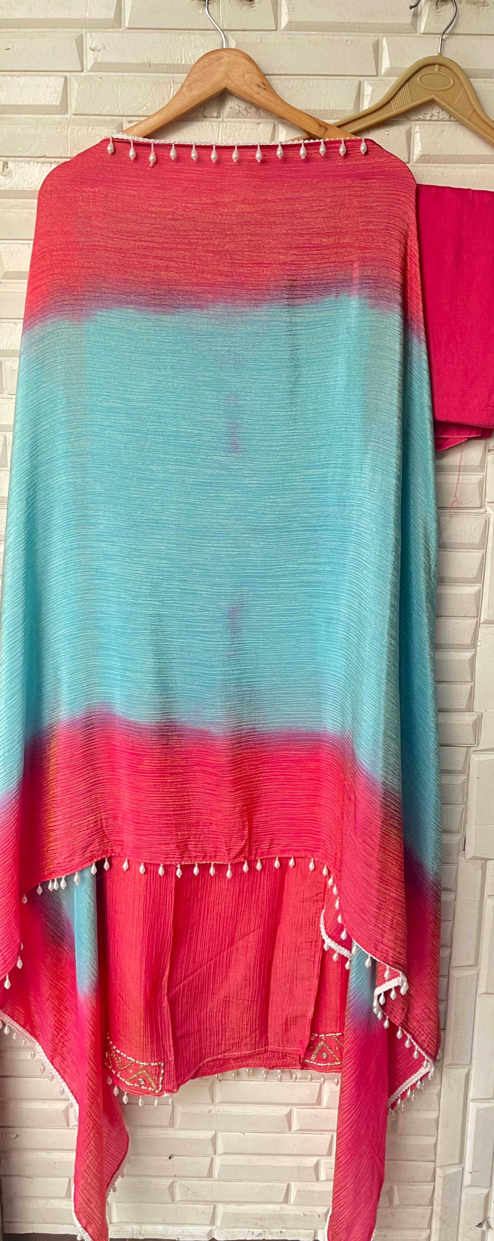 😊 crushed shimmer tissue shaded fabric dupatta with pearl hanging border lace