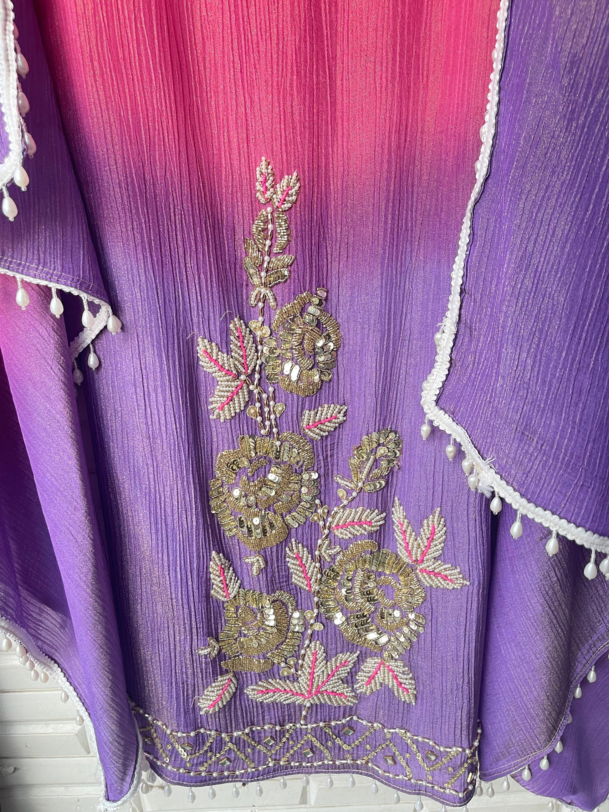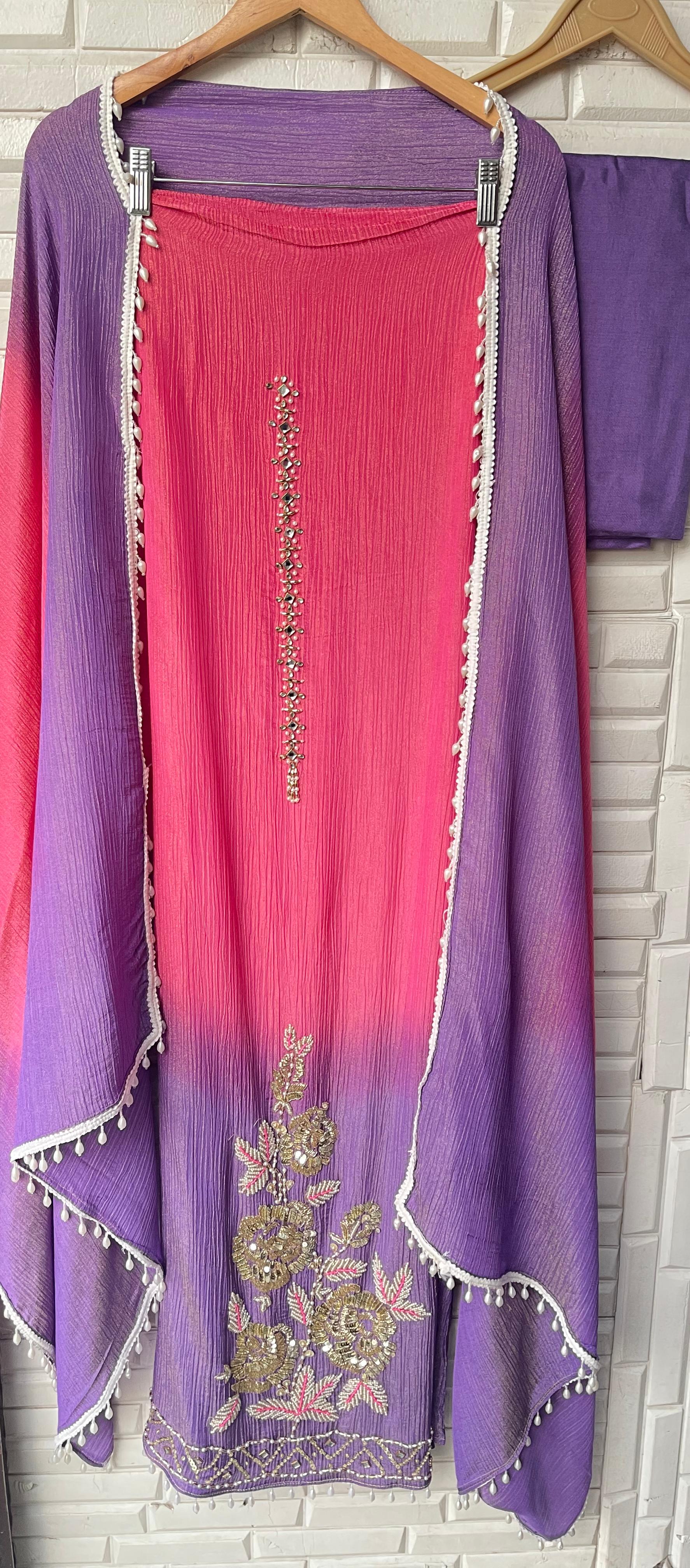 😊 crushed shimmer tissue double shaded fabric unstitched shirt with kundan kutdanna sequence pearl zari swarowski embroidery