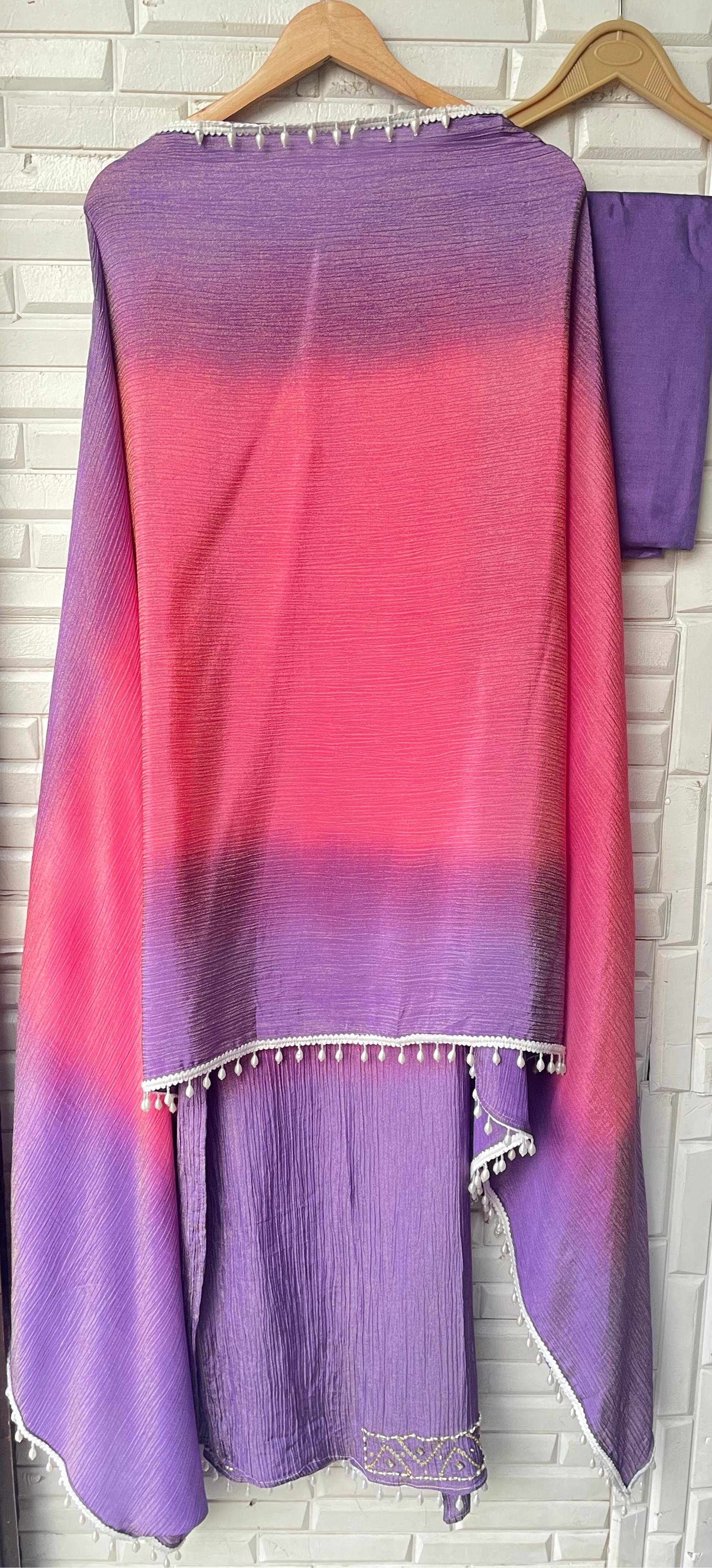 😊 crushed shimmer tissue shaded fabric dupatta with pearl hanging border lace