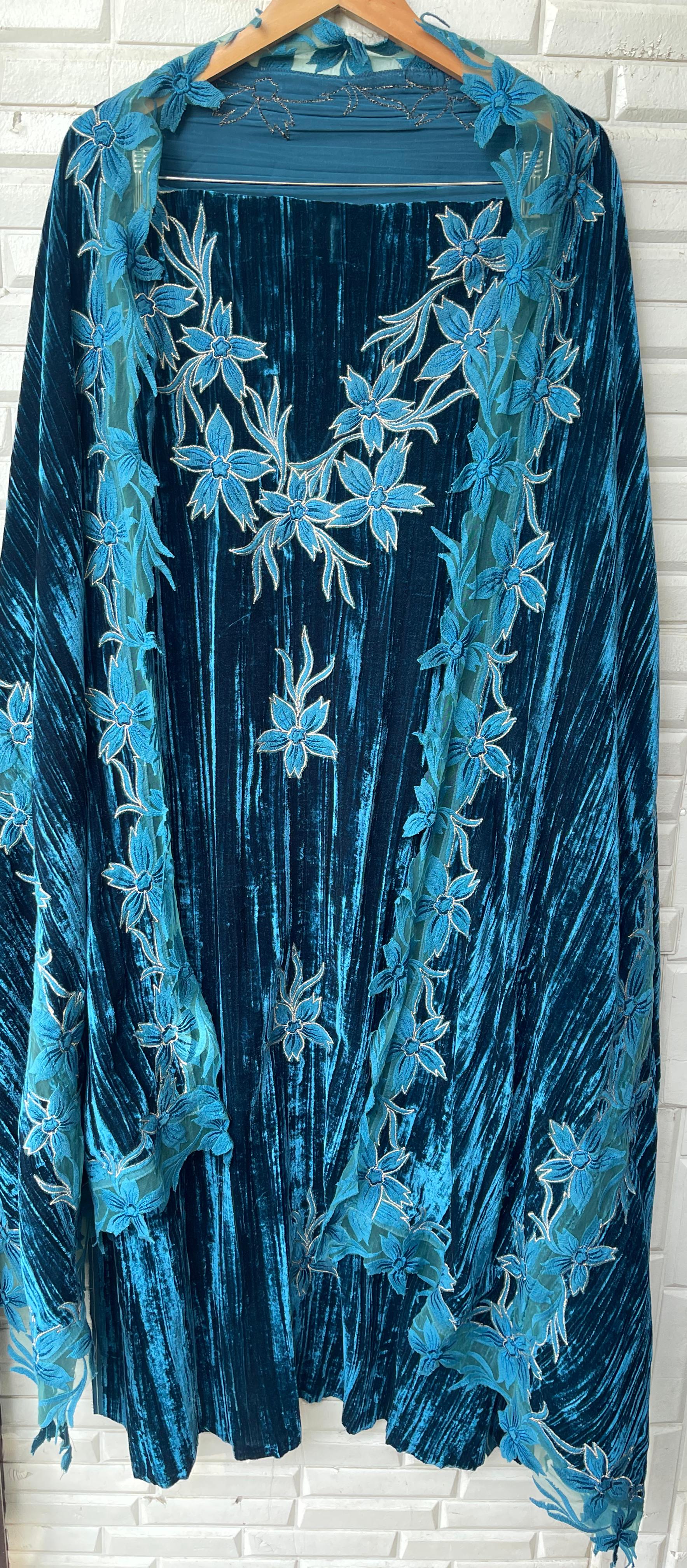 😊 pure crushed velvet fabric dupatta with zari highlighting and scalping and the most gorgeous appliqué work insertions