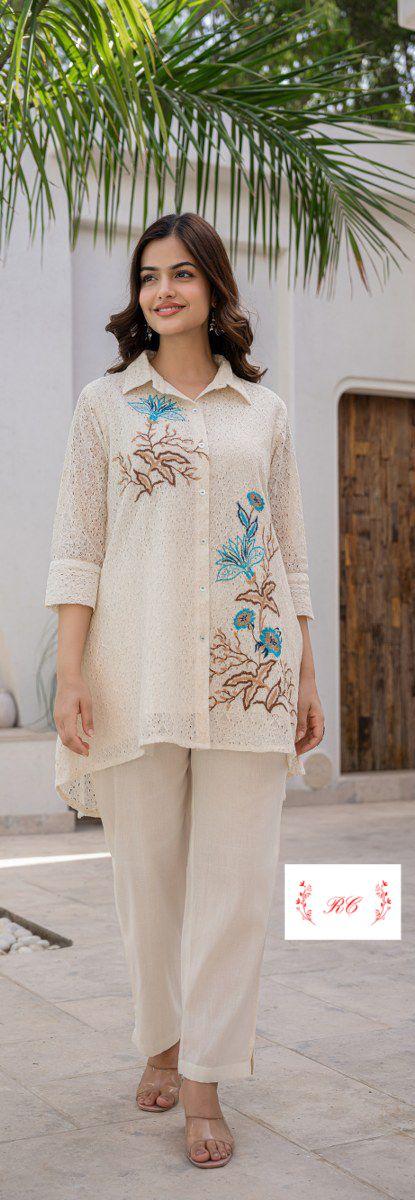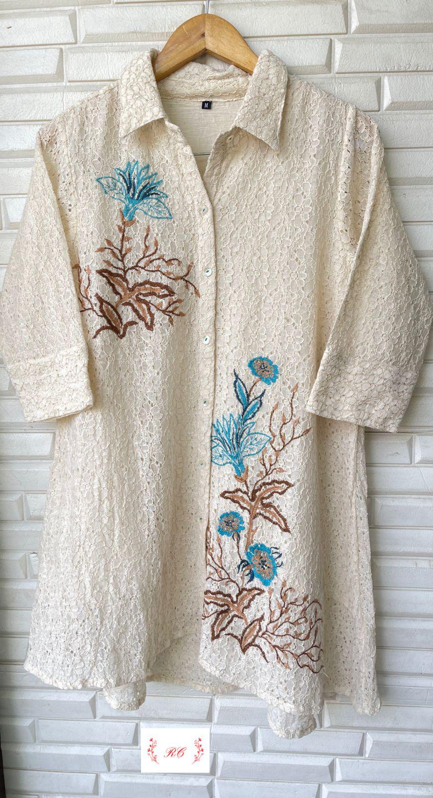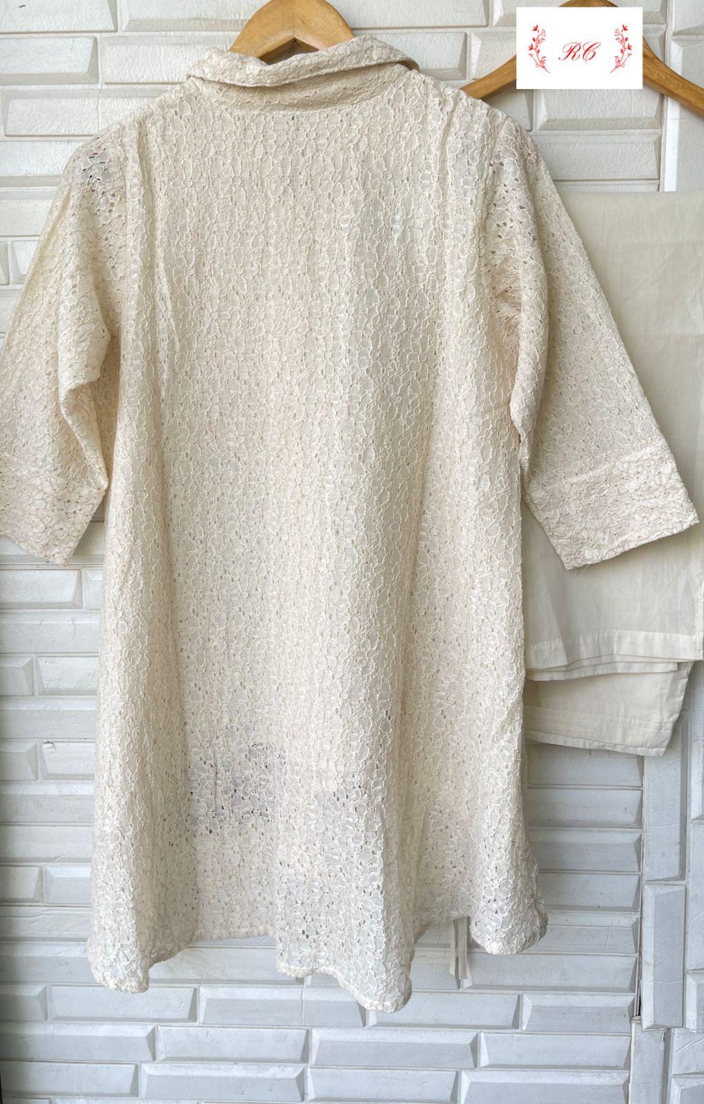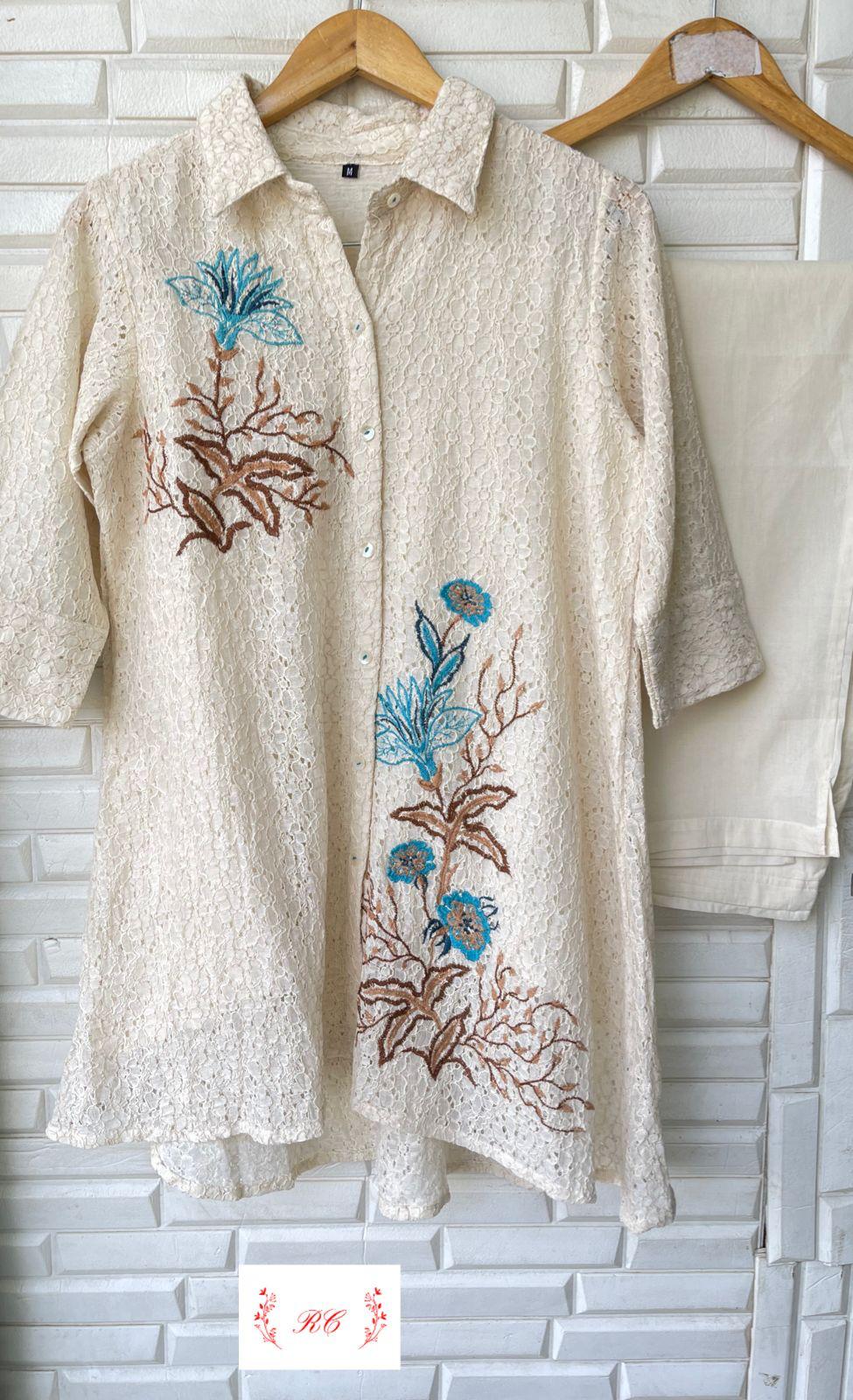 😊 designer crotia lace fabric stitched coord set shirt with attached lining and resham embroidery
