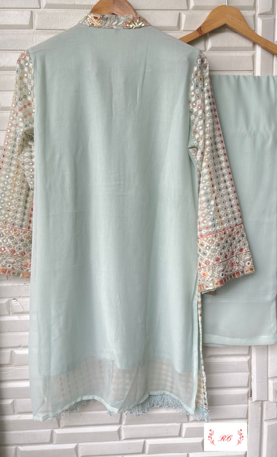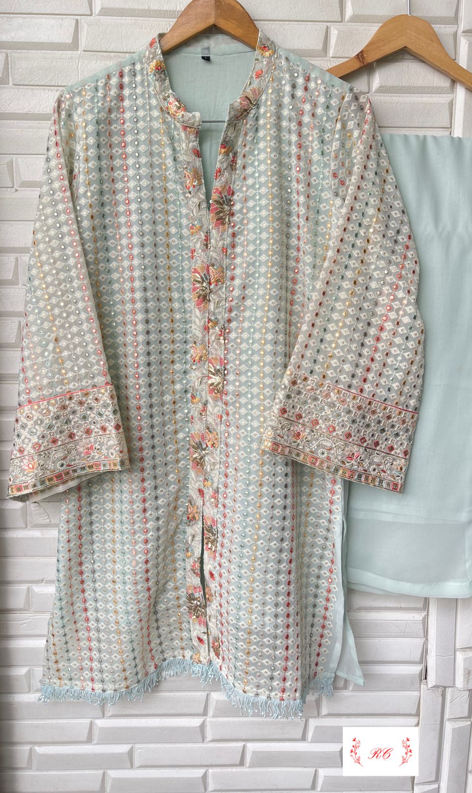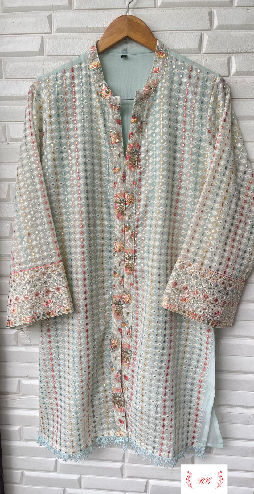 😊 Georgette fabric stitched coord set shirt with gotta work sequence resham embroidery and attached lining