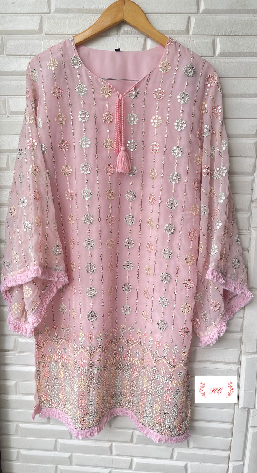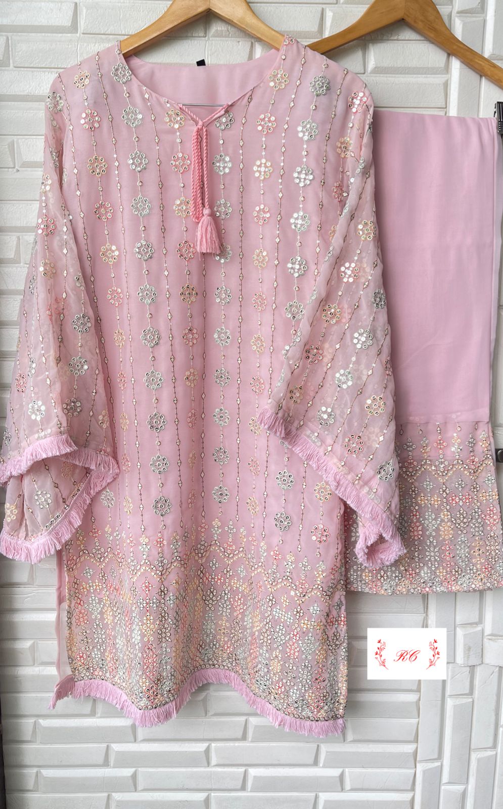 😊Georgette fully embroidered patri Resham sequins work with attached lining