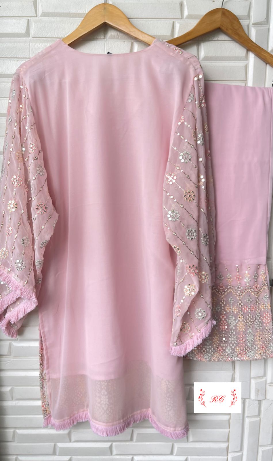 😊Georgette Resham patri sequins embroidered palazzo with attached lining