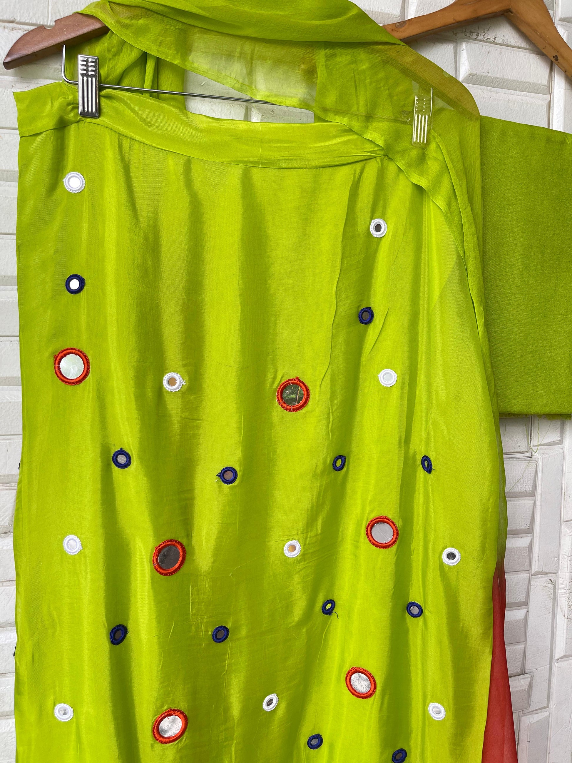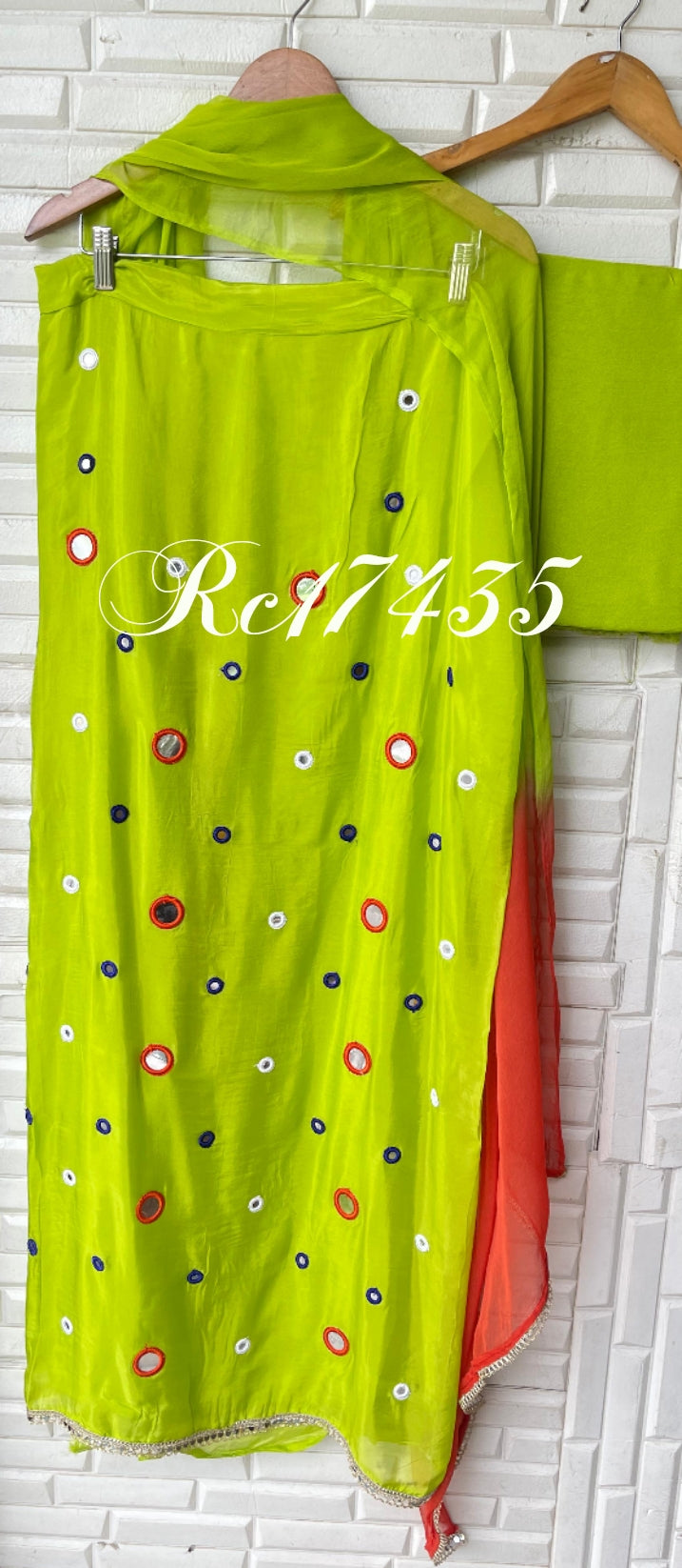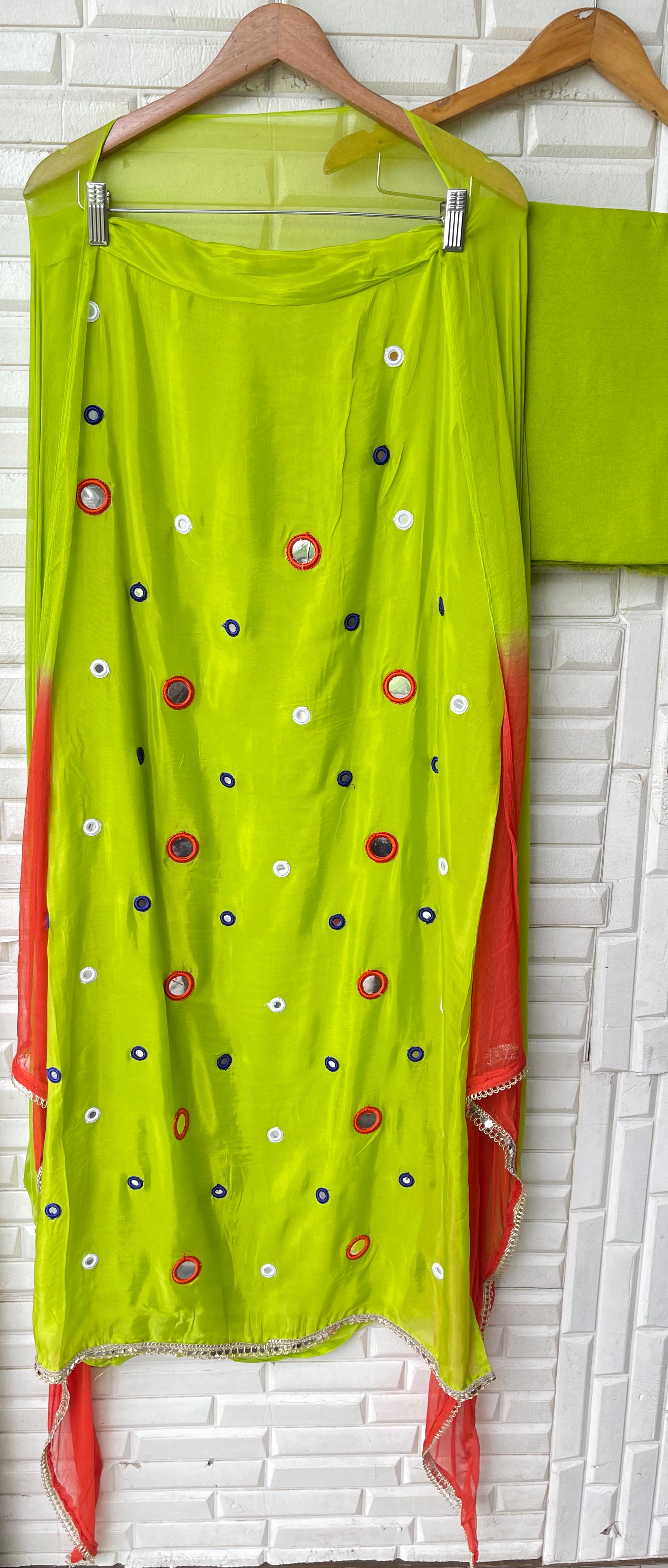 😊 glass organza fabric unstitched shirt with mirror patri work resham embroidery