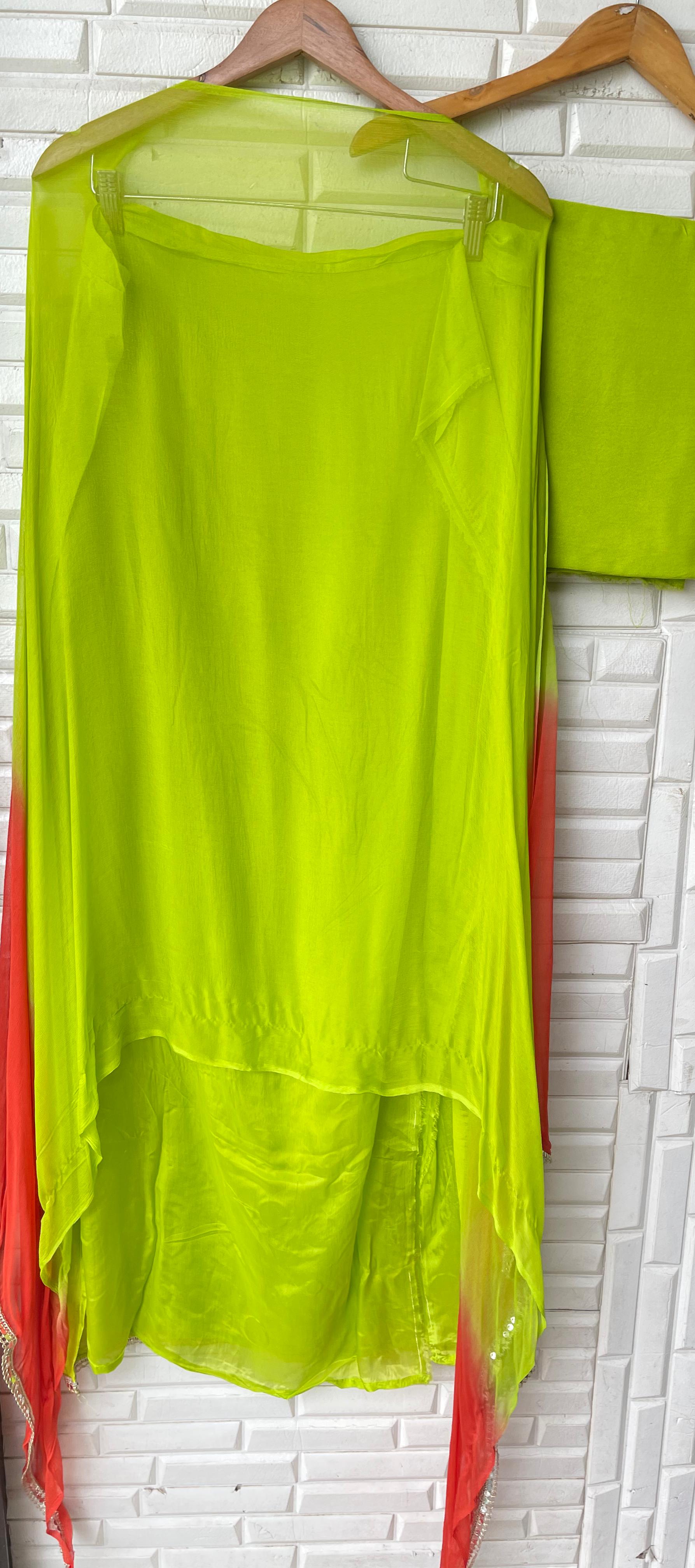 😊 pure chiffon shaded fabric dupatta with zari border lace