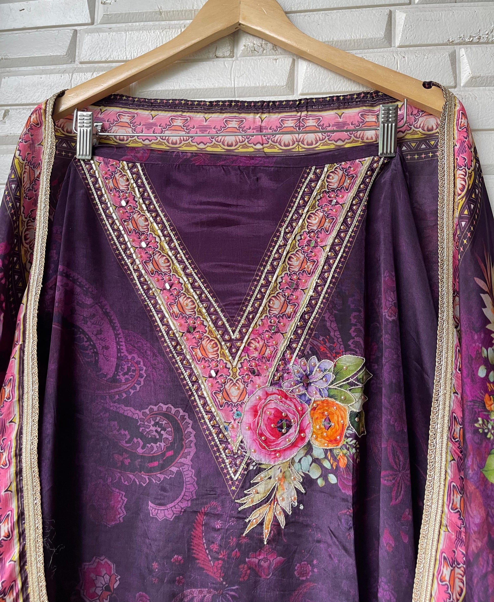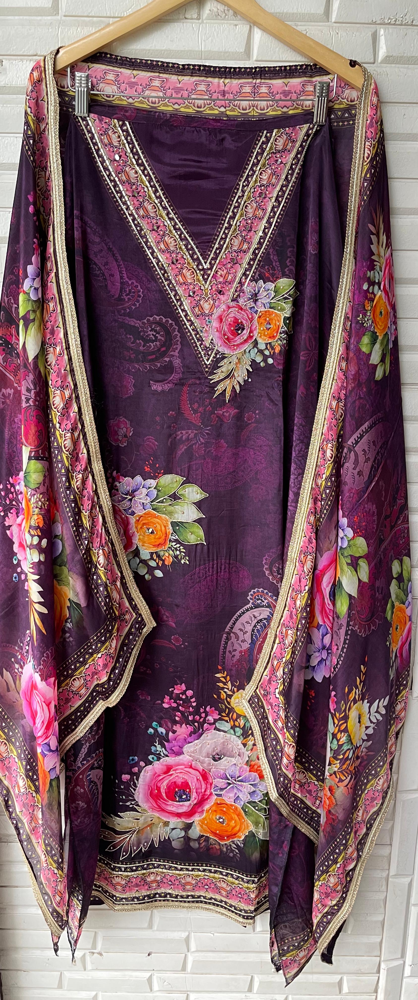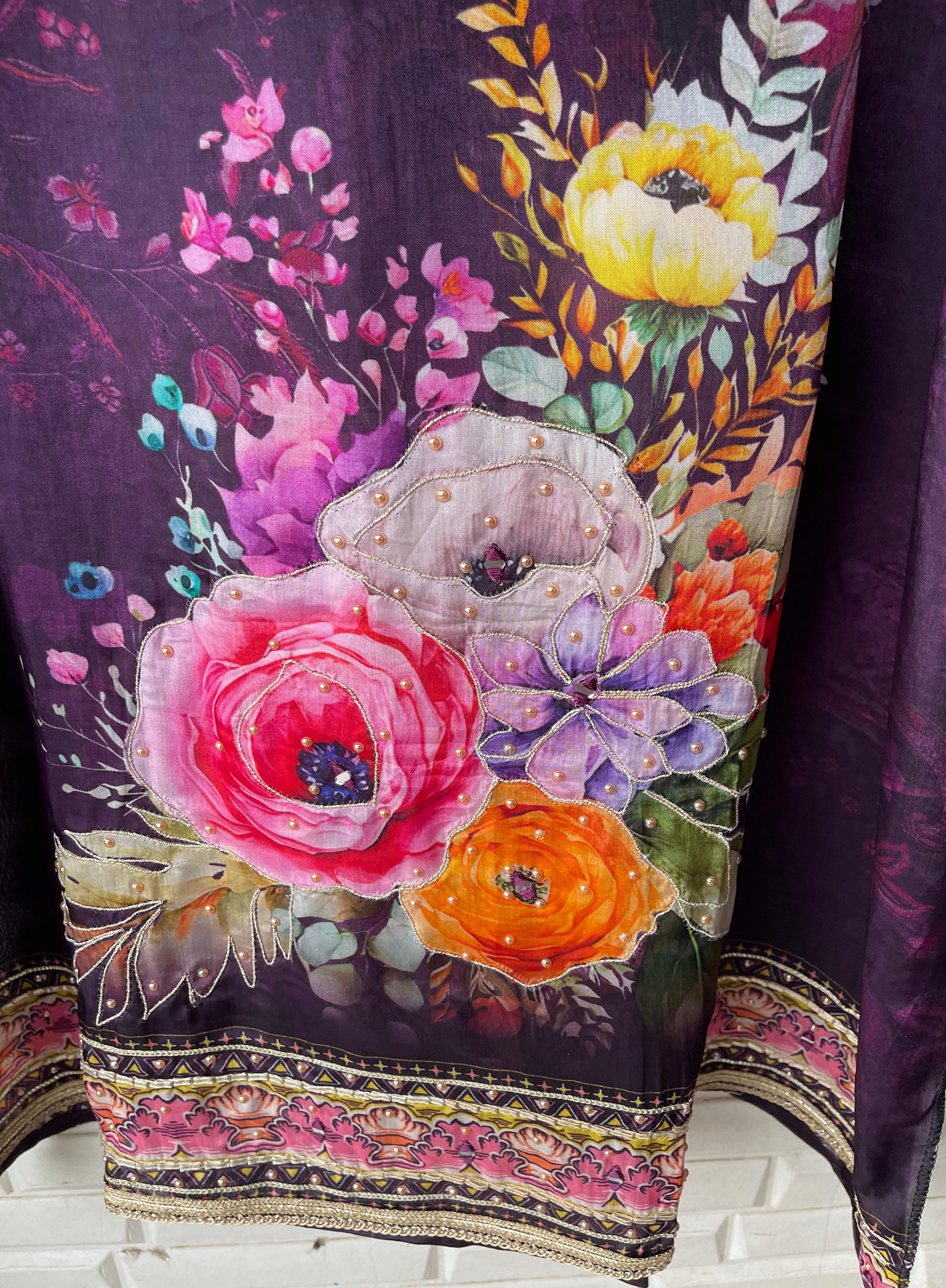 😊 glass organza printed fabric unstitched shirt with mirror work resham pearl zari embroidery