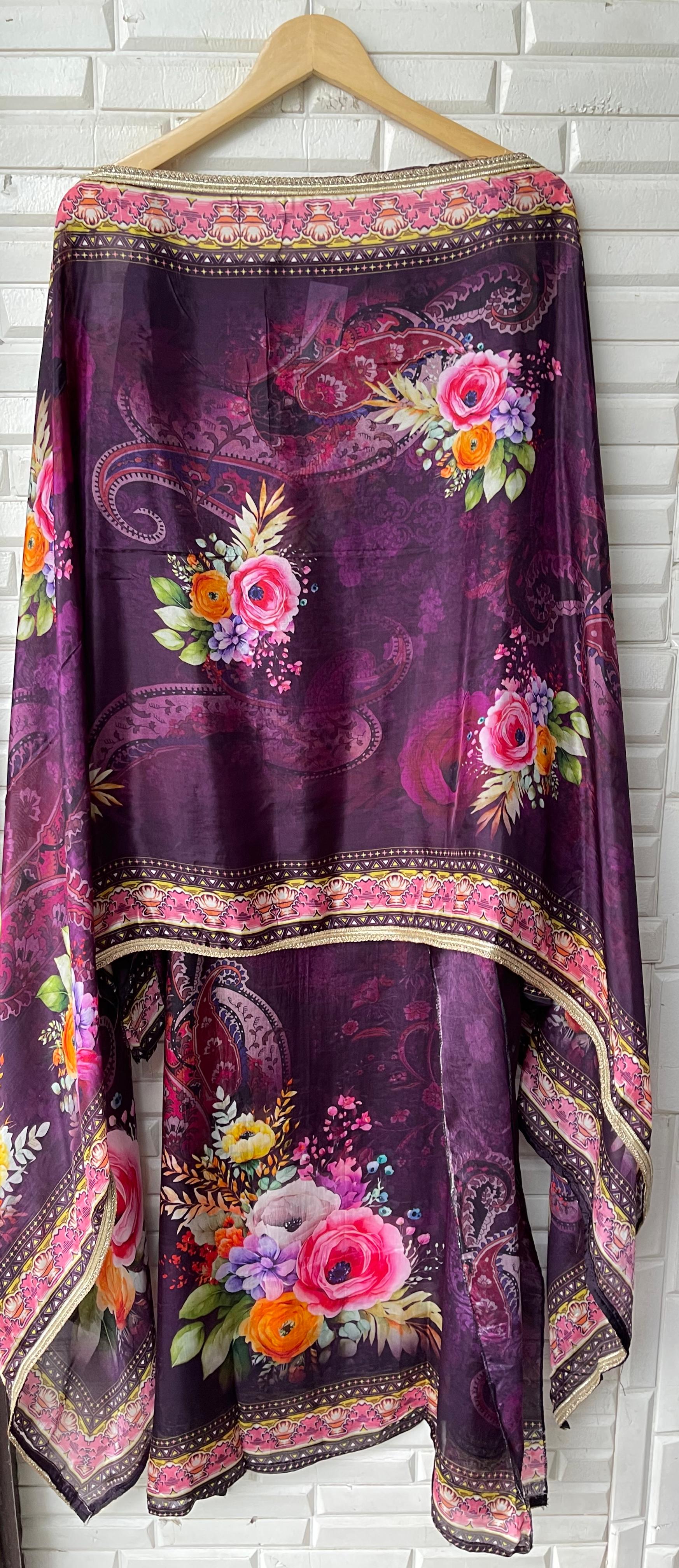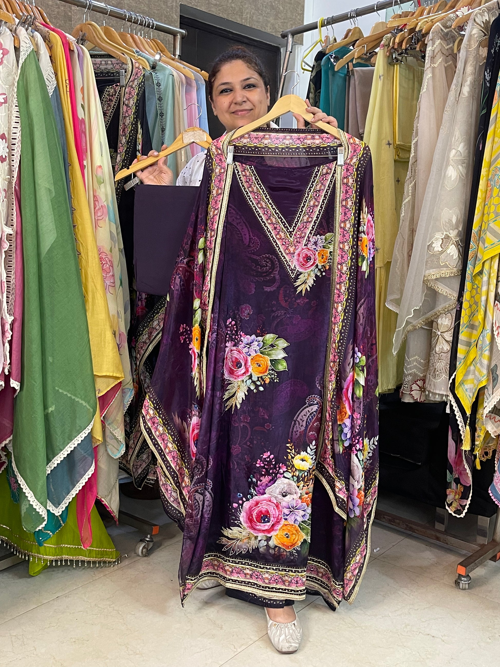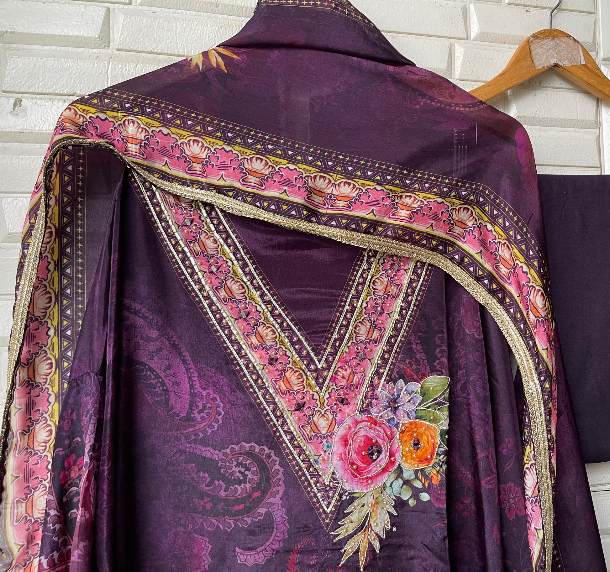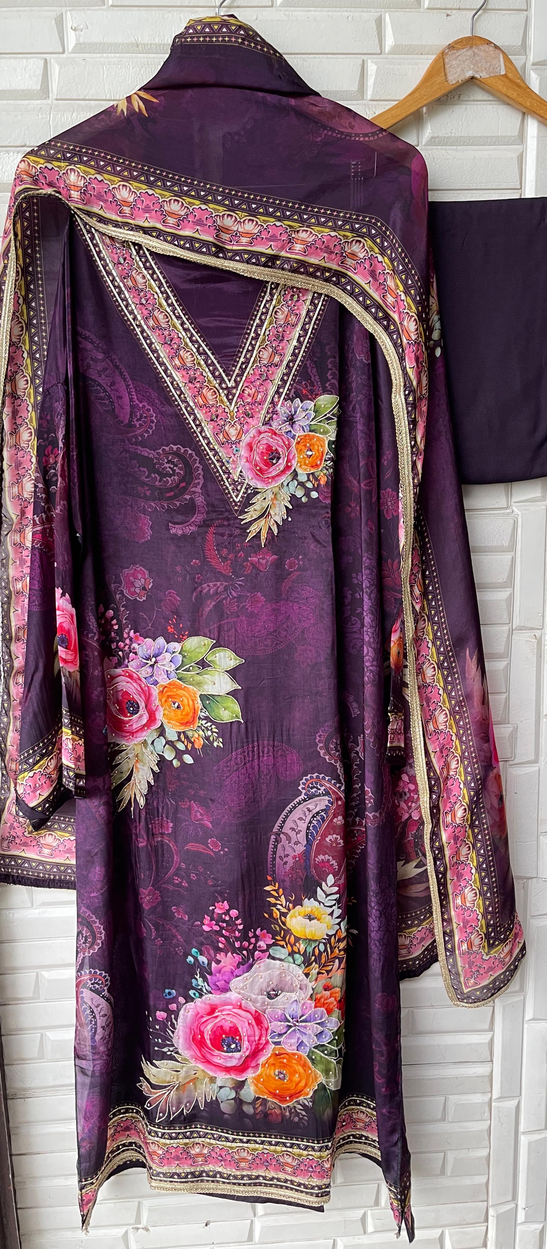 😊 glass organza printed fabric unstitched shirt with mirror work resham pearl zari embroidery