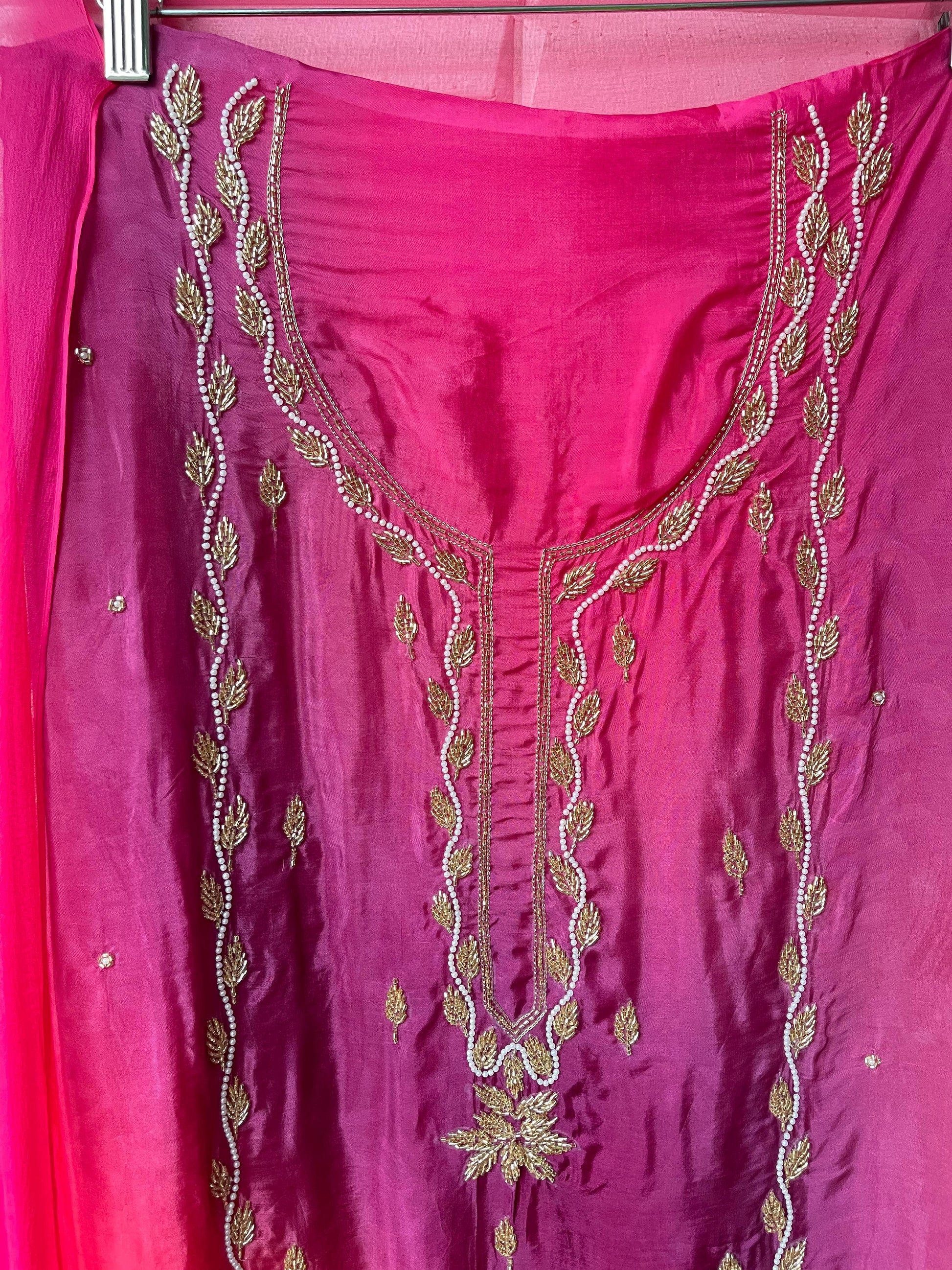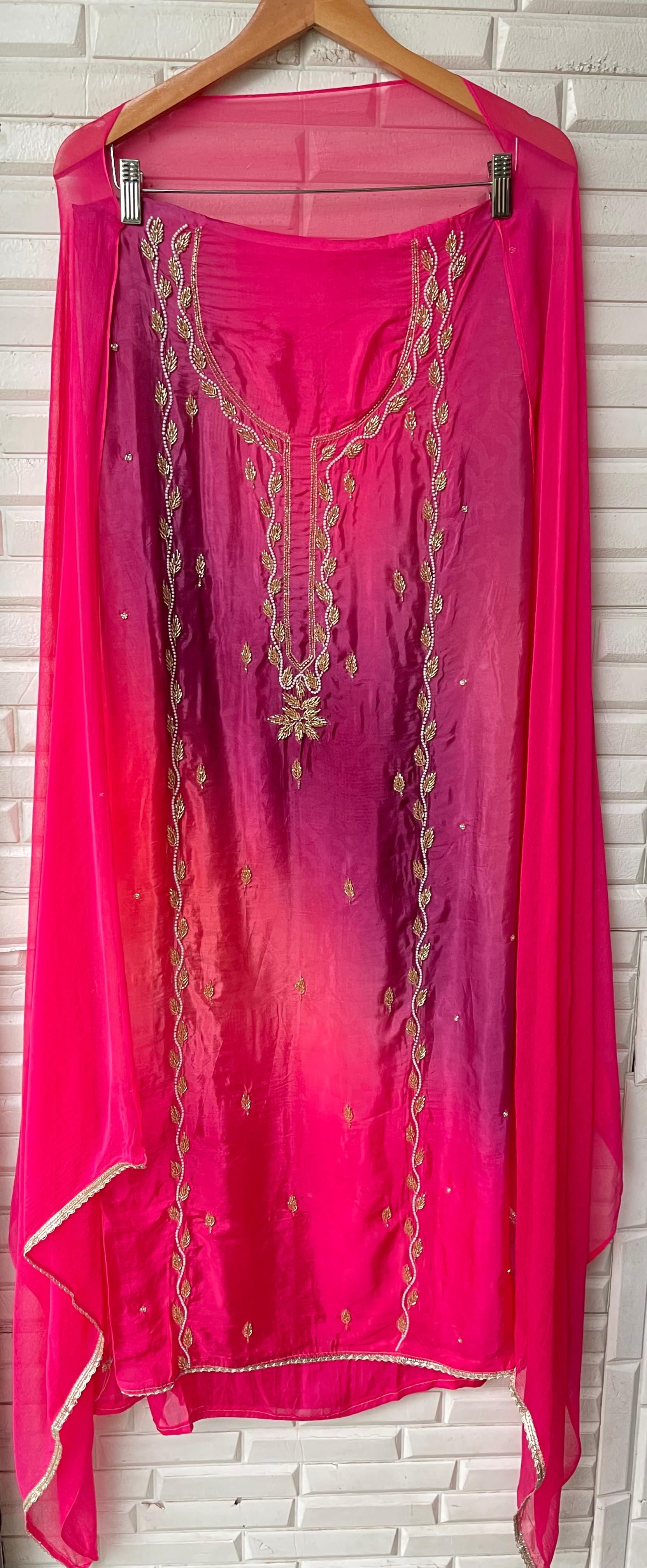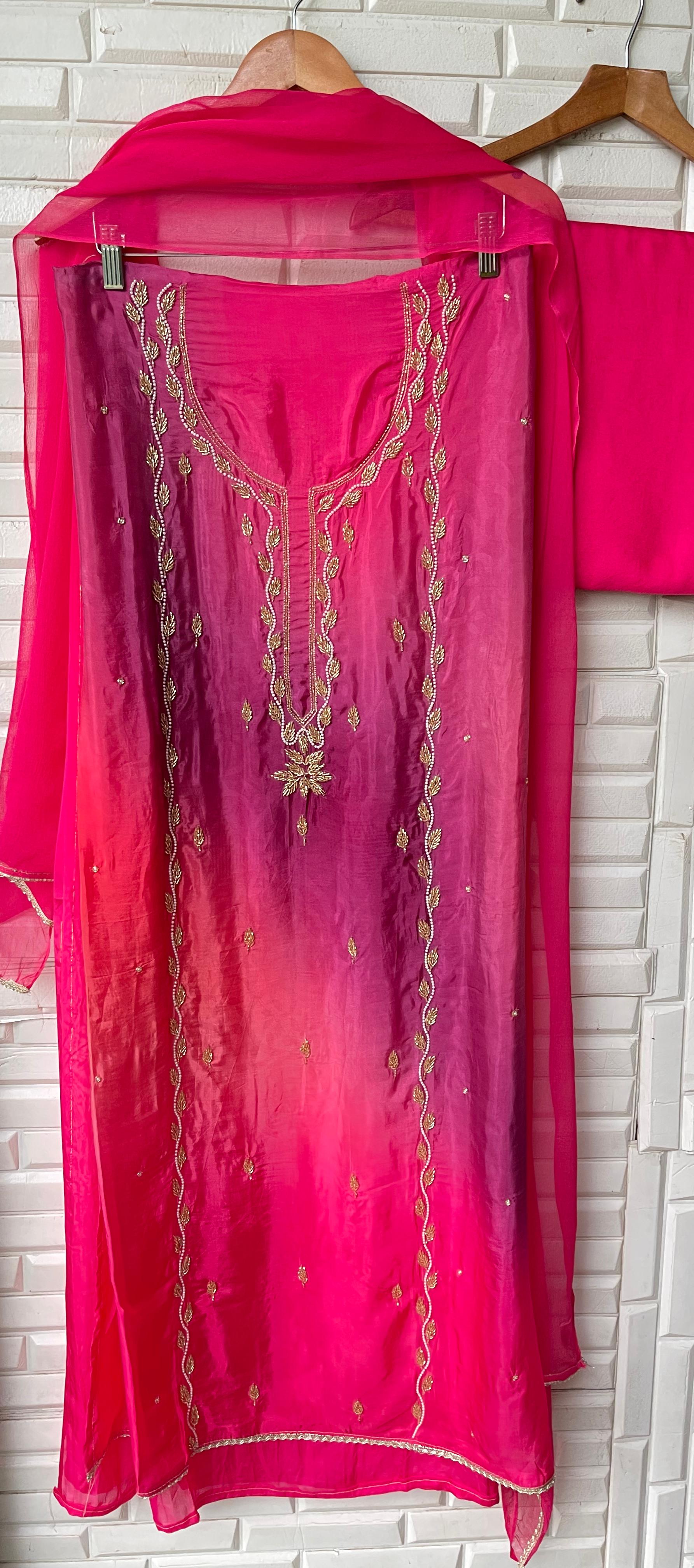 😊 glass organza shaded fabric unstitched shirt with kutdanna pearl zari embroidery