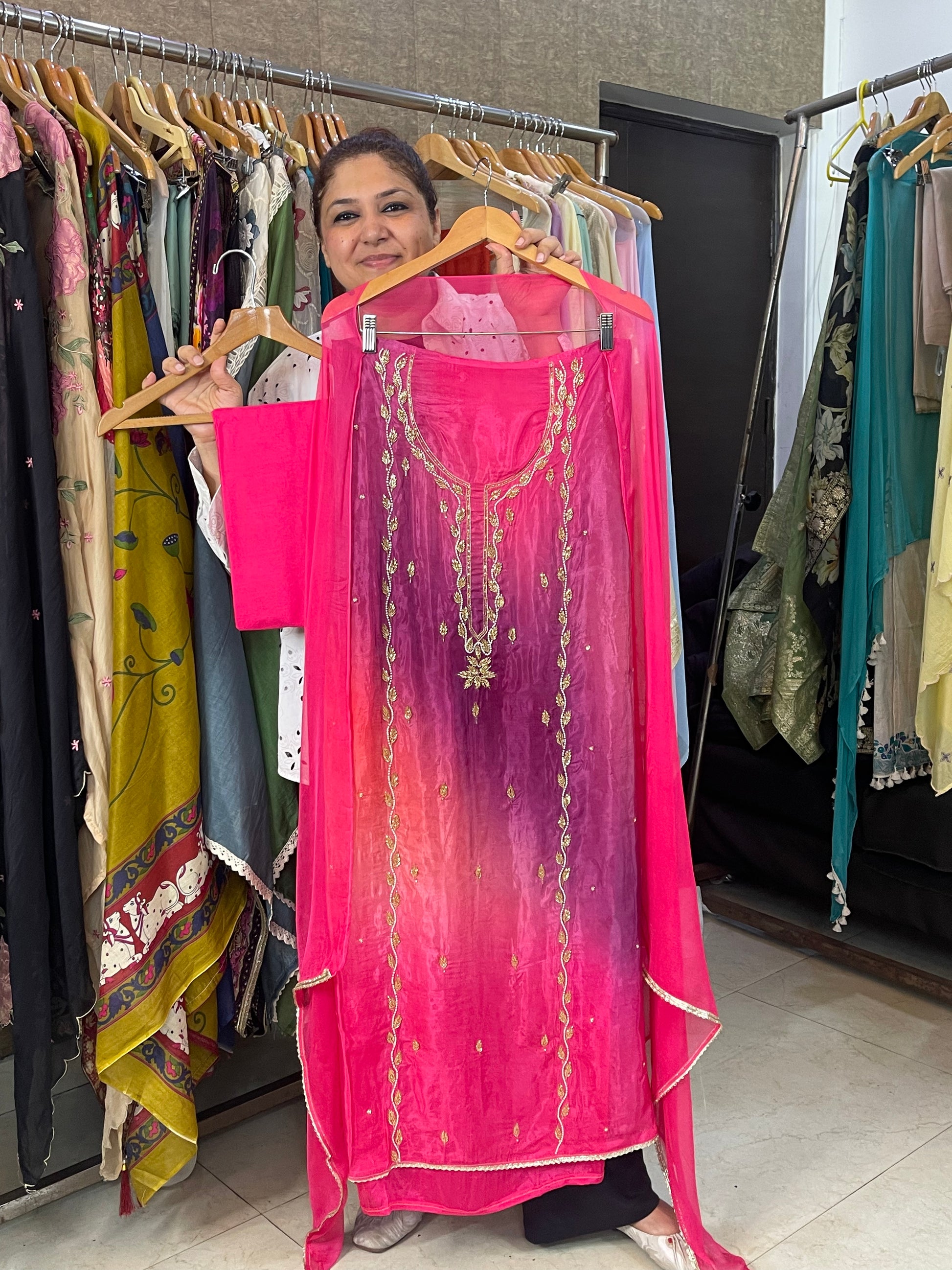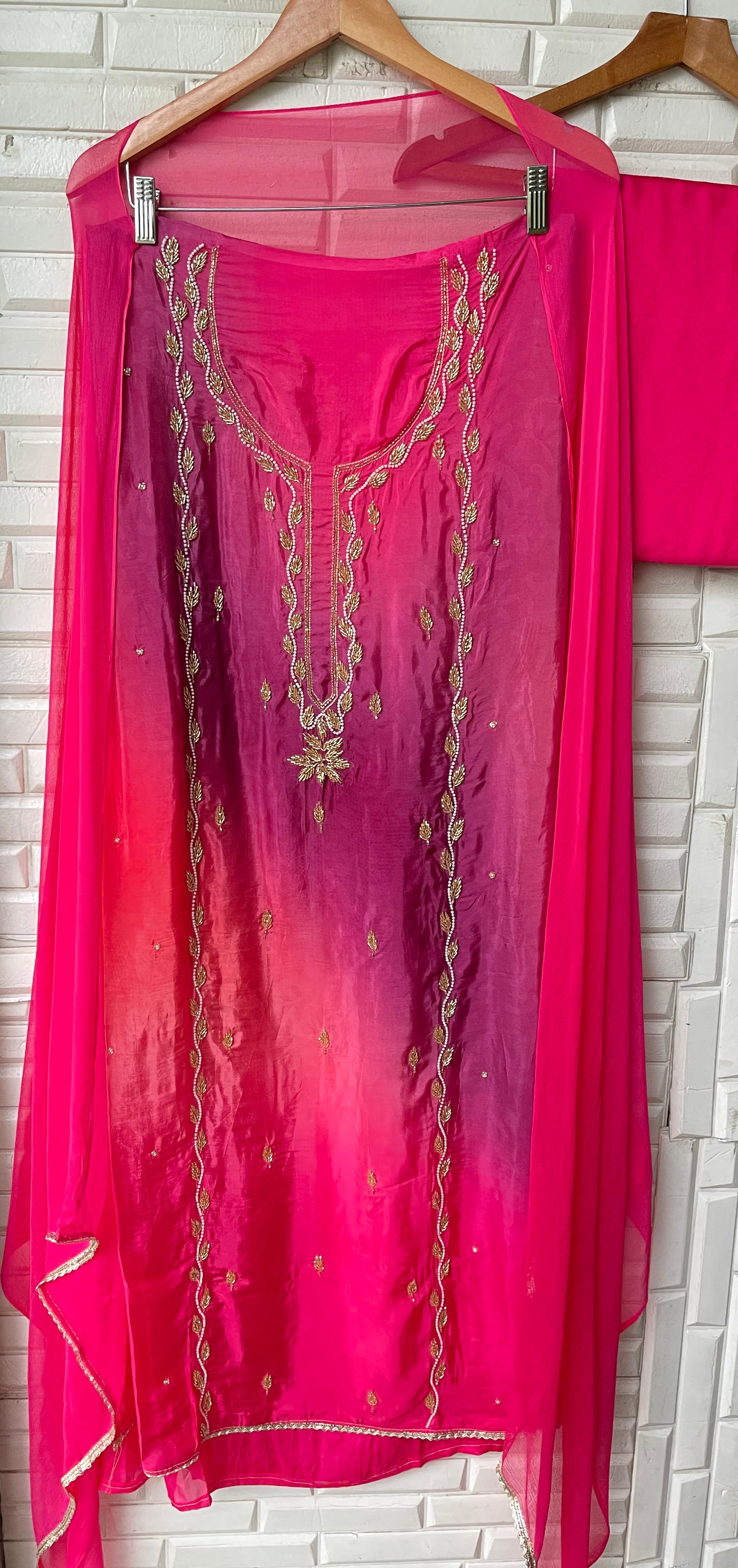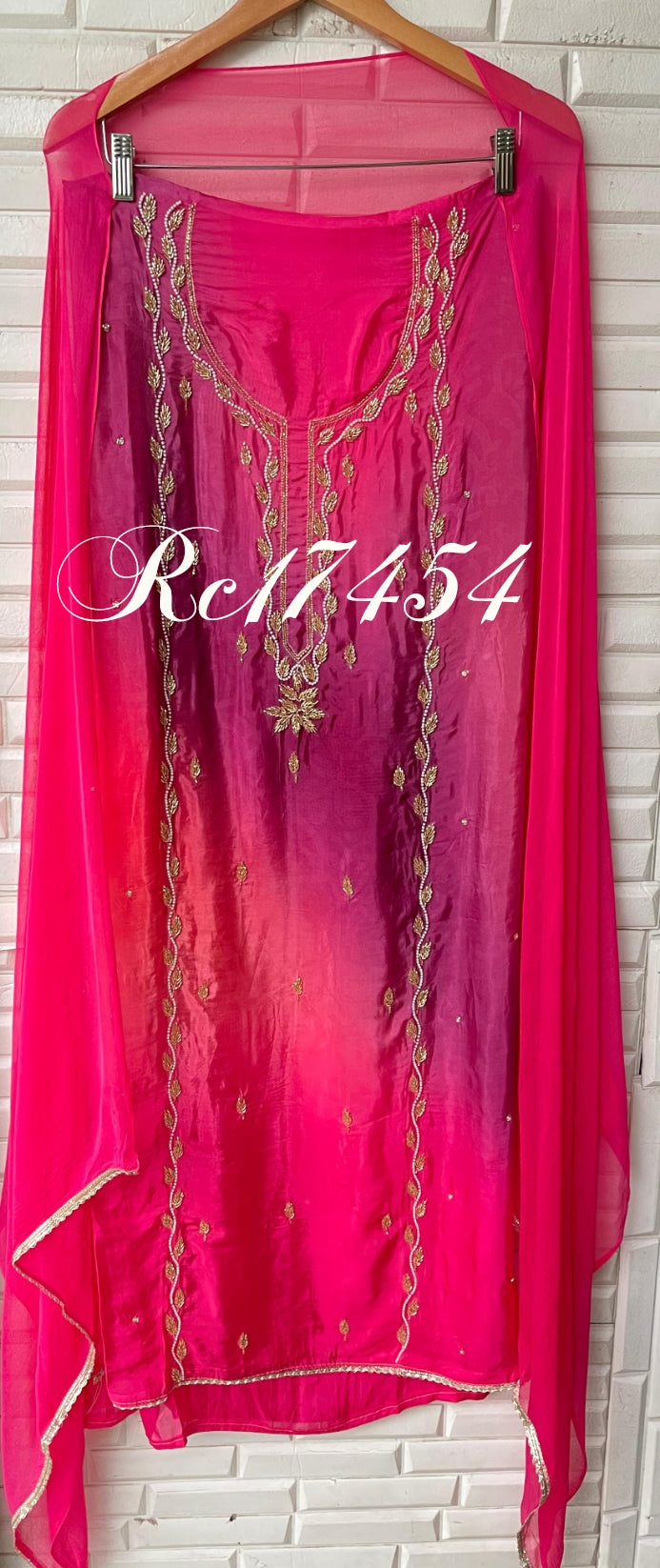 😊 glass organza shaded fabric unstitched shirt with kutdanna pearl zari embroidery