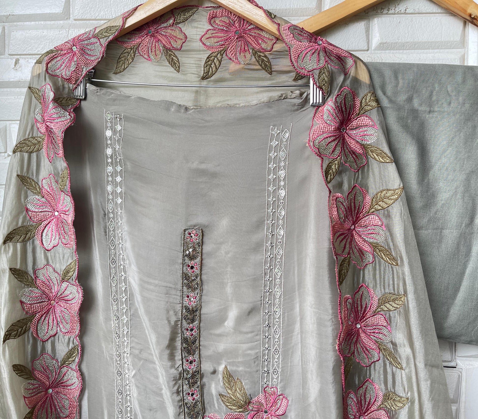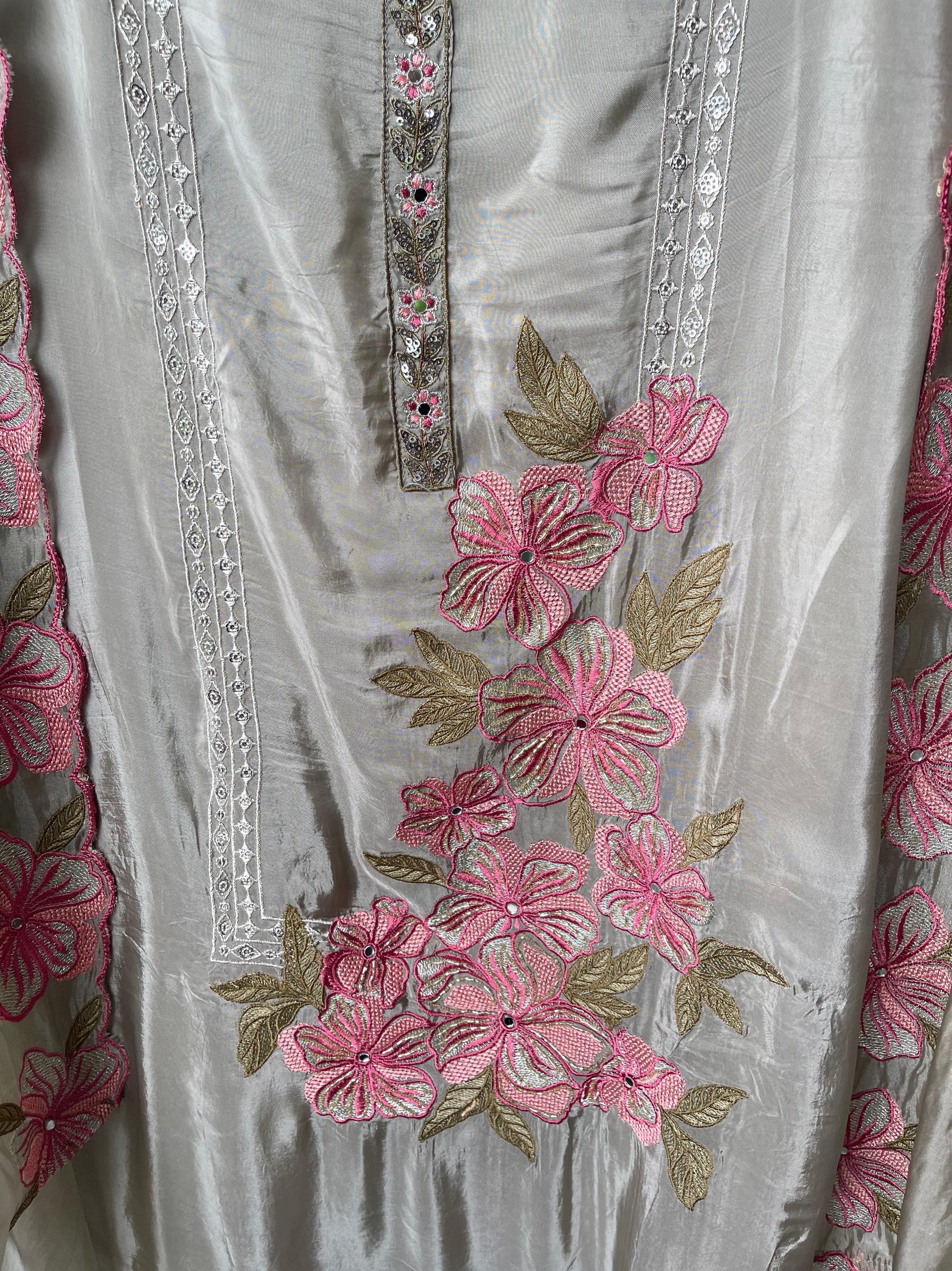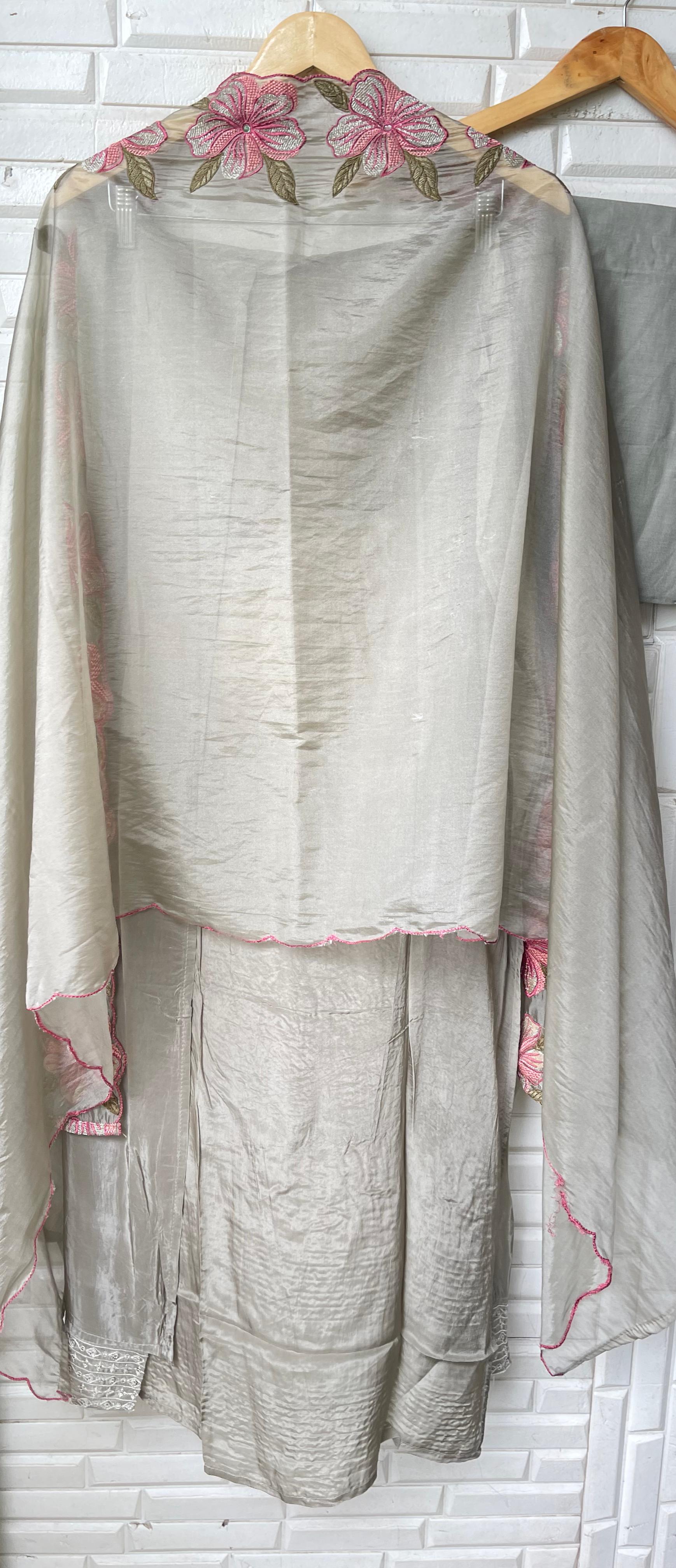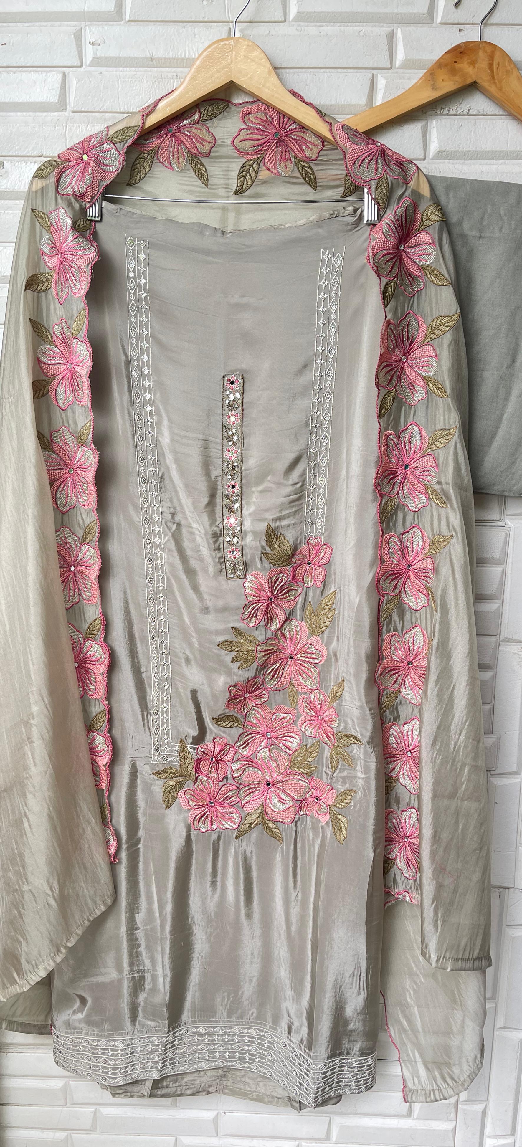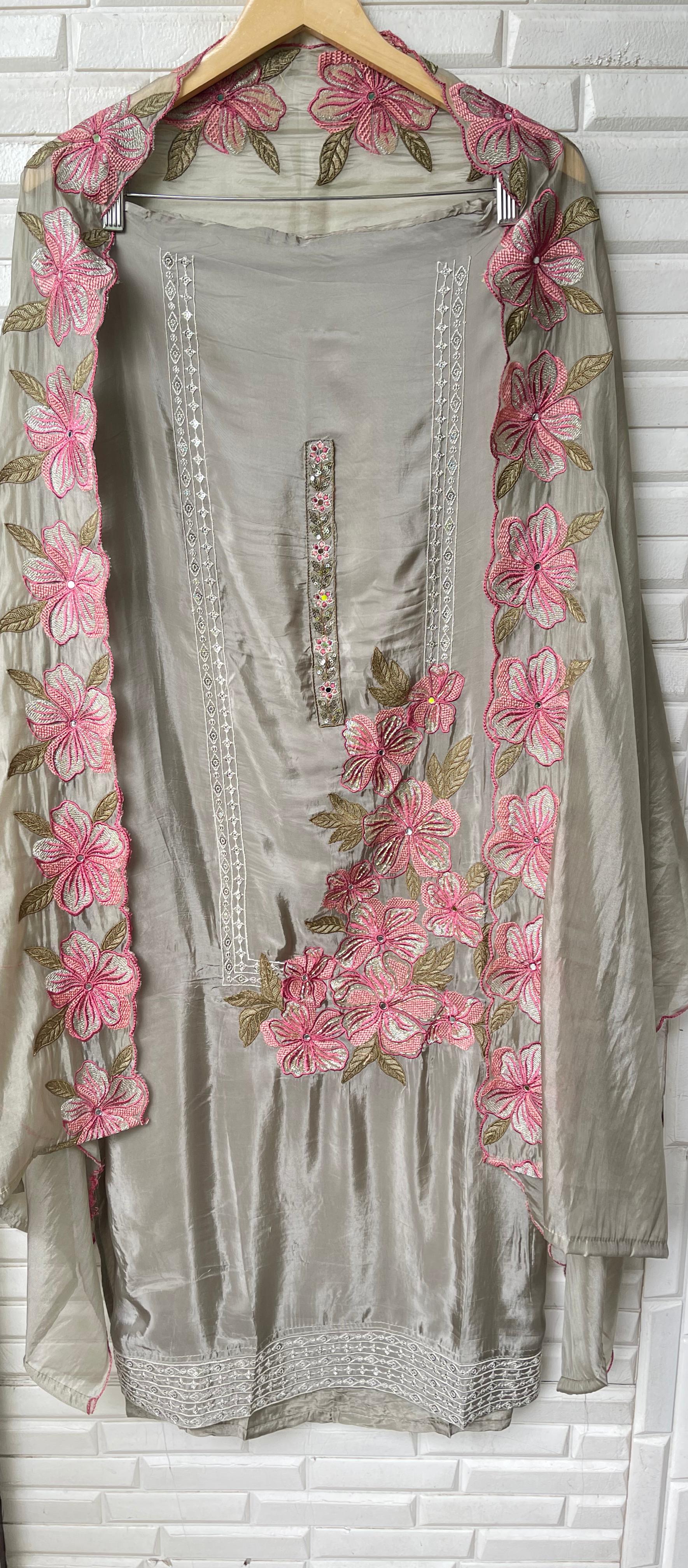 😊 glass organza fabric unstitched shirt with resham sequence kutdanna embroidery