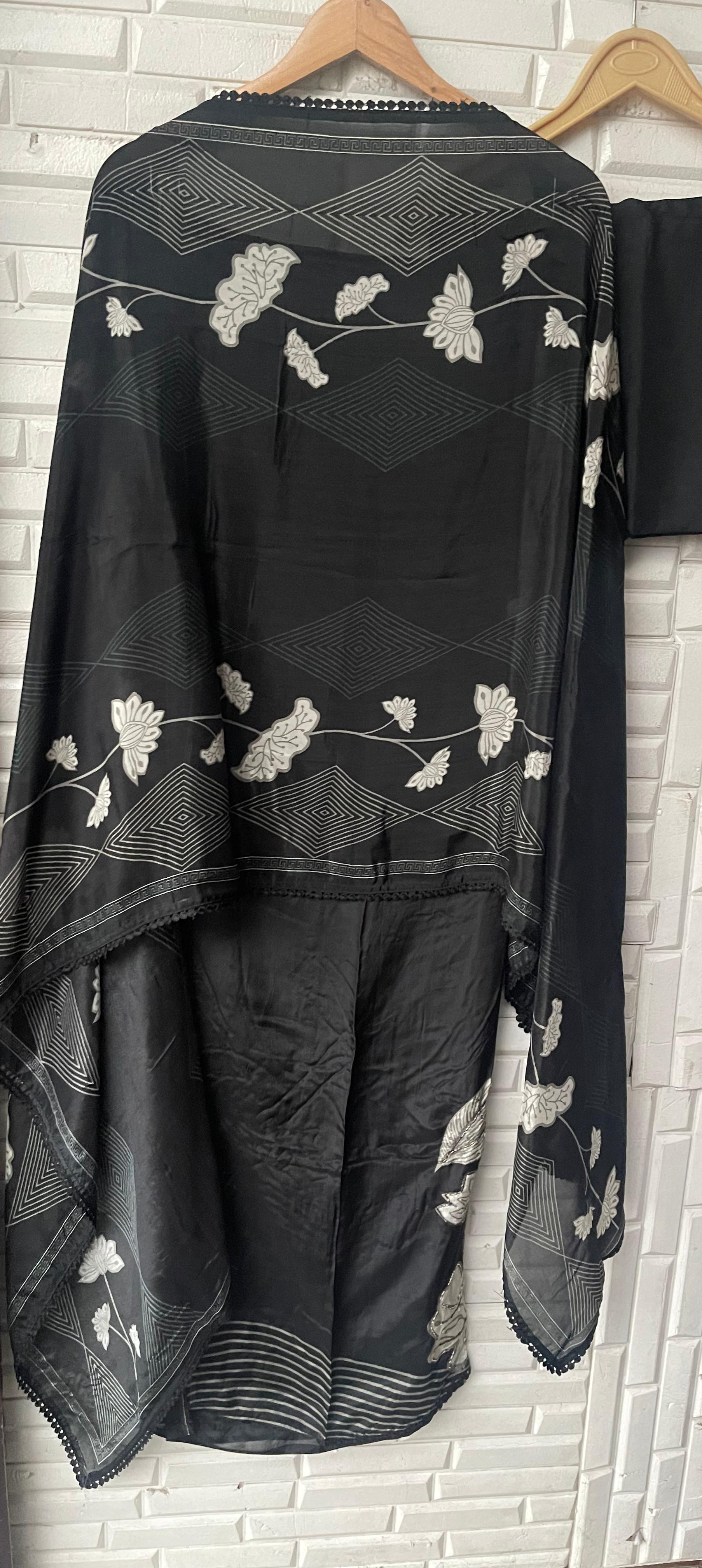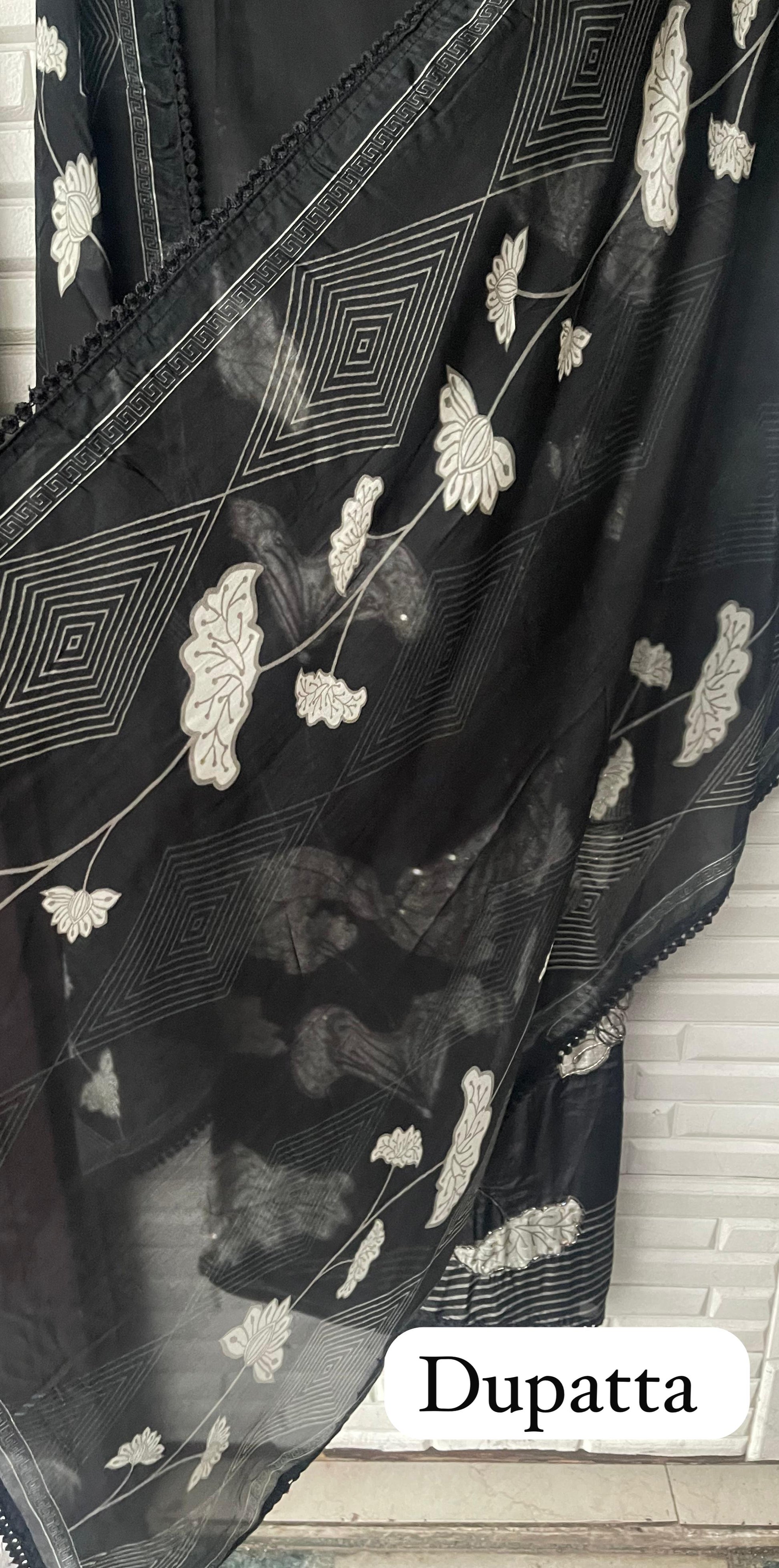 π glass organza printed fabric dupatta with crotia border lace