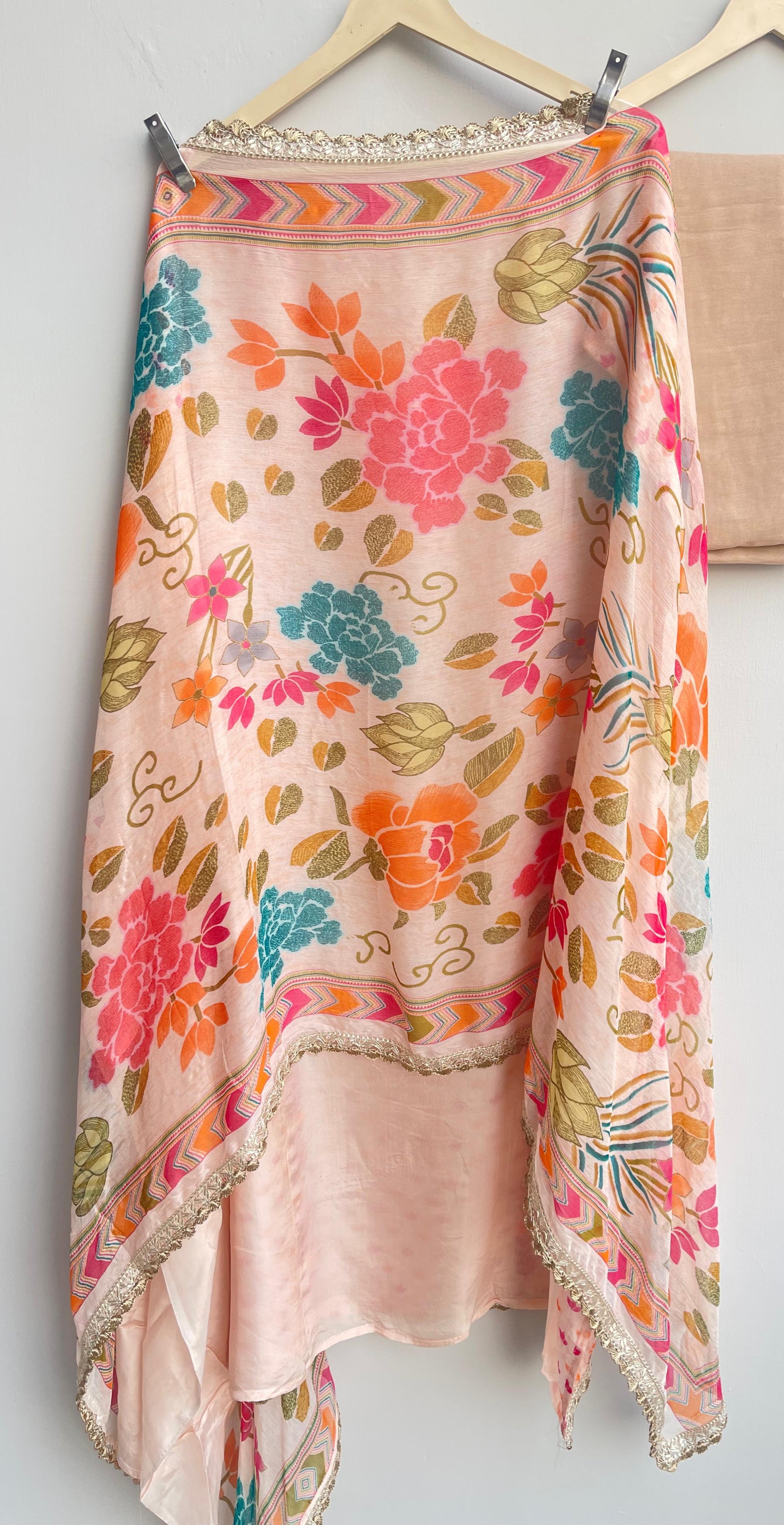 😊 pure chiffon printed fabric dupatta with kingri border lace