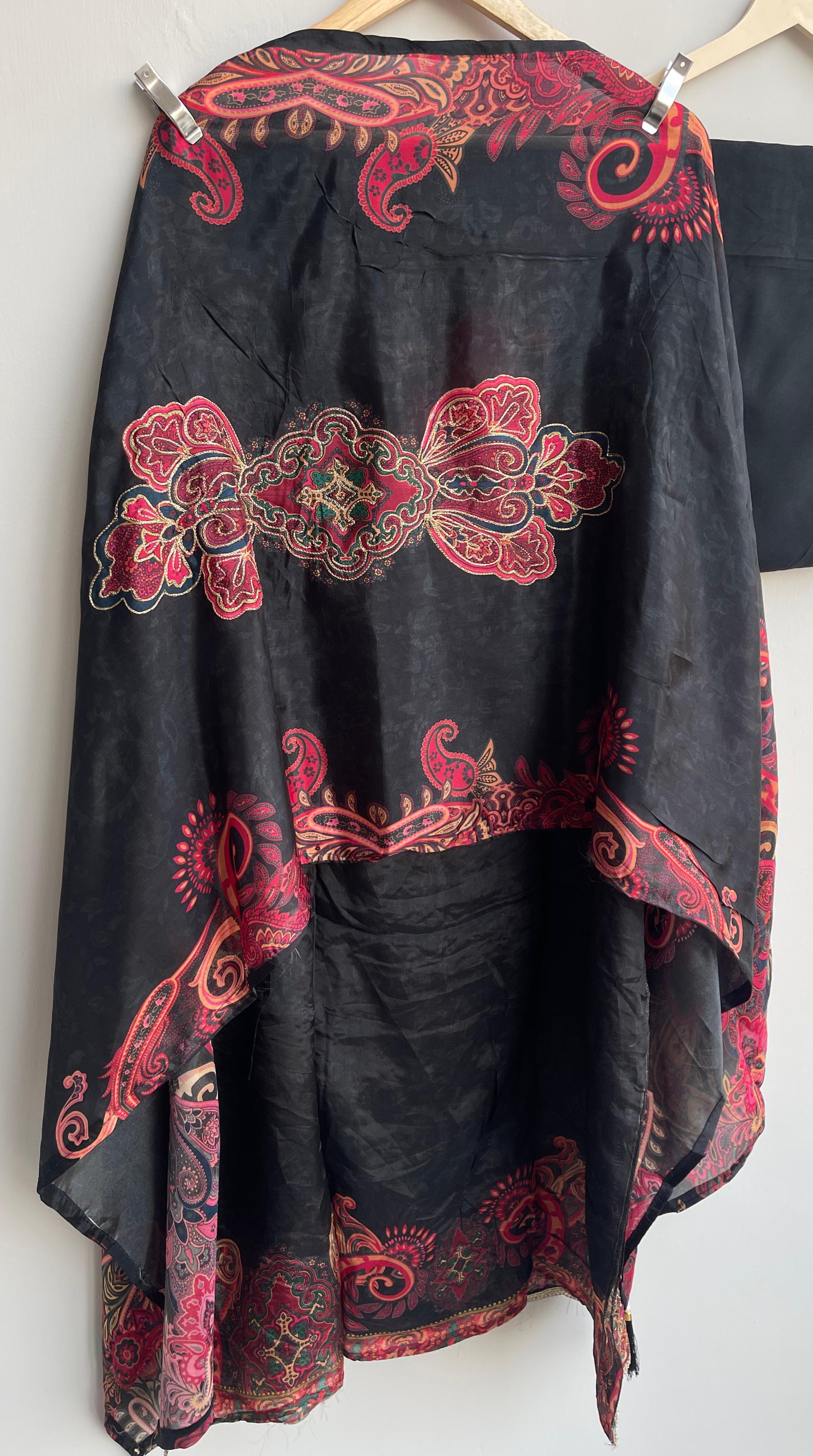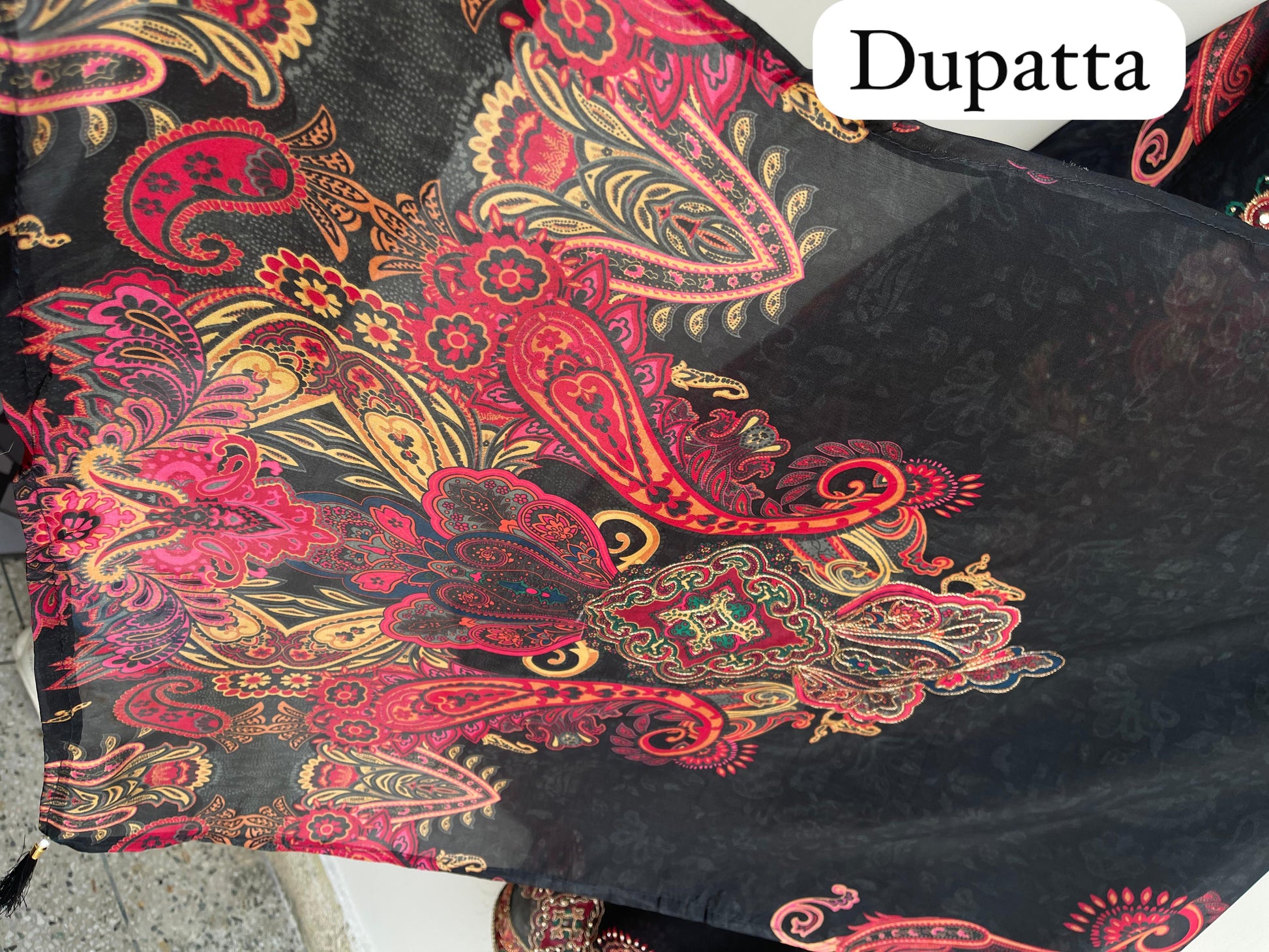 😊 self glass organza printed fabric dupatta with zari highlighting and tassels