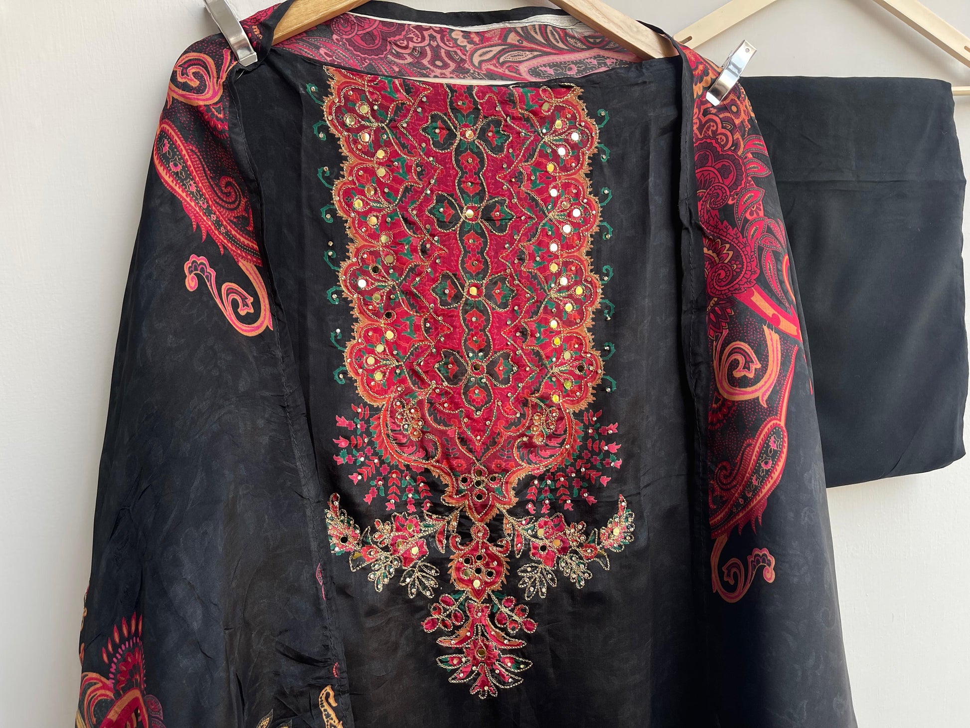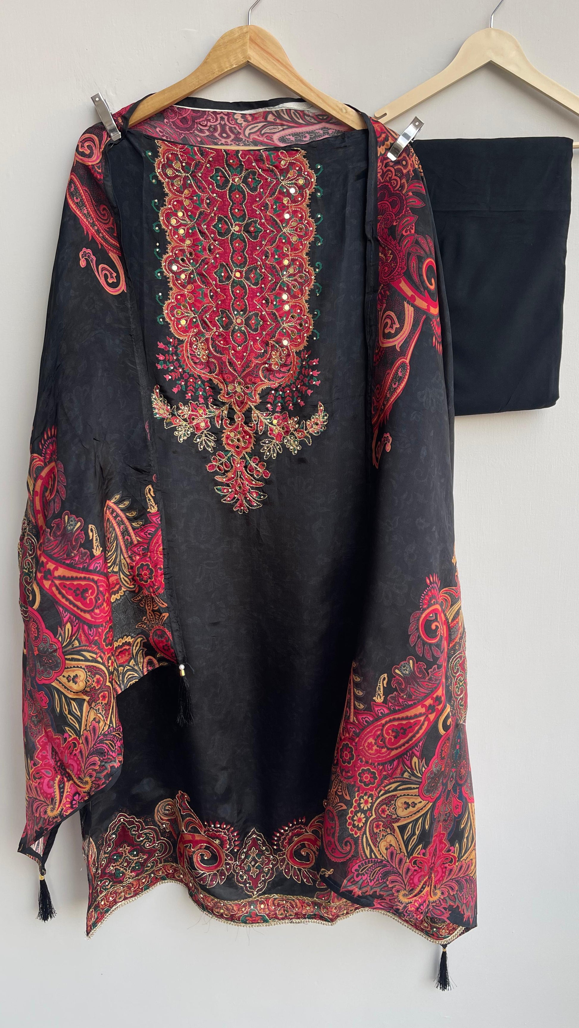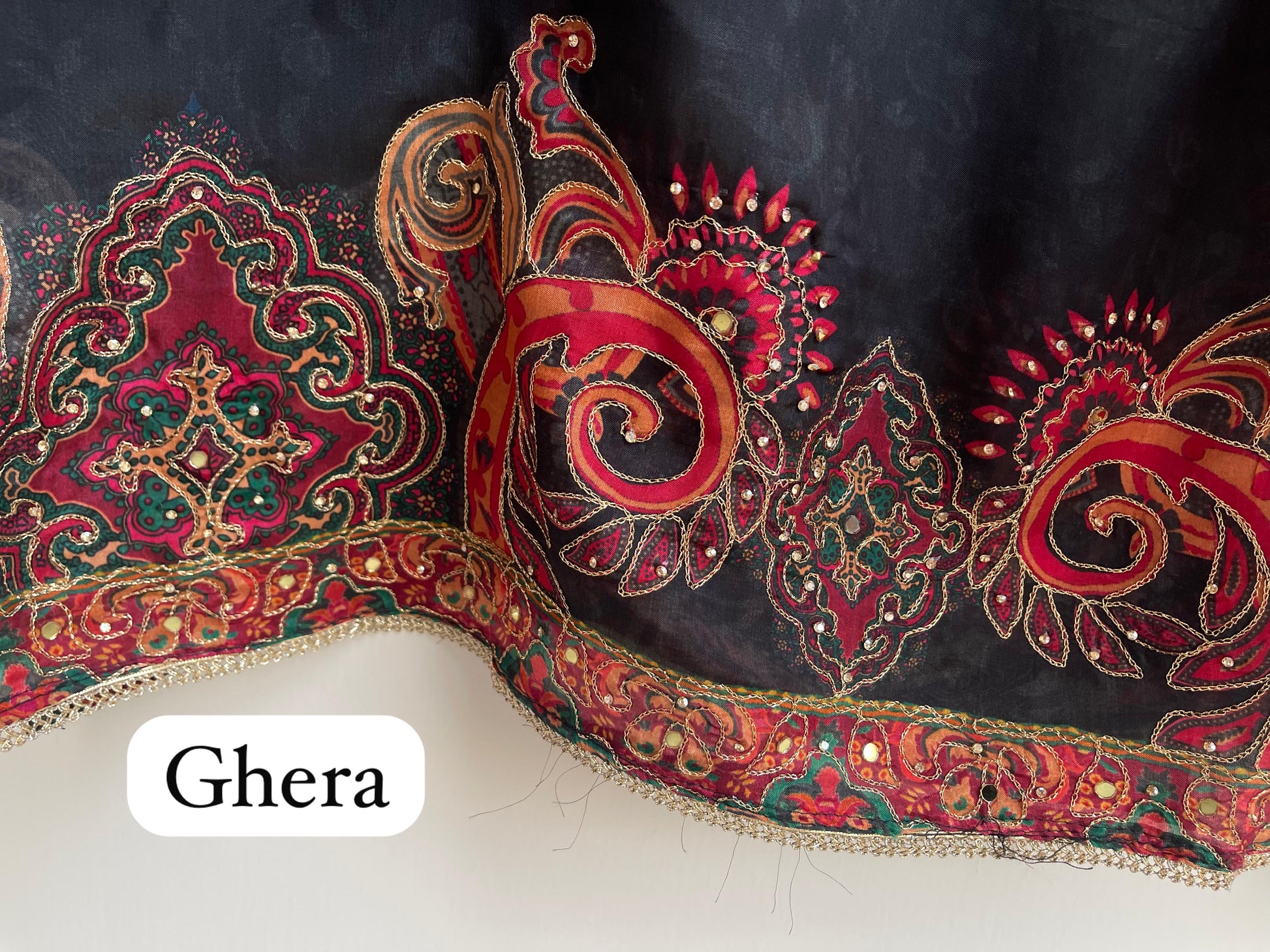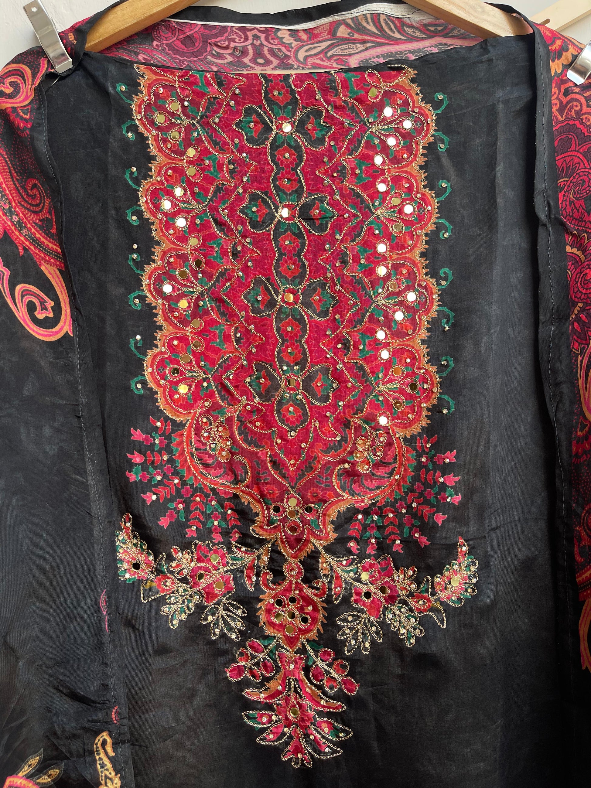😊 self glass organza printed fabric unstitched shirt with actual mirror work and zari swarowski highlighting