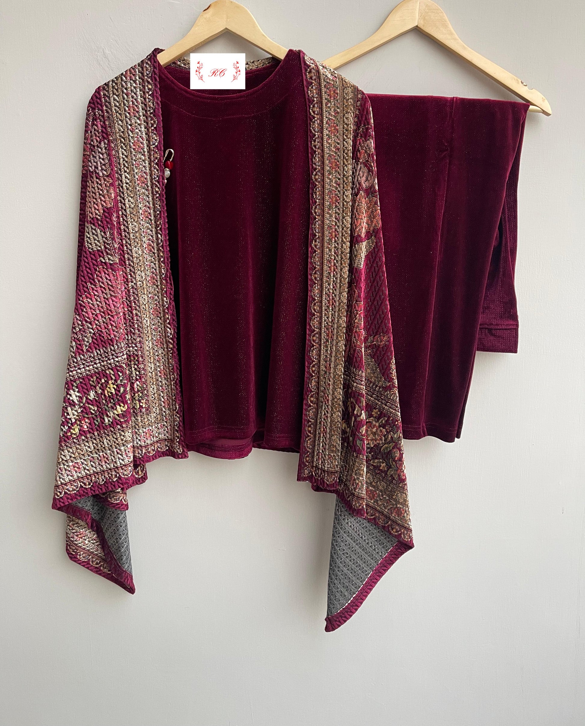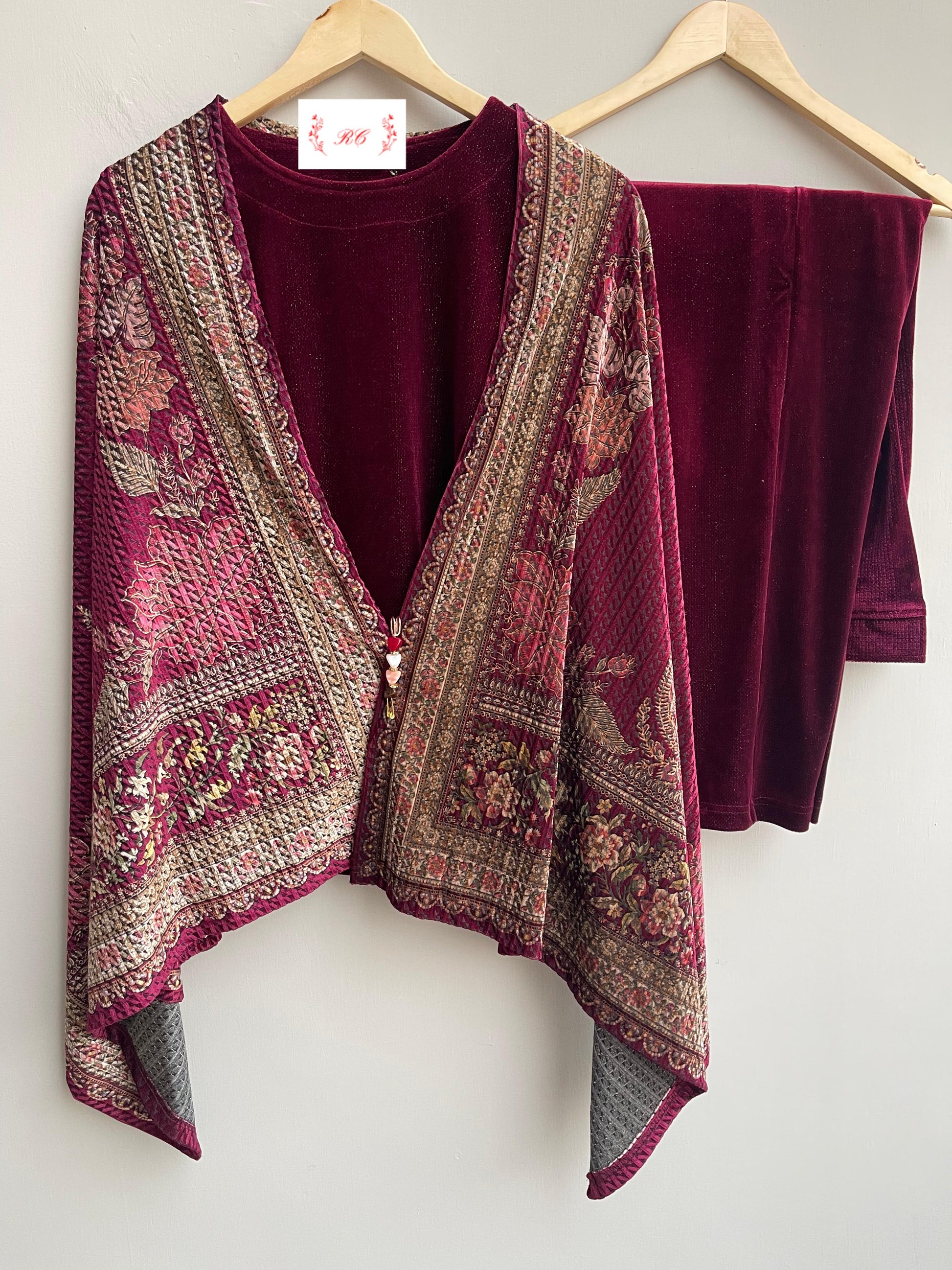 Imported velvet readymade ladies winter coord set Rc18815