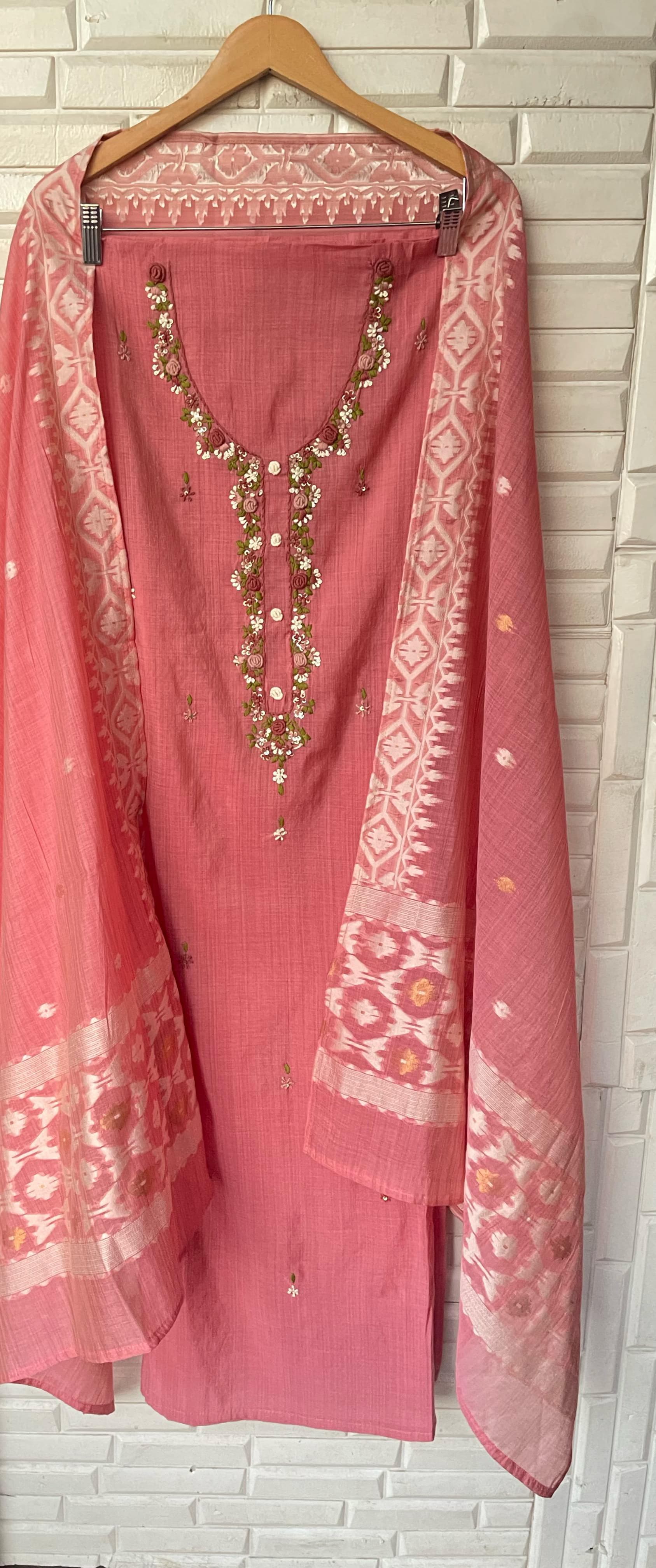Jamdhani Linen Cotton Unstitched Ladies Suit Rc16720