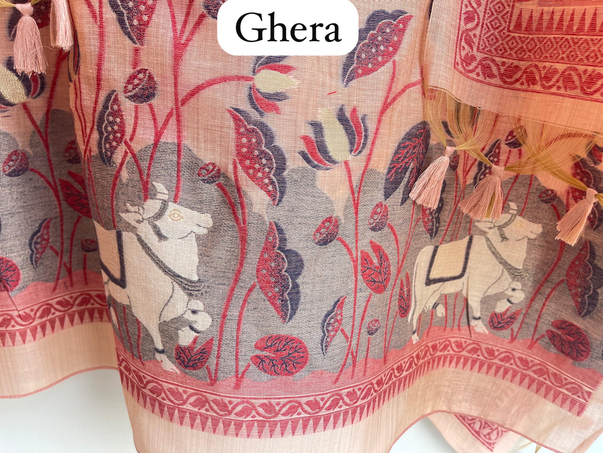 π soft Jhamdhani linen fabric dupatta fully woven with tassels