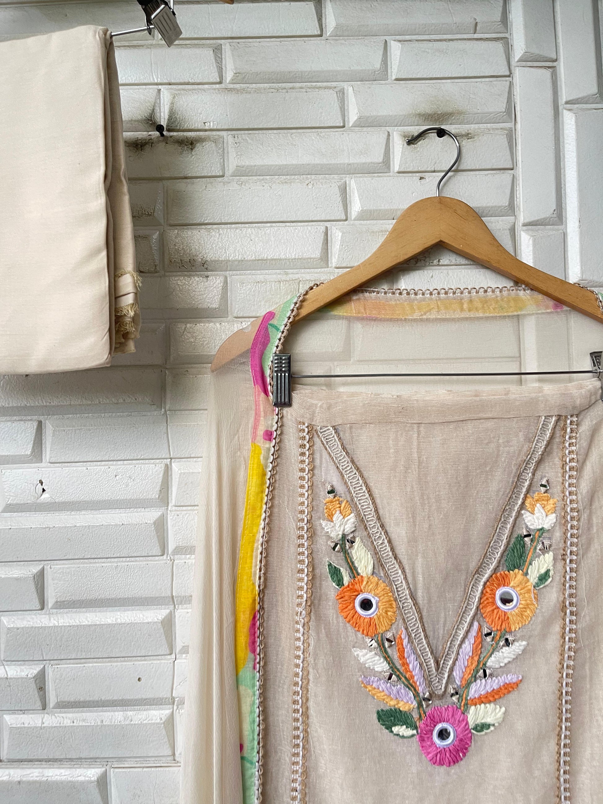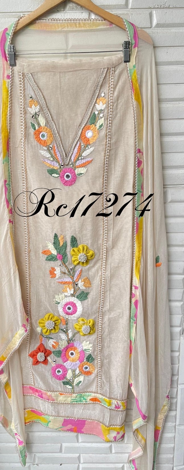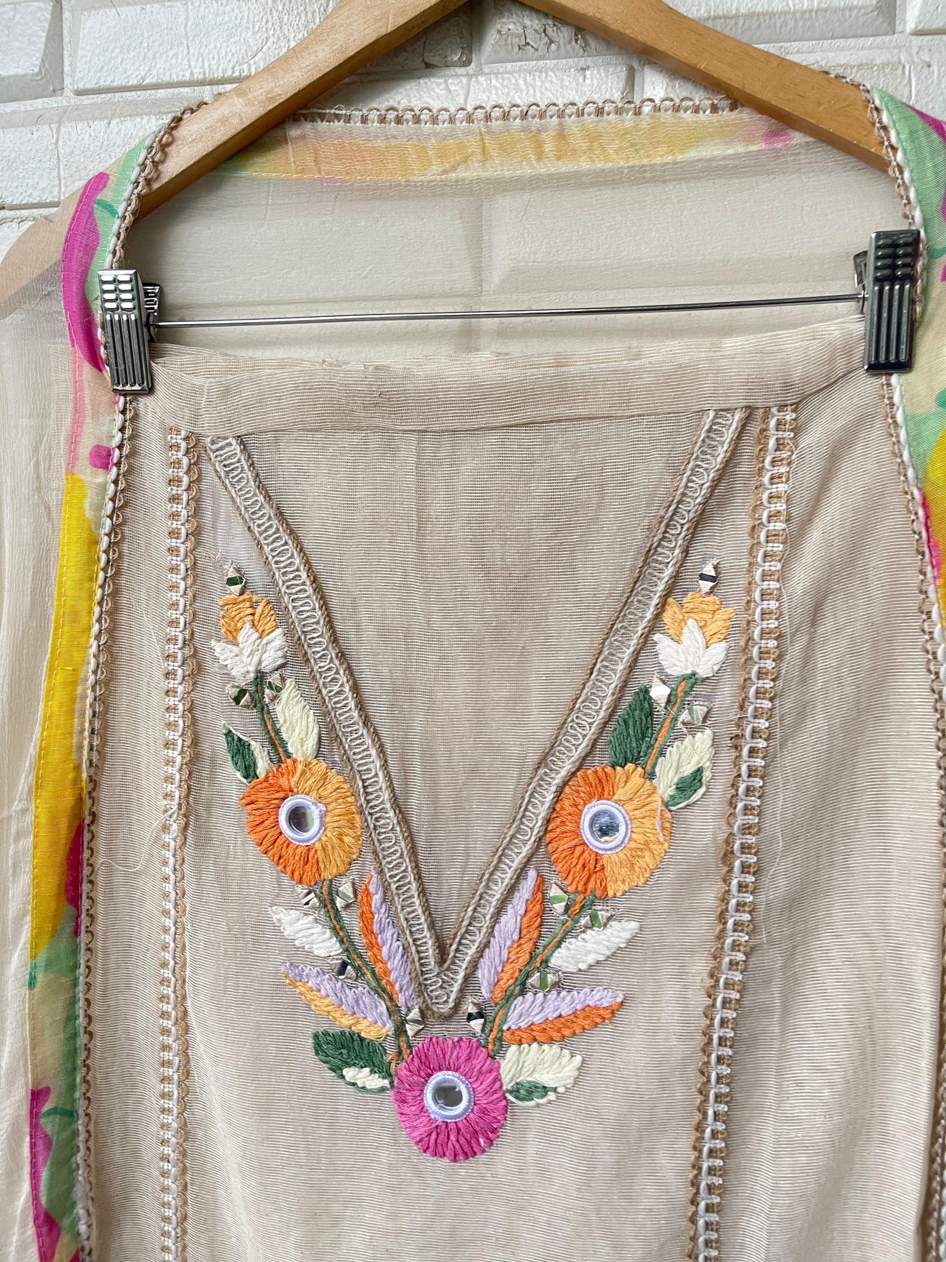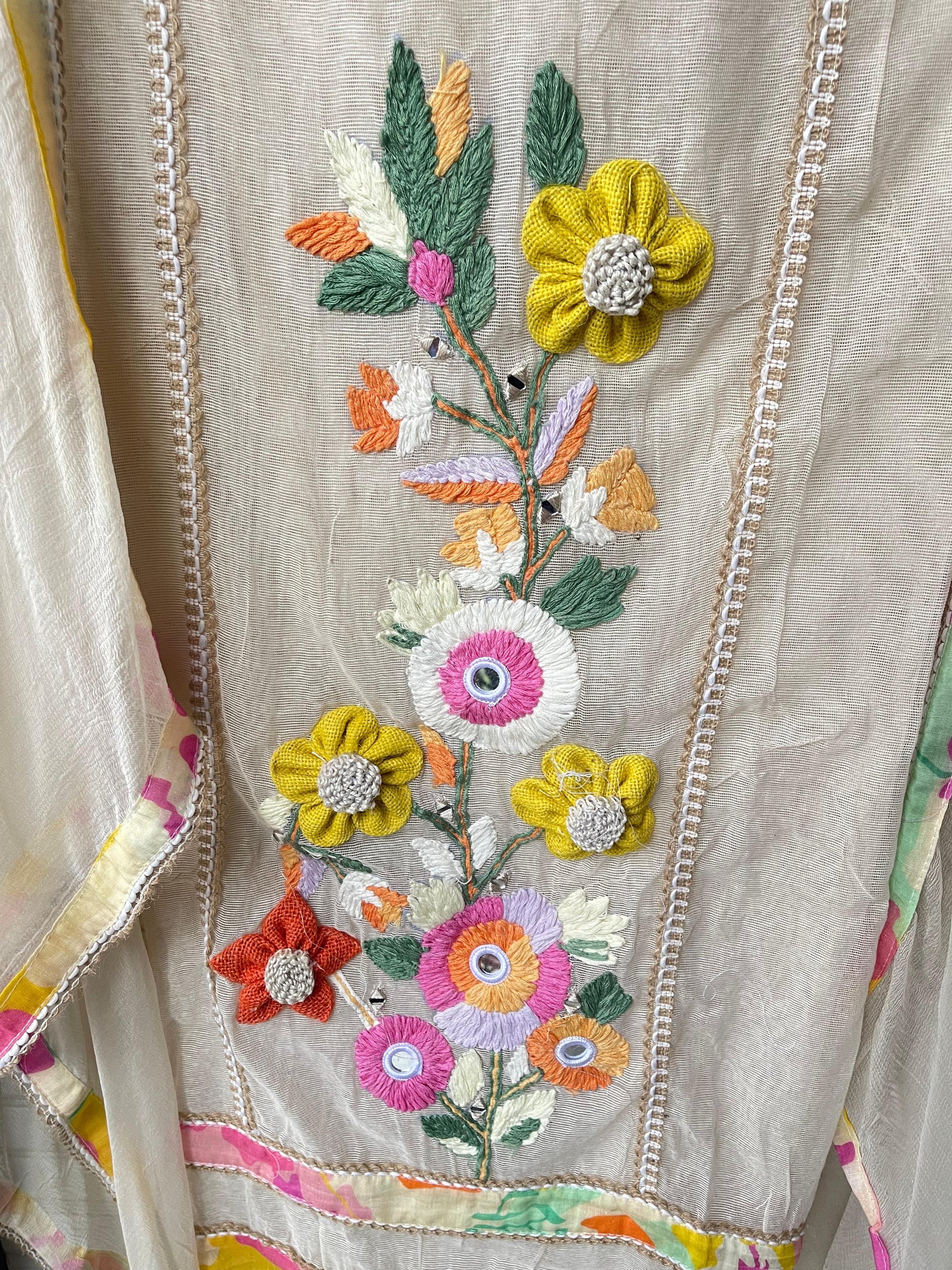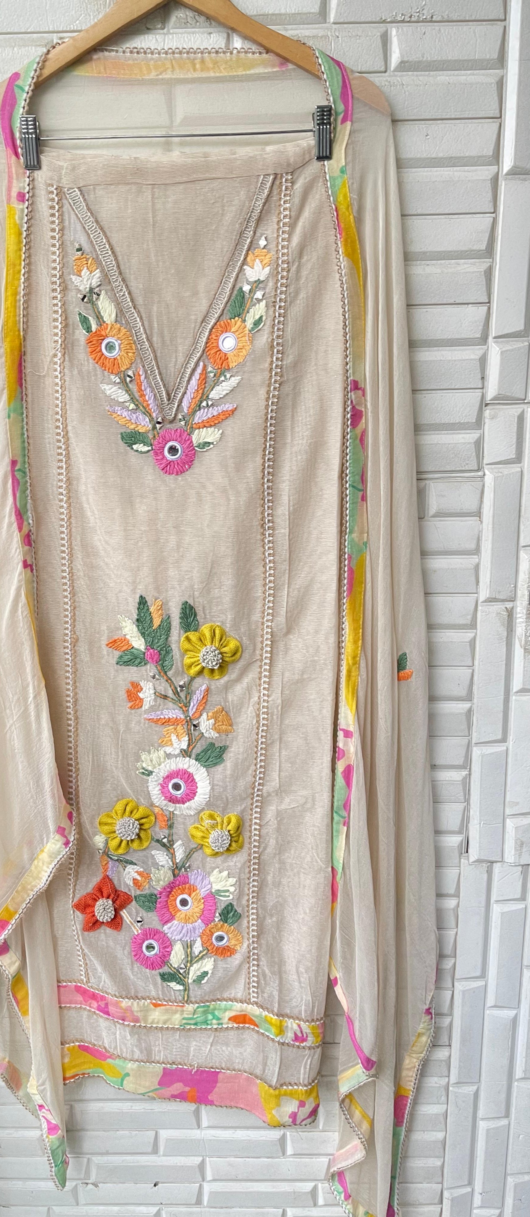 😊 jute soft fabric unstitched shirt with Resham embroidery pearl swarowski highlighting and 3D flowers