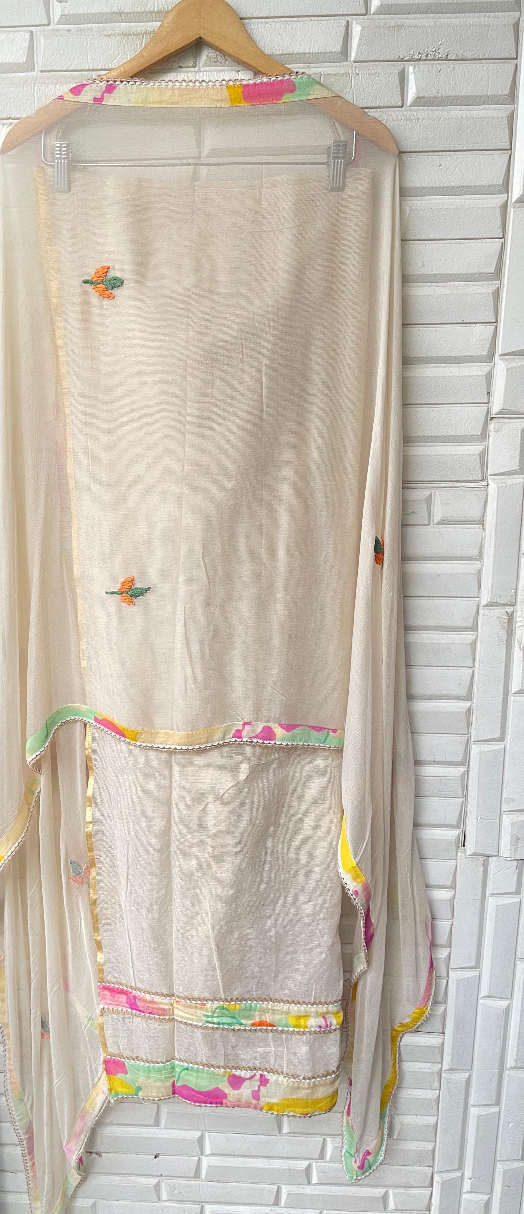 😊 pure chiffon fabric dupatta with Resham flowers