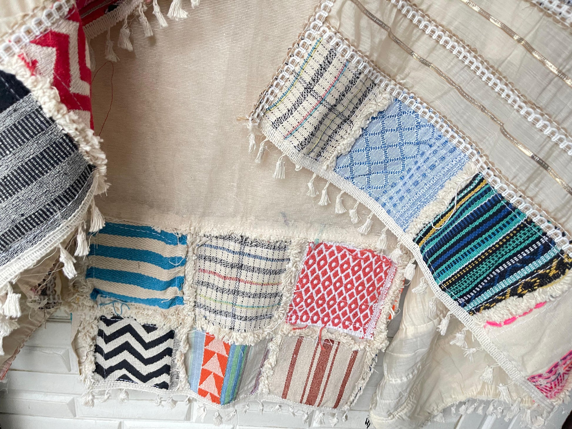 π mul chanderi fabric dupatta with box printed fabric patchwork gotta lace and crotia border lace