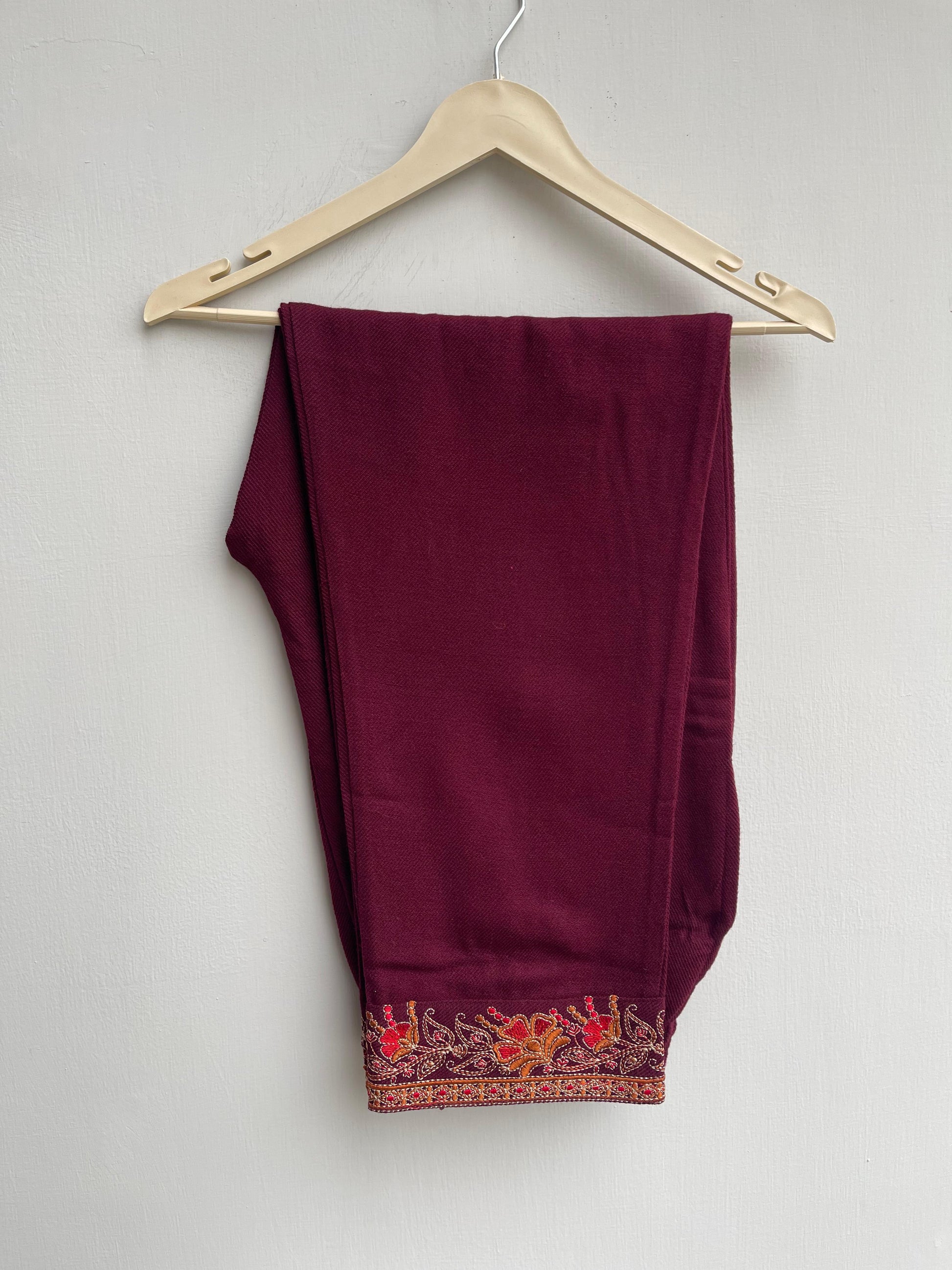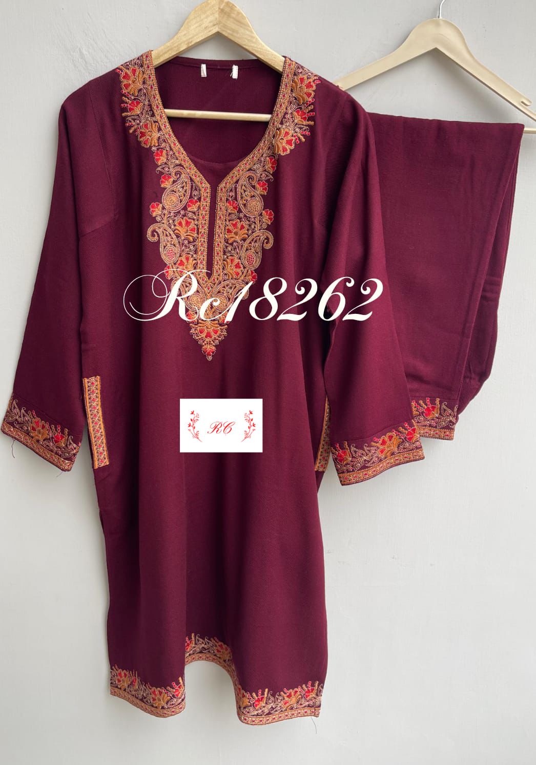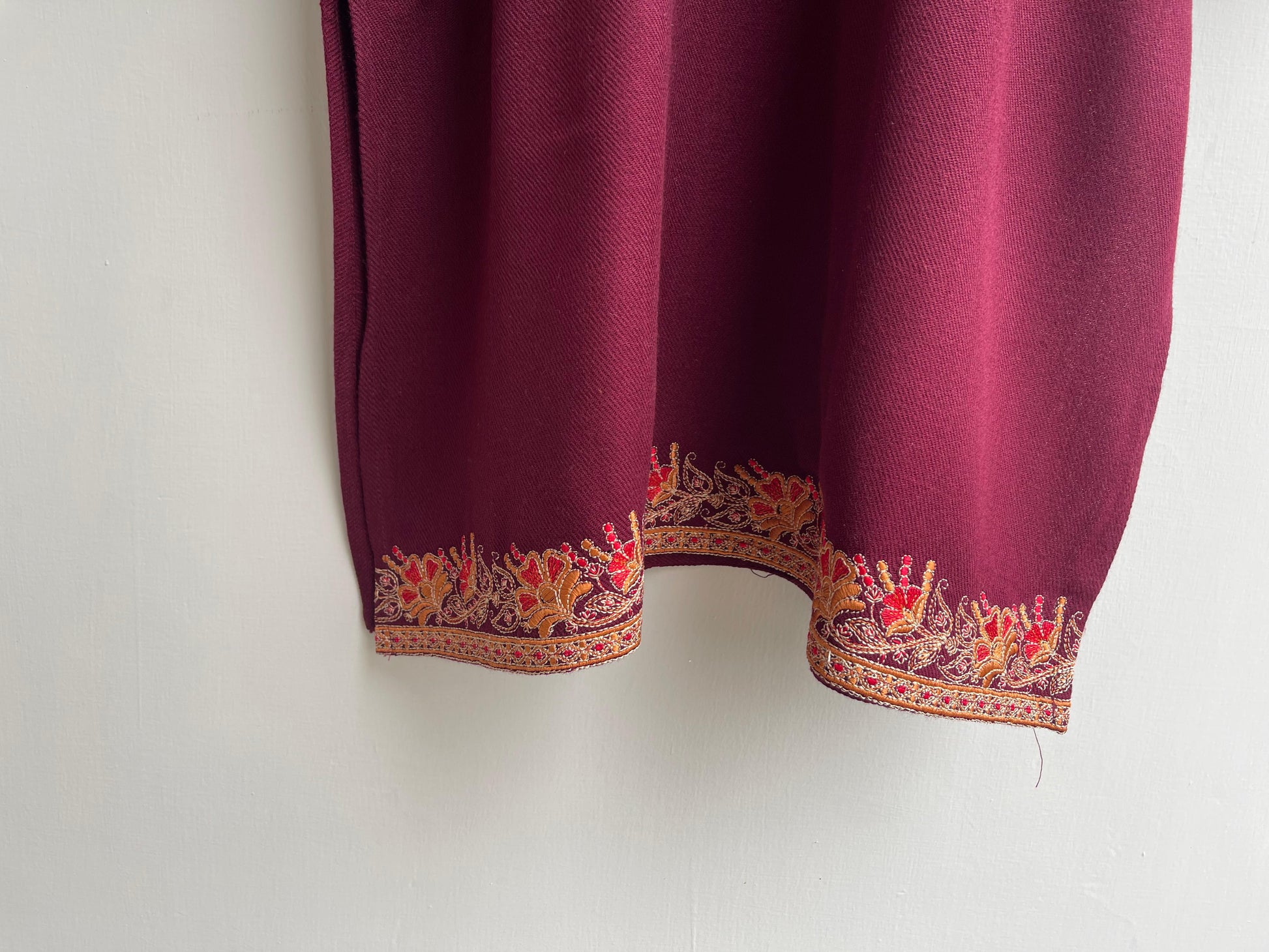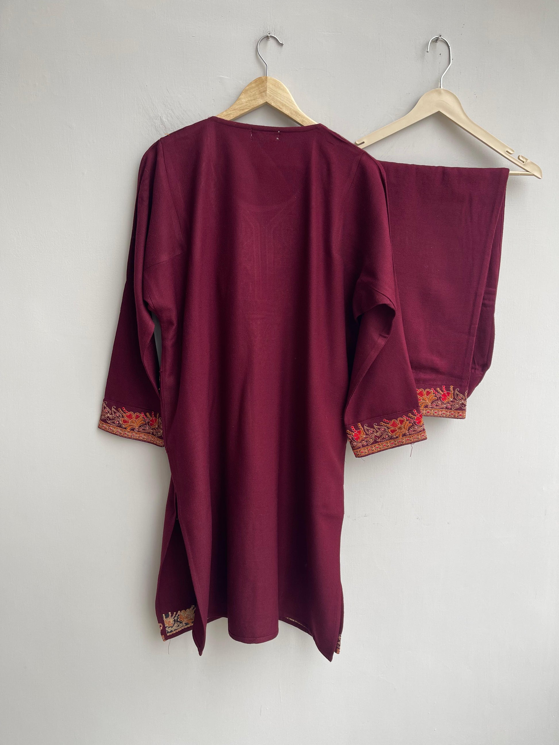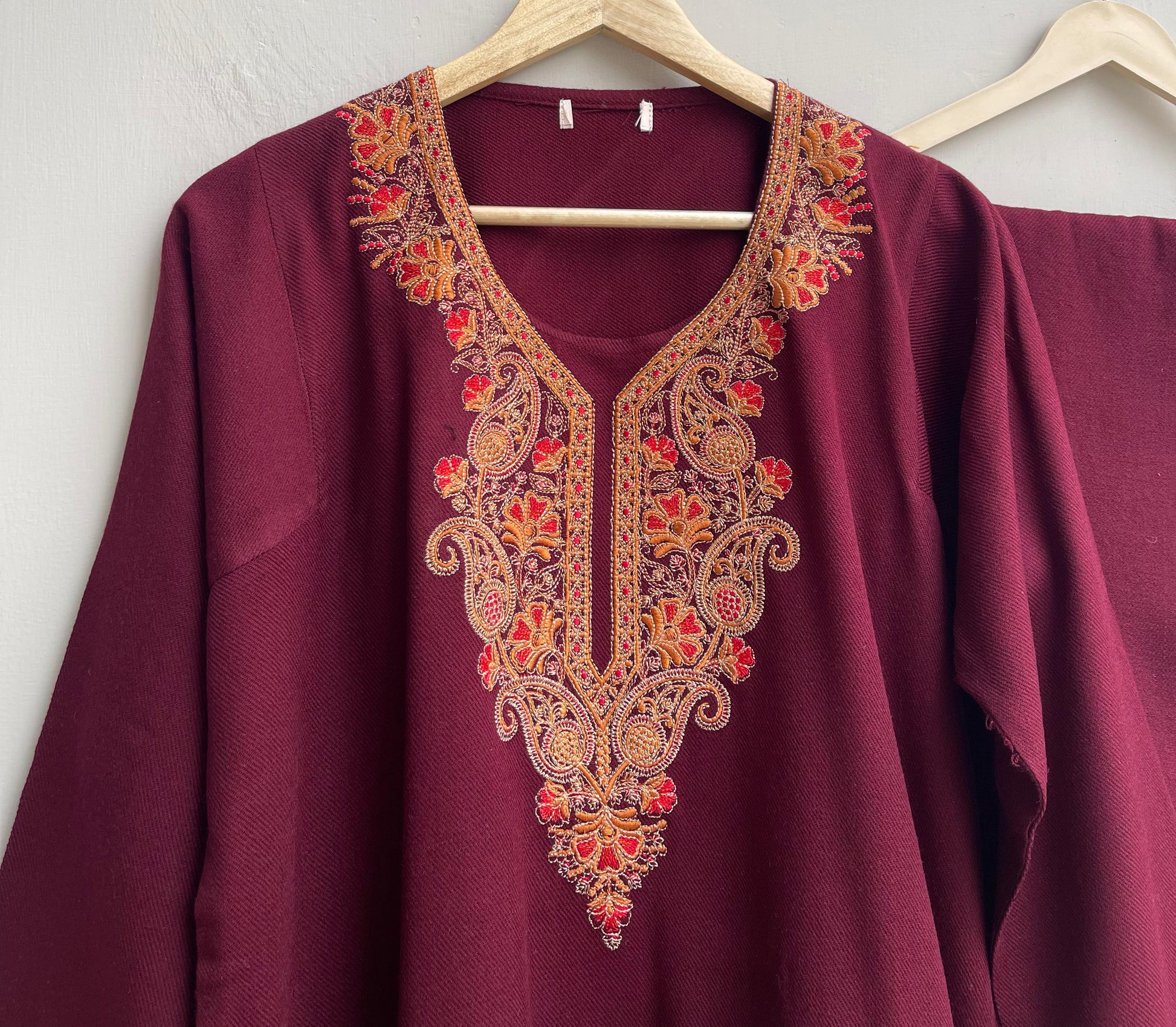 Stunning woollen embroidered pheran coord set for winter with resham embroidery
