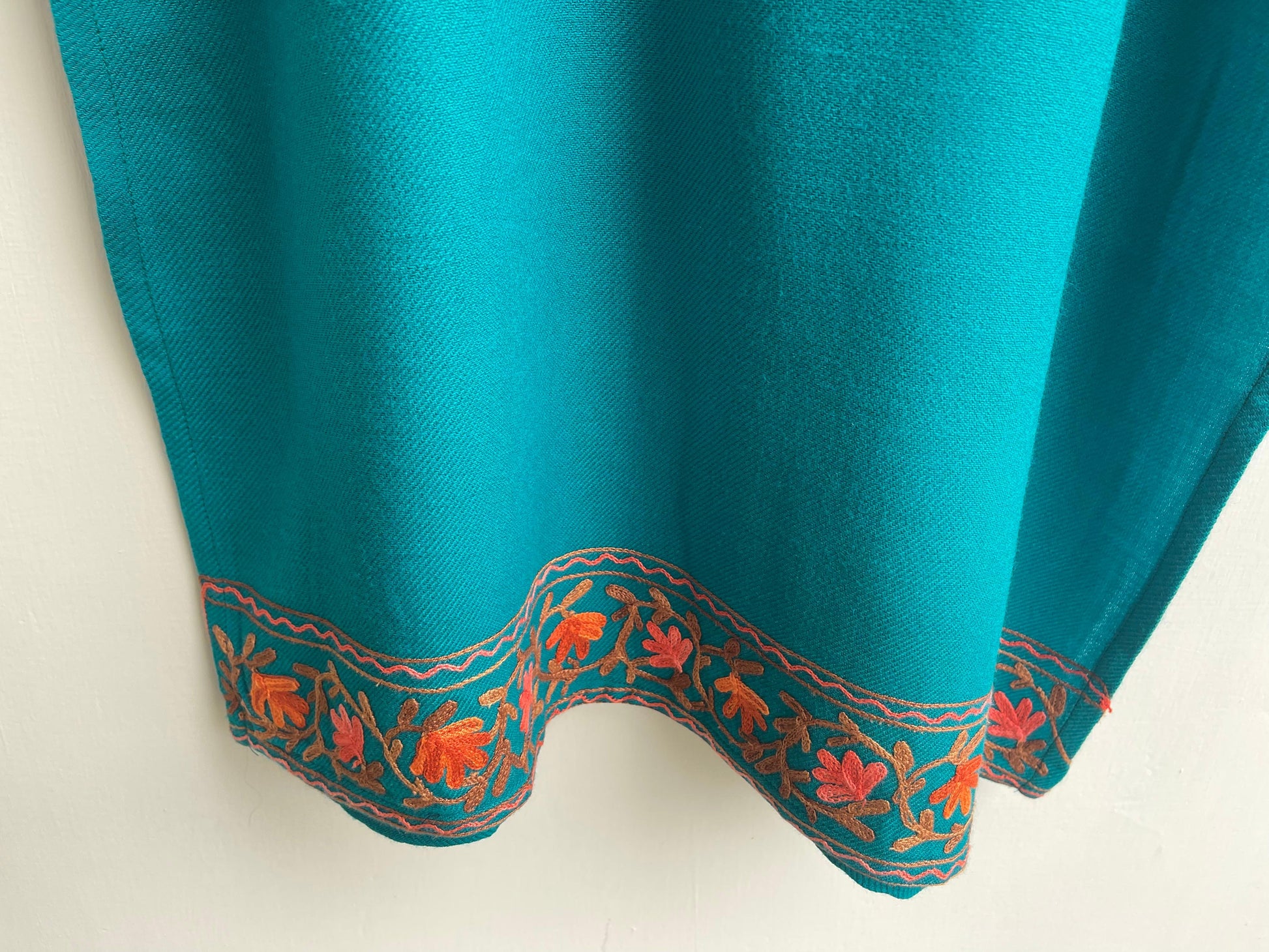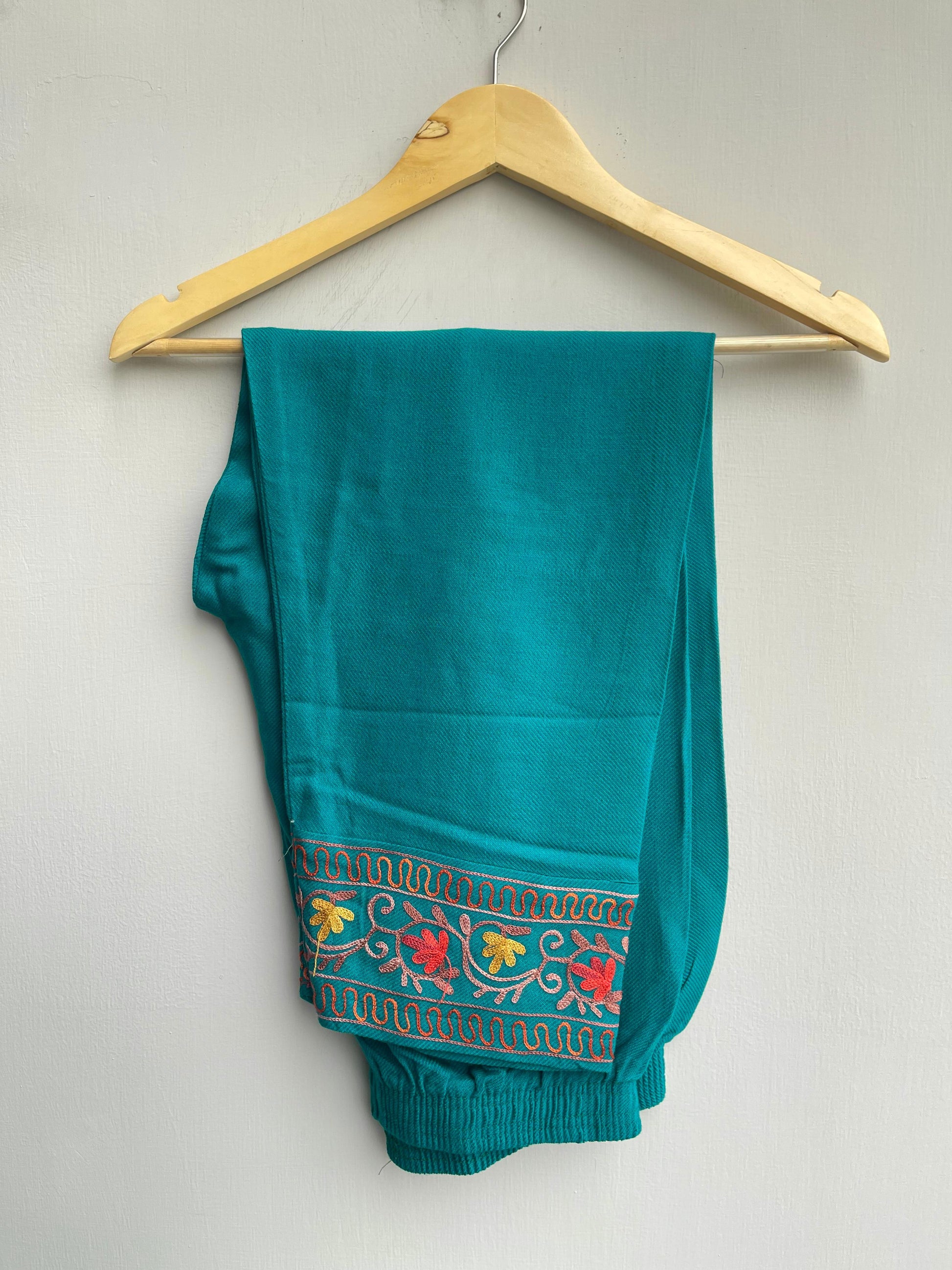 Stunning woollen embroidered pheran coord set for winter with resham embroidery
