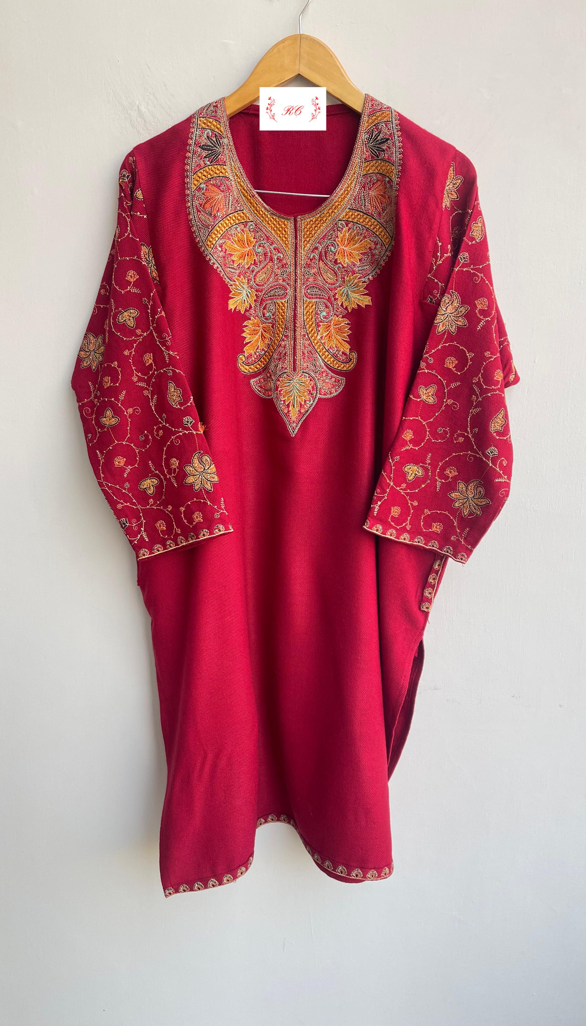😊beautiful pheran woolan kurta with pockets and stunning Resham embroidery all over