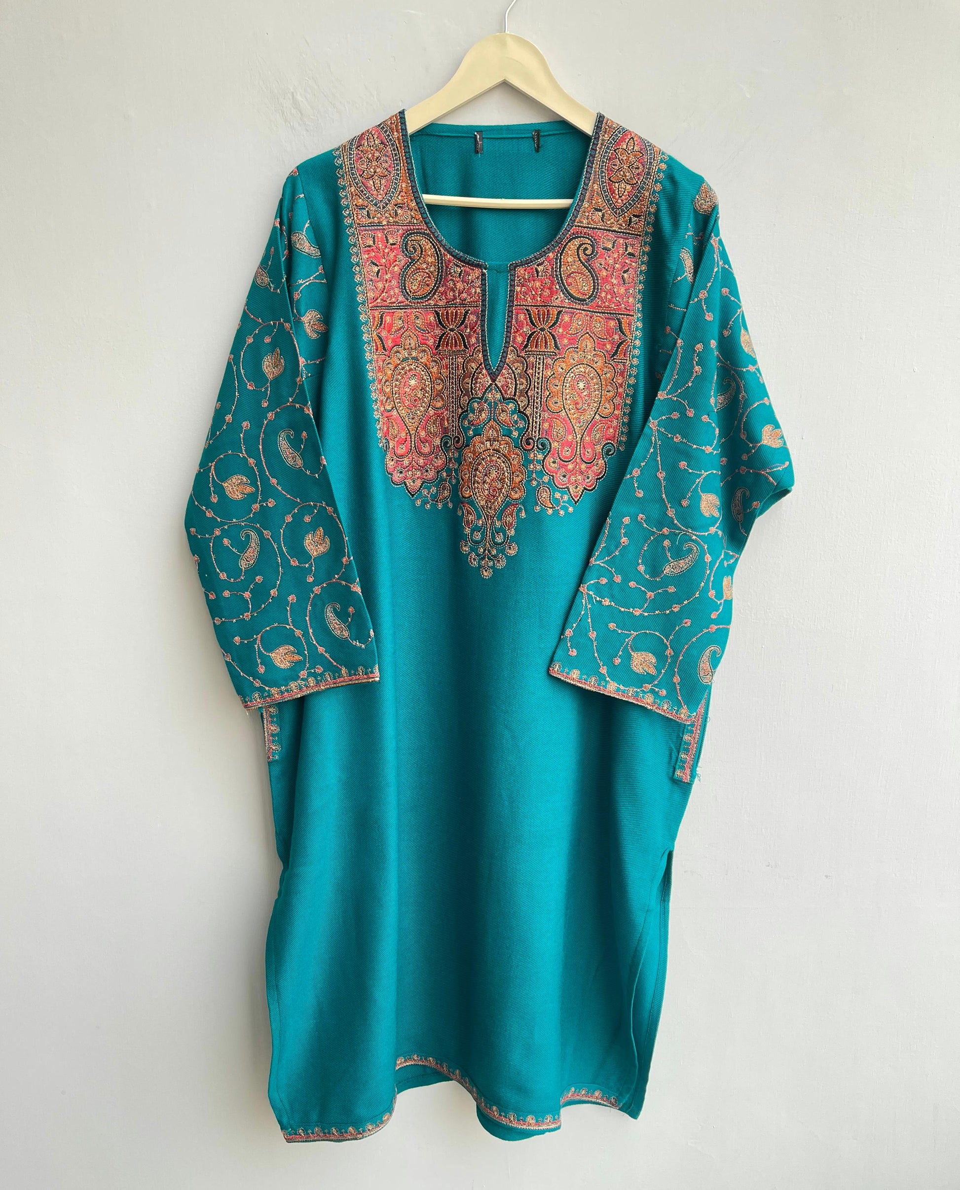 😊beautiful pheran woolan kurta with pockets and stunning Resham embroidery all over