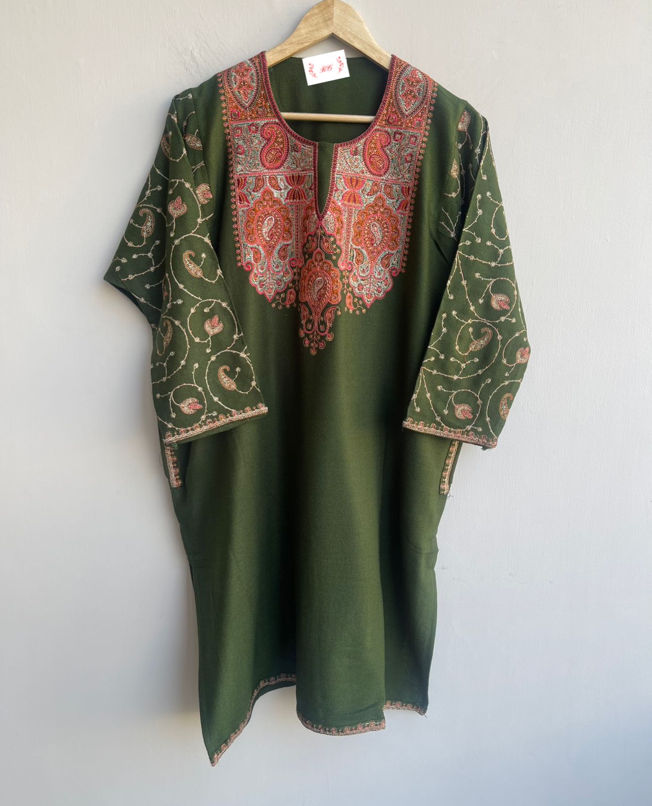 😊beautiful pheran woolan kurta with pockets and stunning Resham embroidery all over