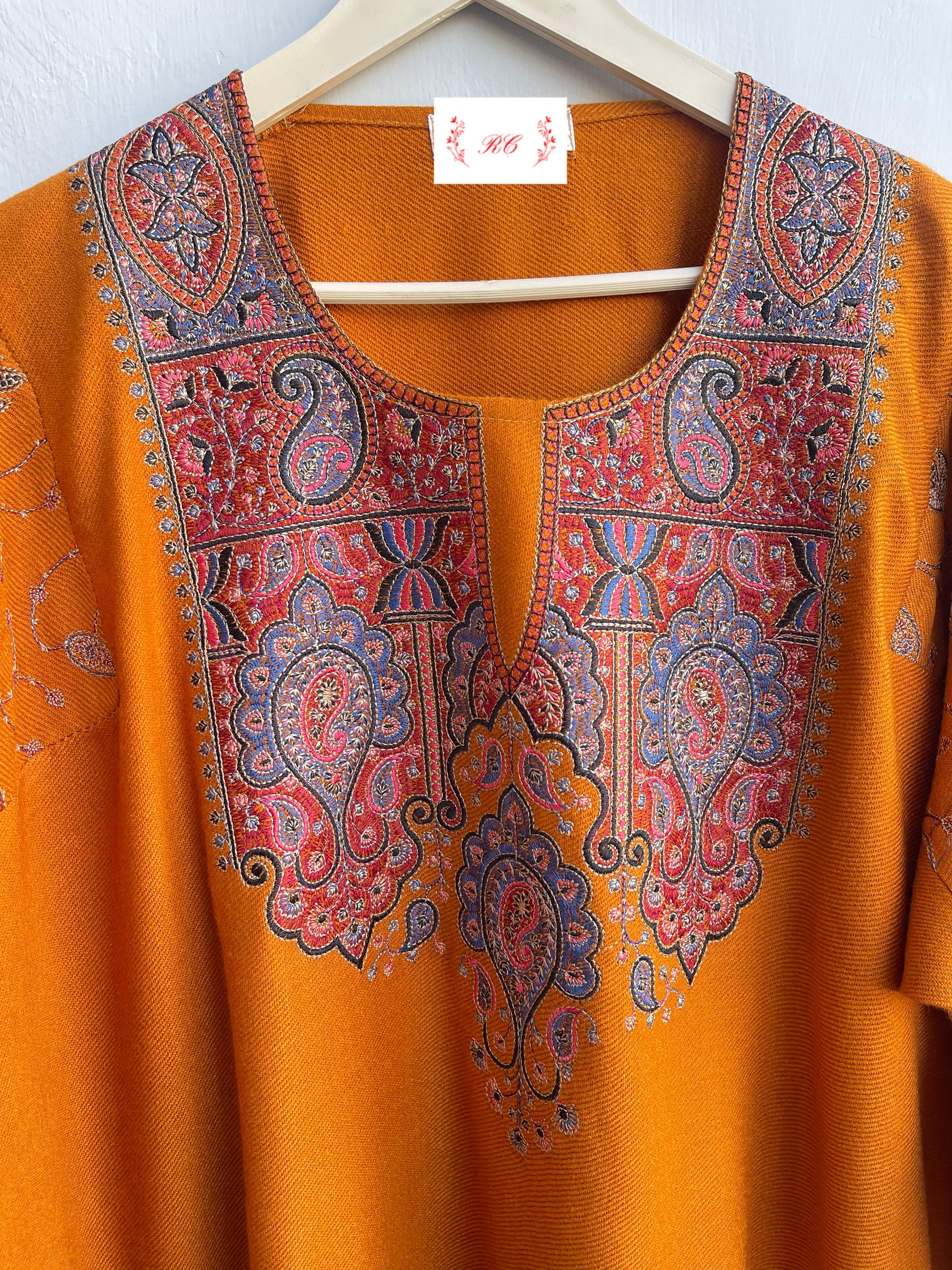 😊beautiful pheran woolan kurta with pockets and stunning Resham embroidery all over